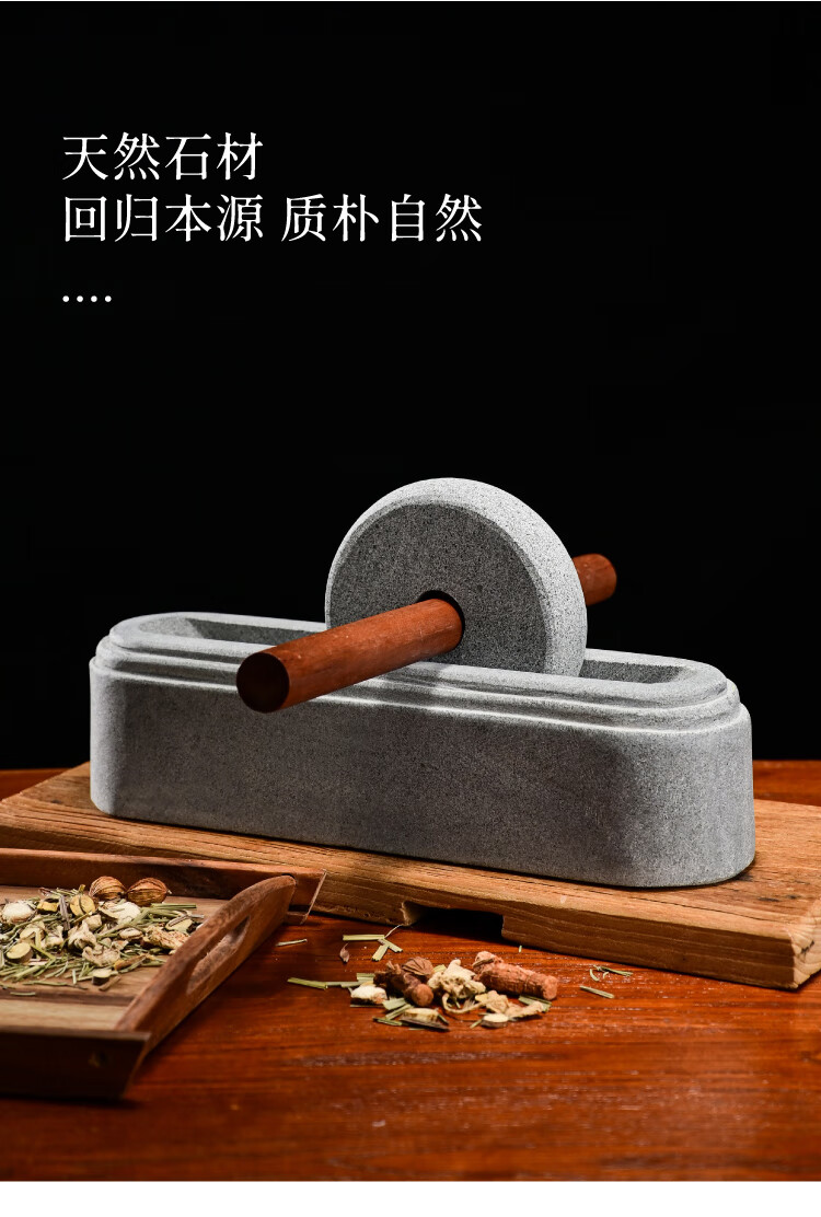 CLCEY custom-made traditional Chinese medicine grinder, medicine grinder, medicine ship, stone medicine twister, groove tool crusher, old-fashioned stone manual grinding, stone roller diameter 70 cm (smooth sailing)