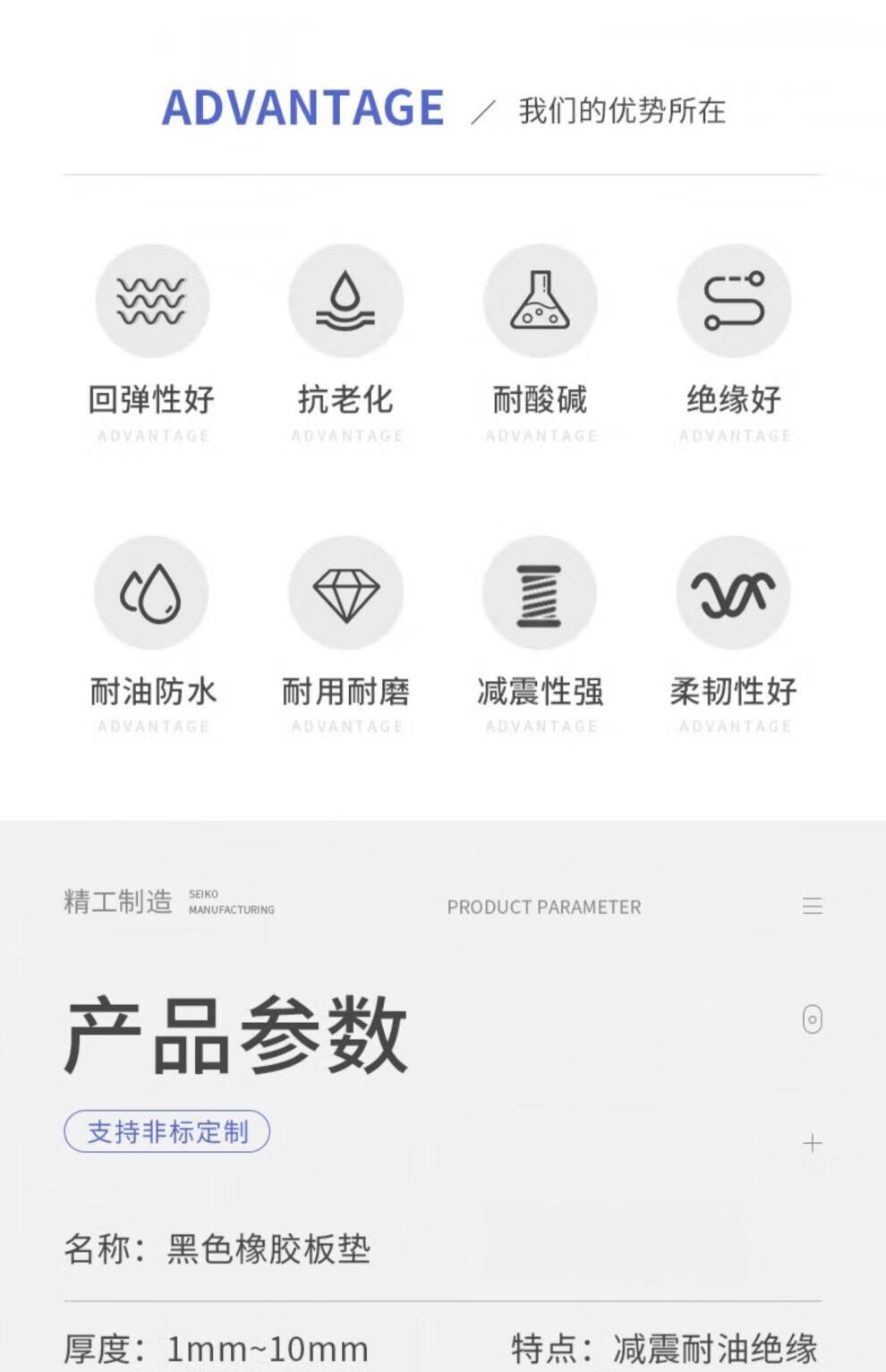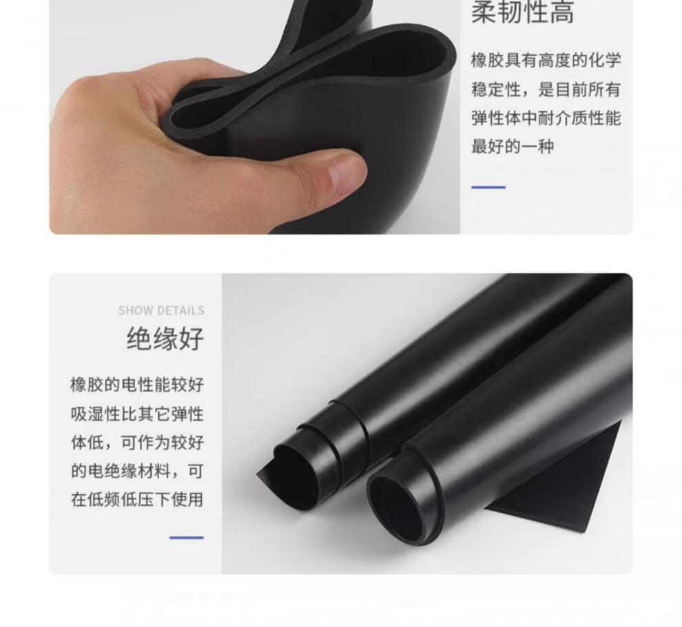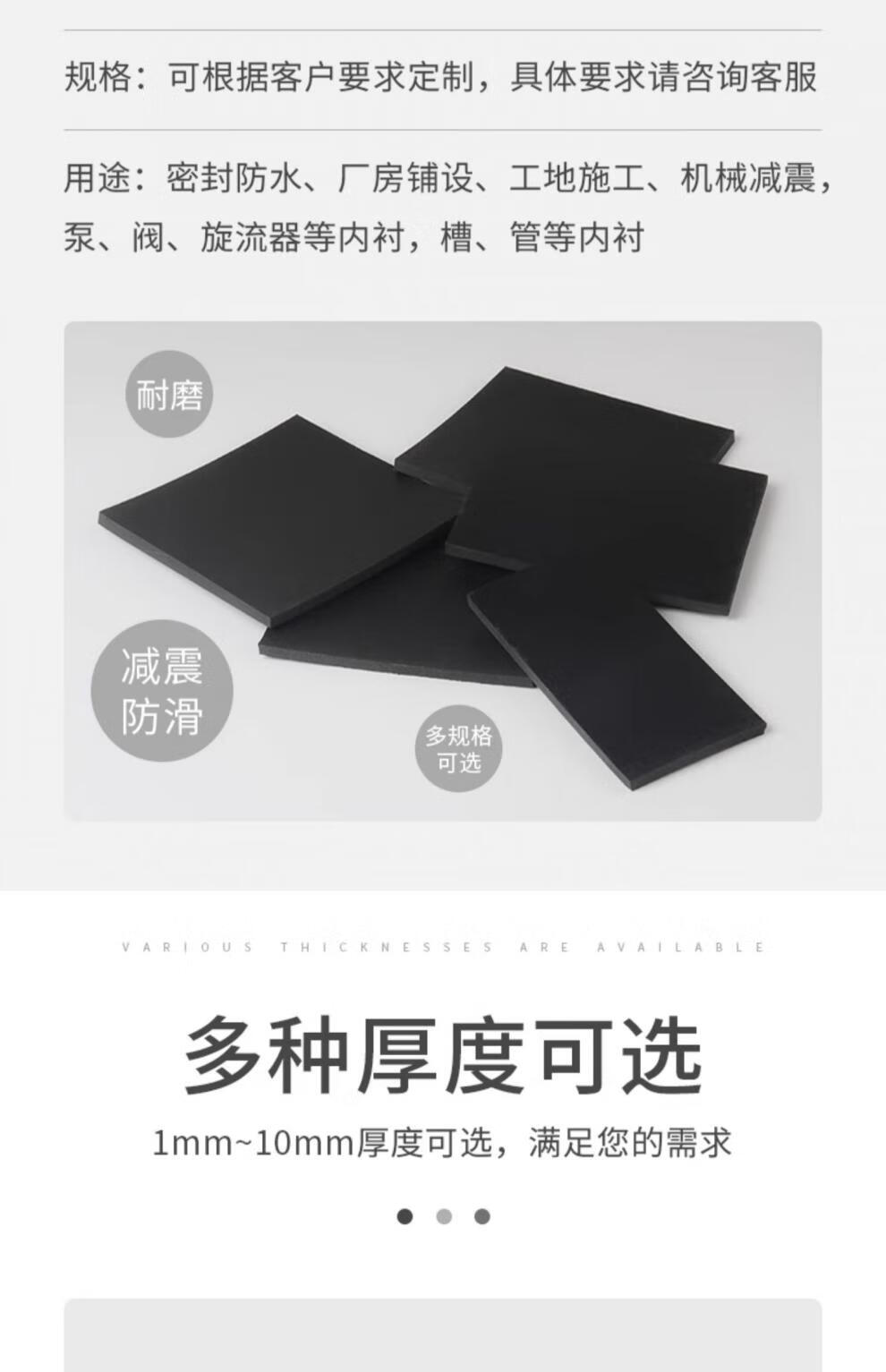 橡胶垫耐油耐磨防滑橡胶板黑色绝缘胶垫加厚减震3/5/10mm工业胶皮 500mm*500mm*3mm