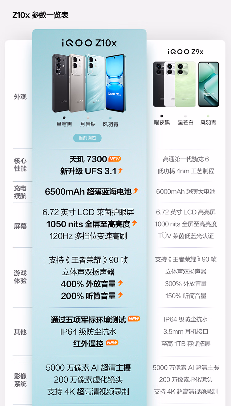 Vivo iQOO Z10x choose 12 issues/interest-free 6500mAh ultra-thin blue ocean battery Dimensity 7300 eye protection LCD screen student gaming phone new product launch Feng Yuqing 8GB+128GB Baitiao 24 issues/interest-free