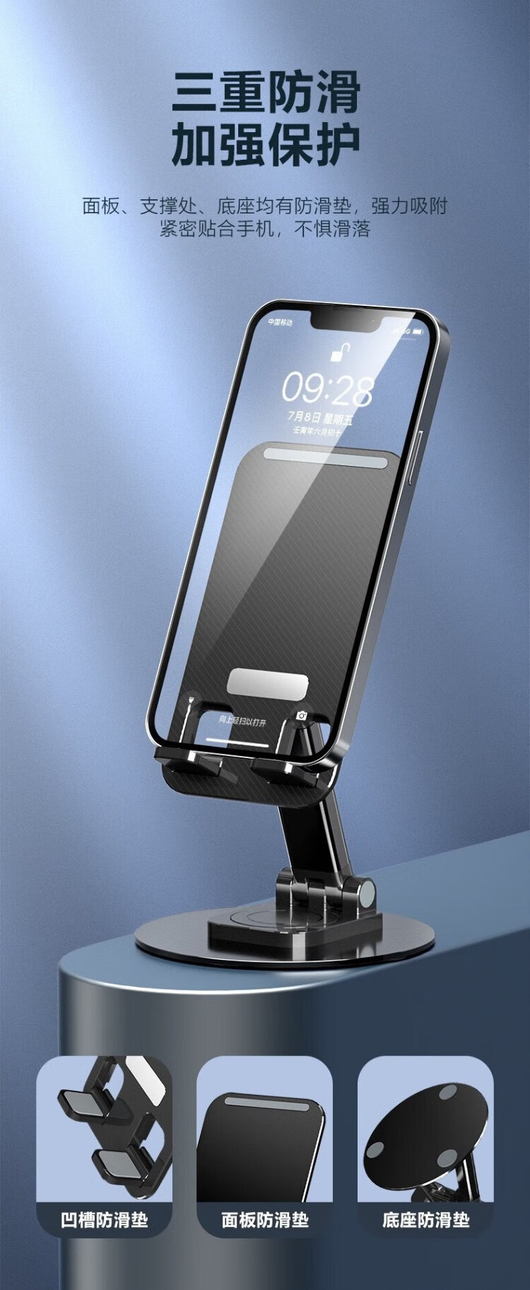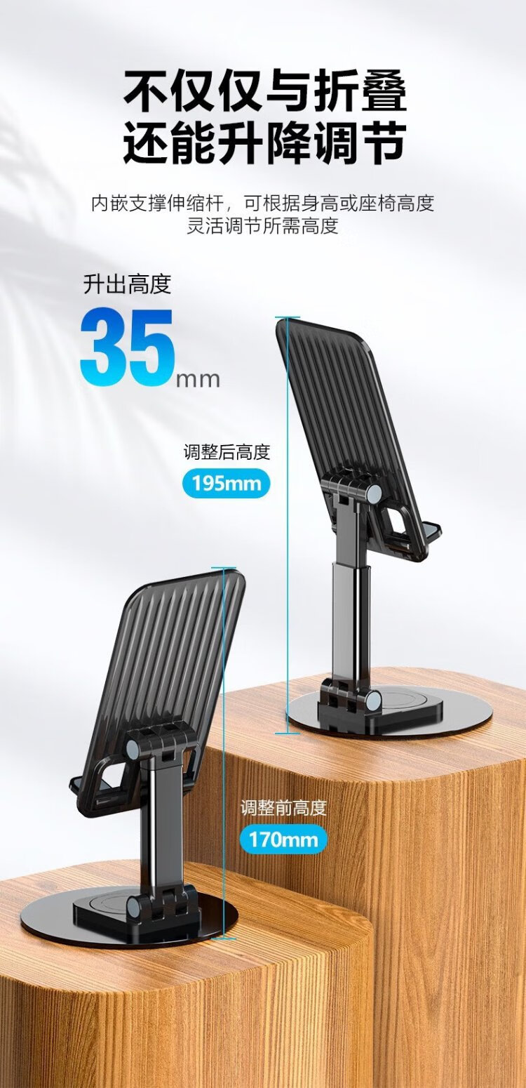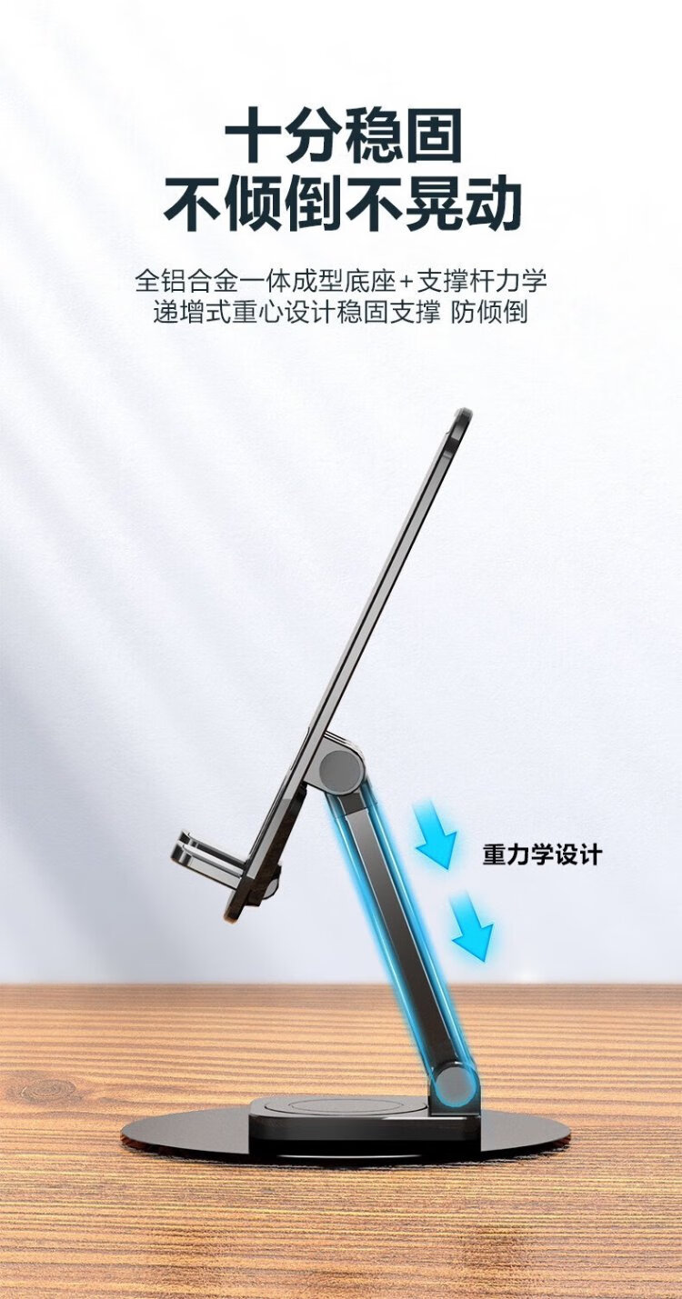 Hemuzhou Car Rotating Aluminum Mobile Phone Stand Desktop Tablet Live Broadcast Mobile Phone Stand Online Class Multifunctional Folding Stand Classic Black 360 Rotation丨Metal Base