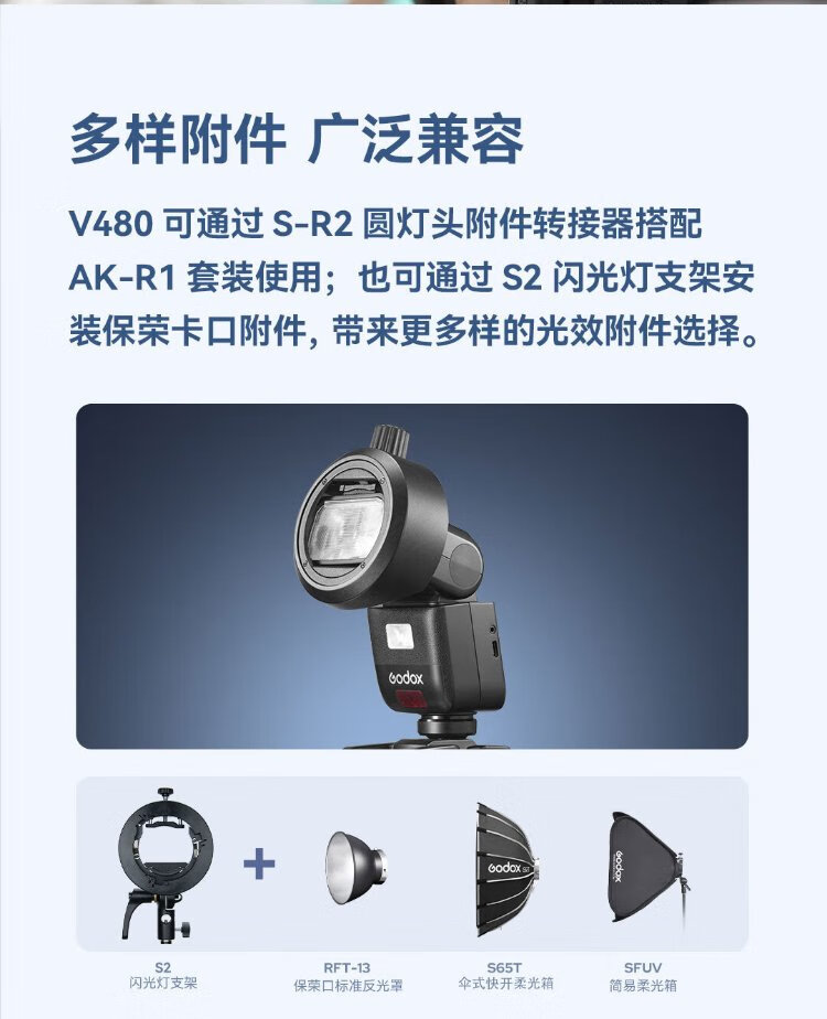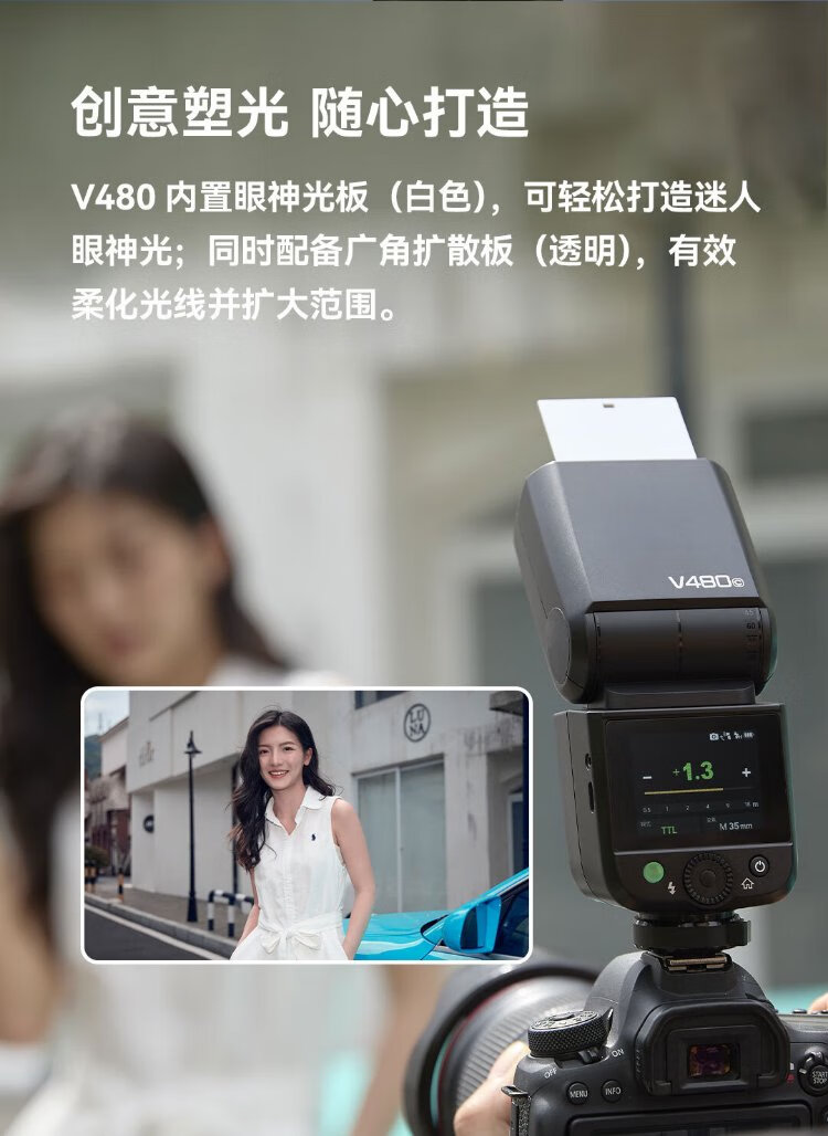 Godox V480 on-camera flash, outdoor shooting fill light, suitable for Canon, Sony, Nikon, and Fujifilm mirrorless cameras. Standard configuration. V480 on-camera flash, Canon version. V480 standard configuration, including soft light box. TOP1 Canon version. Join to receive free gifts.