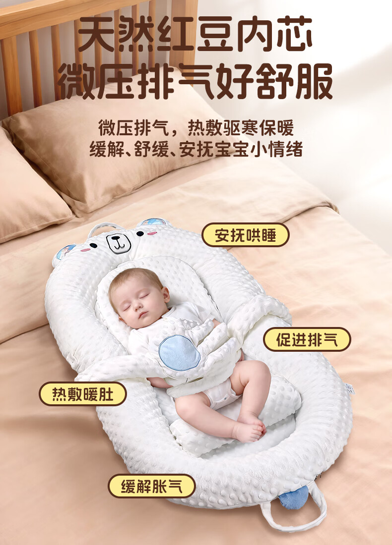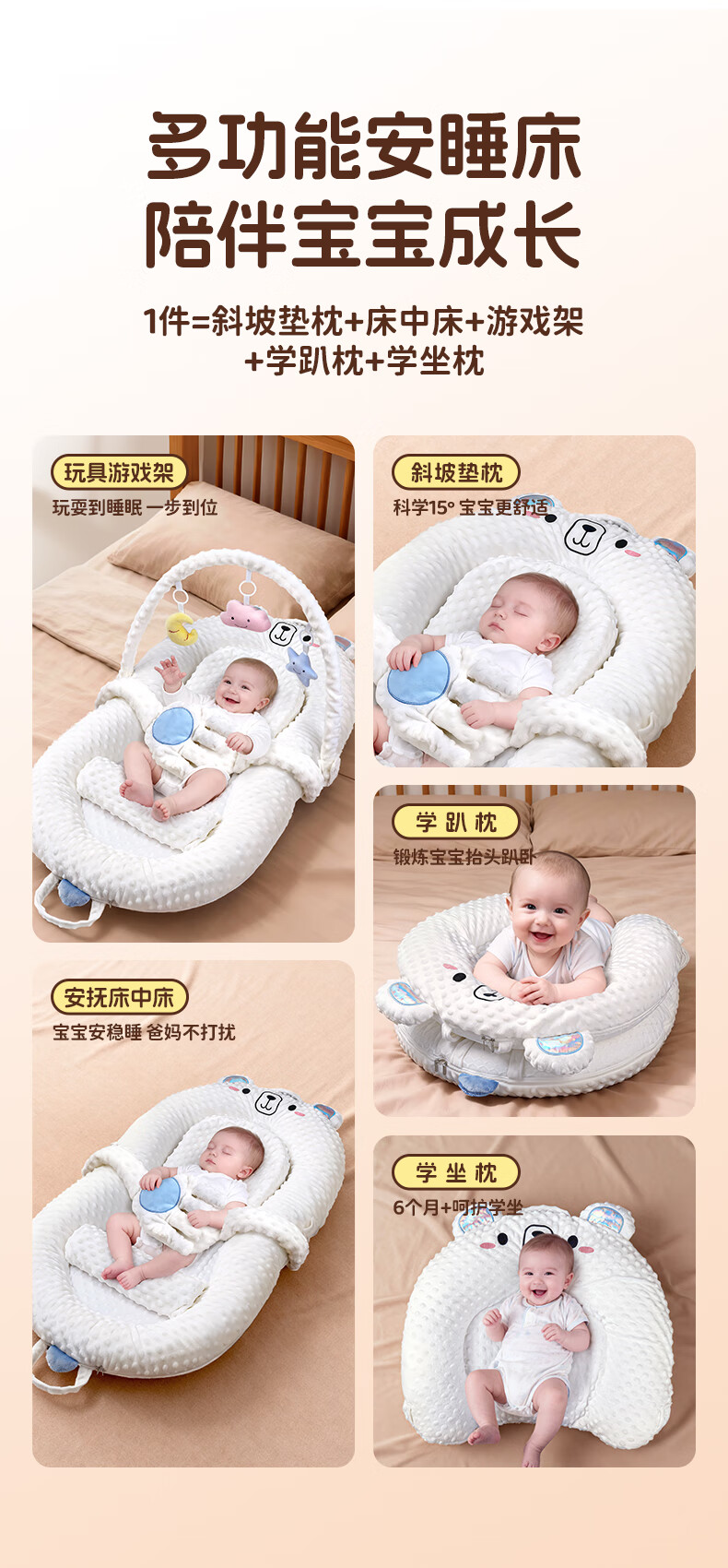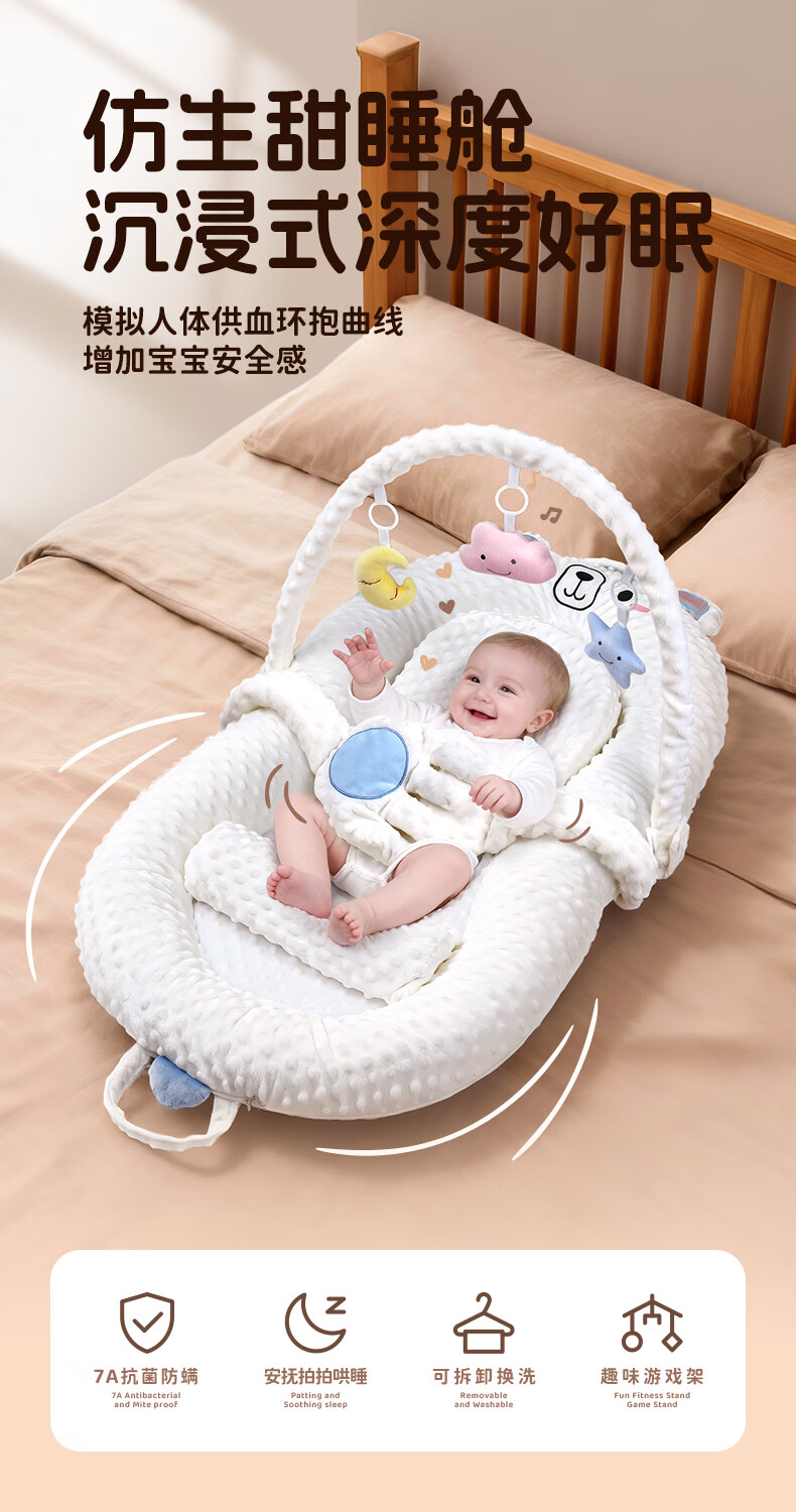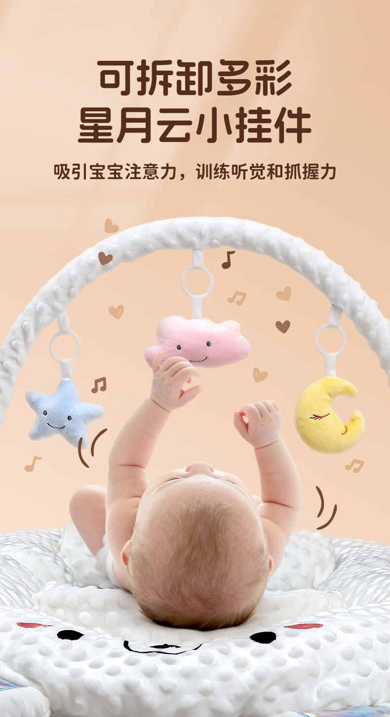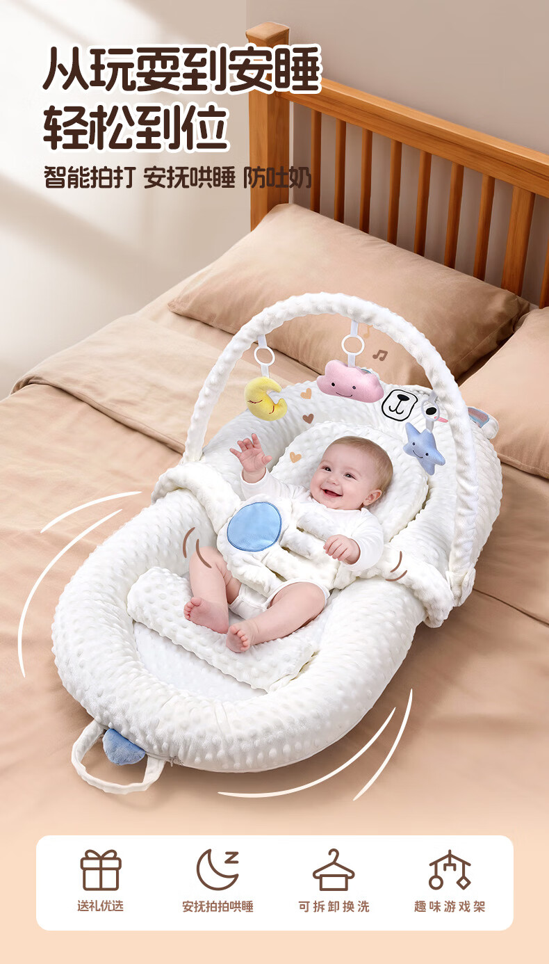 Keyoumeng baby toys newborn meeting gift 0-6 months mother and baby supplies gift box practical baby one-month-old gift patting to sleep + slope mat + toy stand + saliva towel soothing and sleeping anti-scare God Baitian device bed 1 middle bed 3