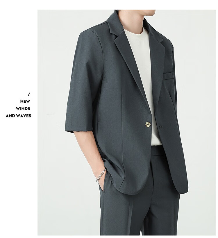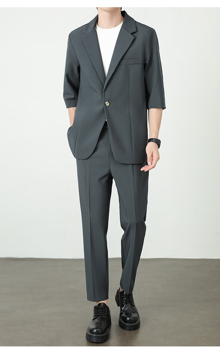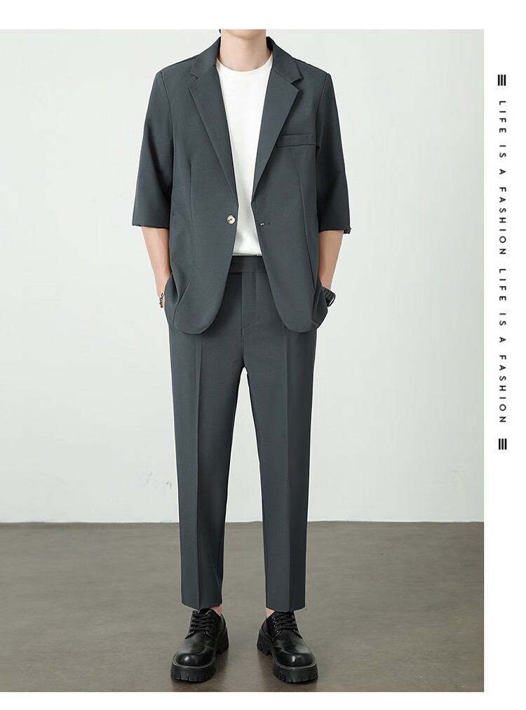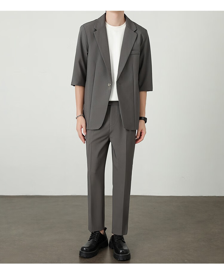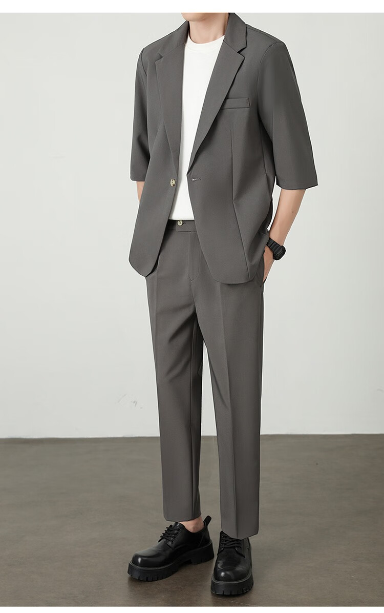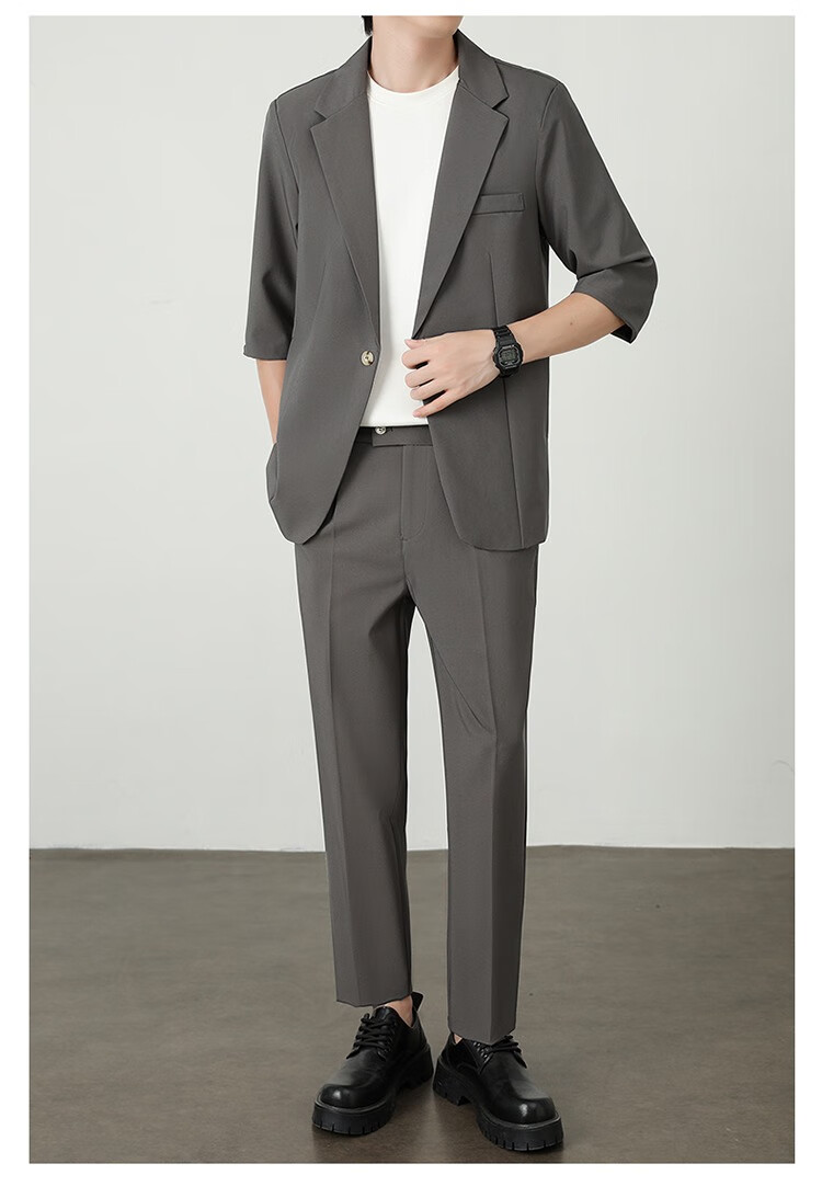 Light and mature style Korean style loose summer thin men's suit two-piece set gray set 3XL
