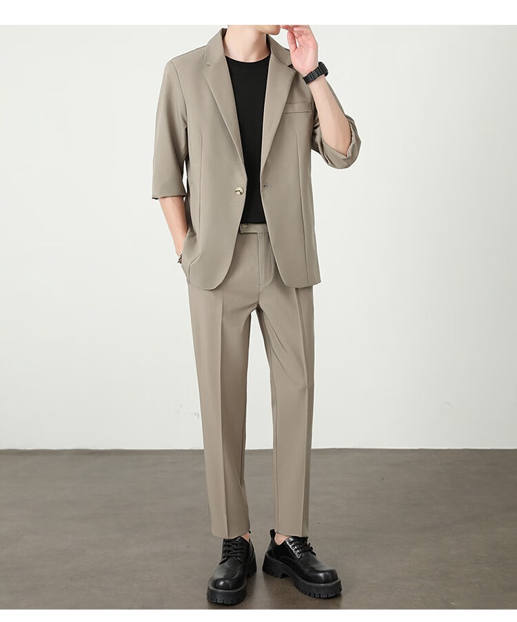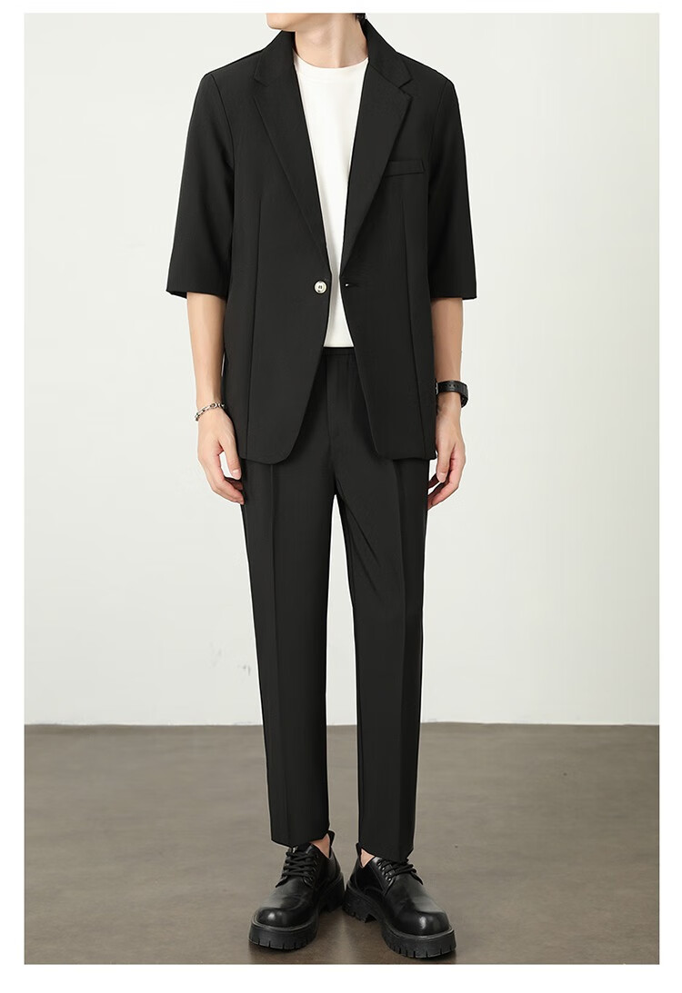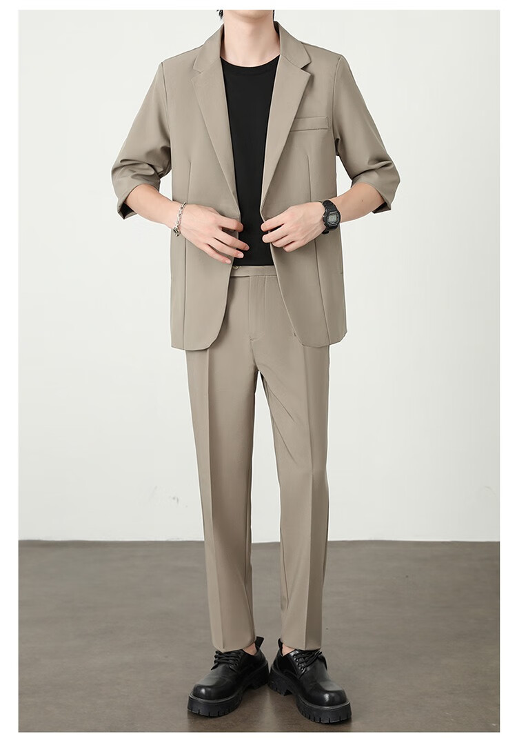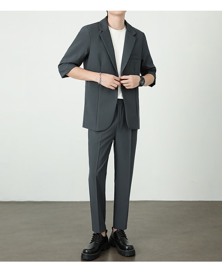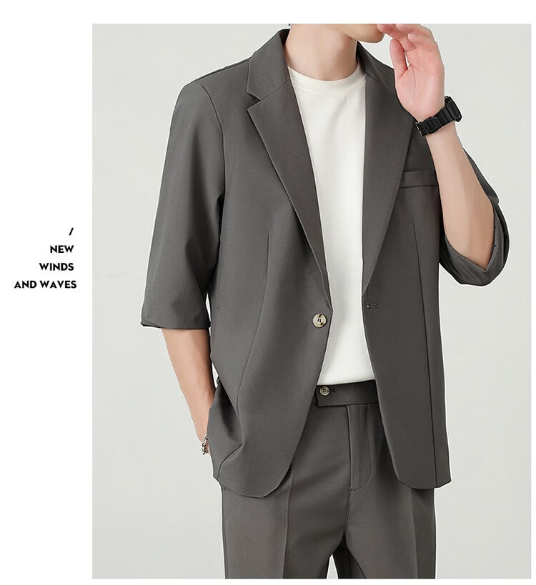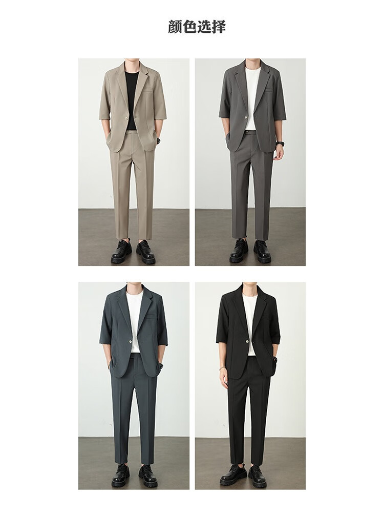 Light and mature style Korean style loose summer thin men's suit two-piece set gray set 3XL