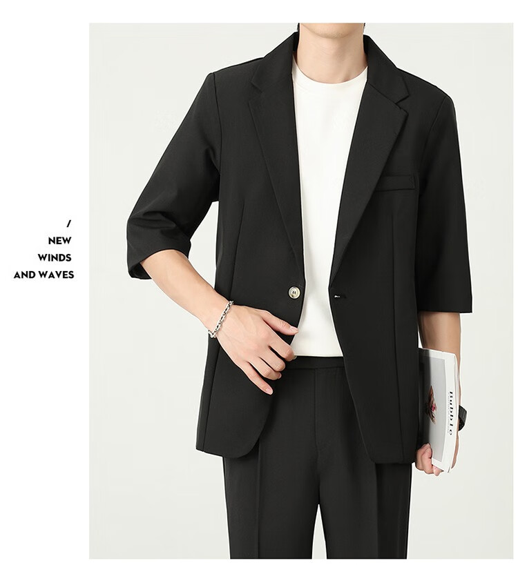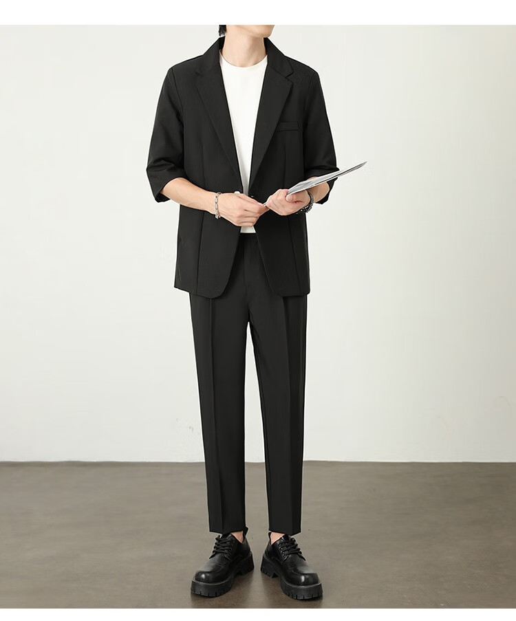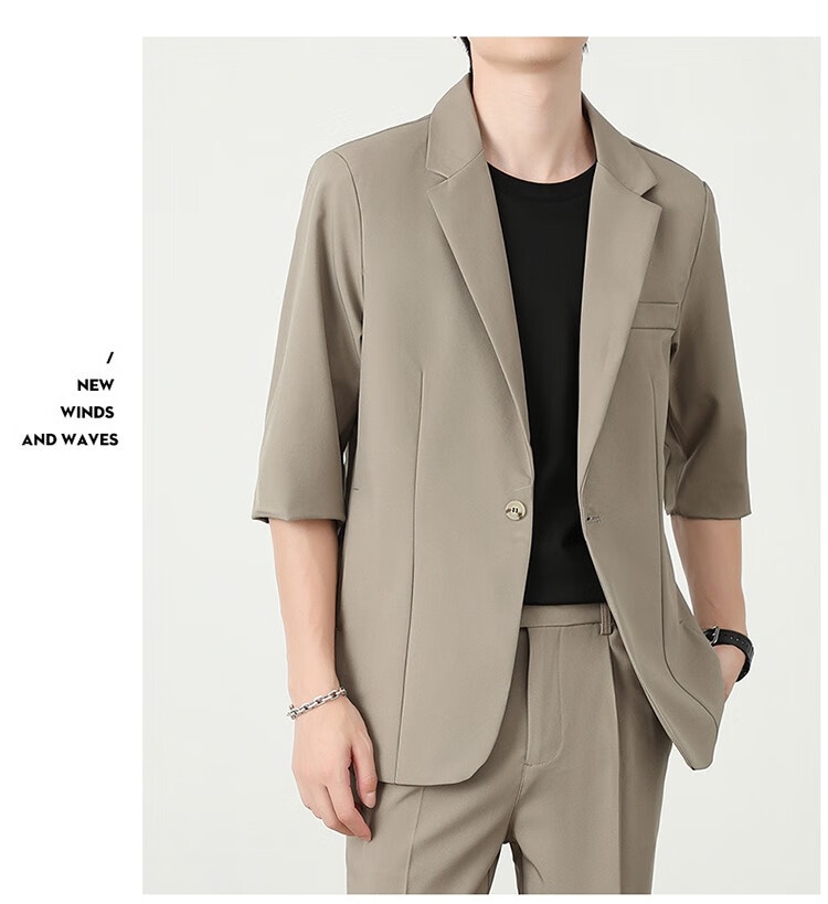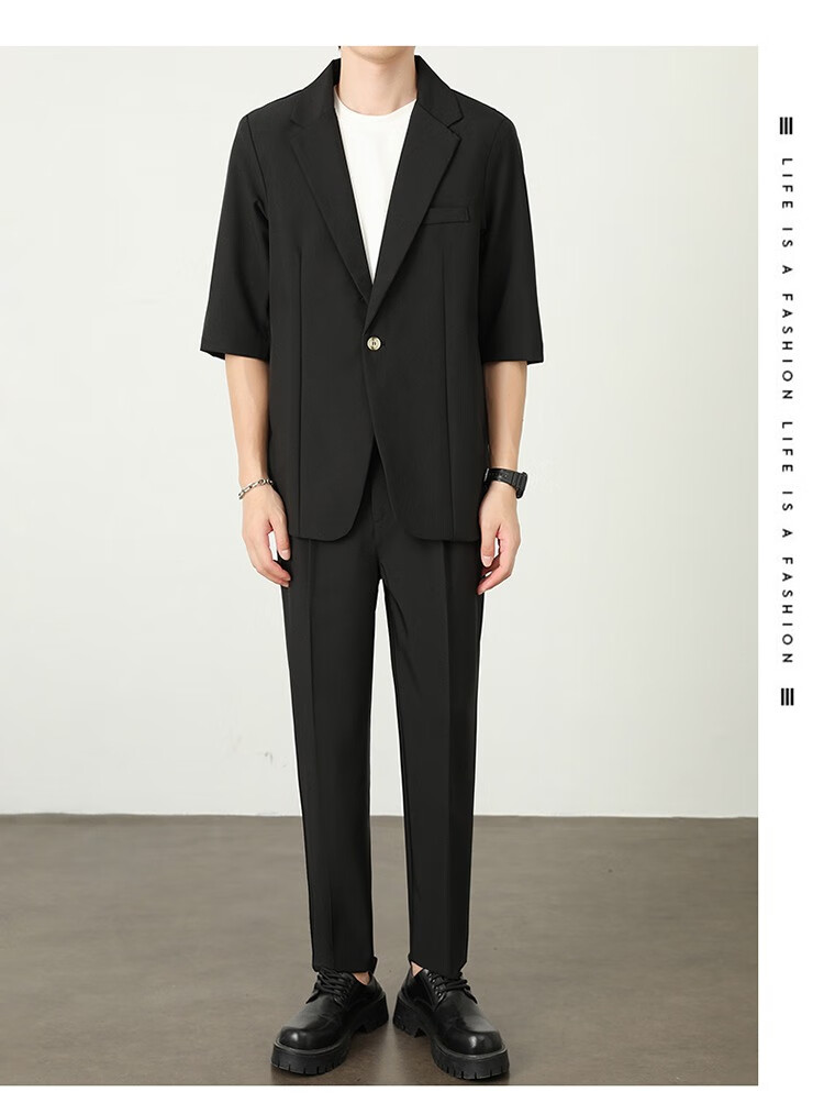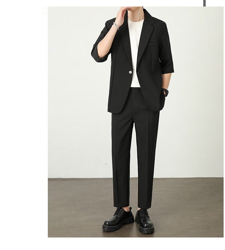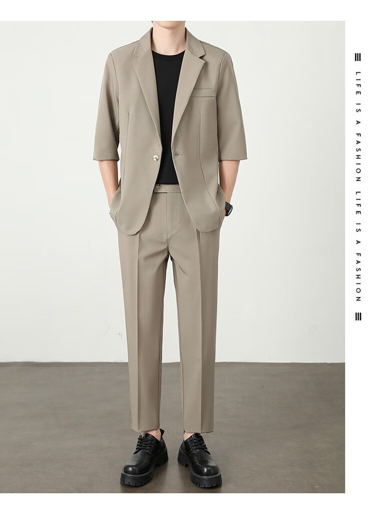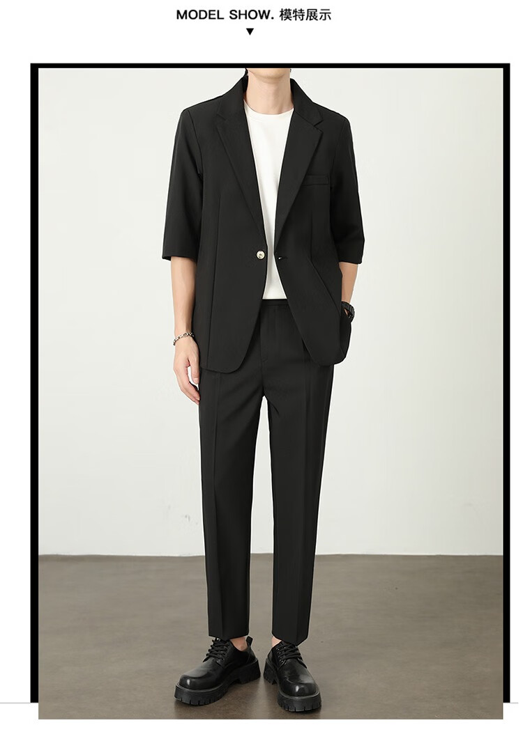 Light and mature style Korean style loose summer thin men's suit two-piece set gray set 3XL