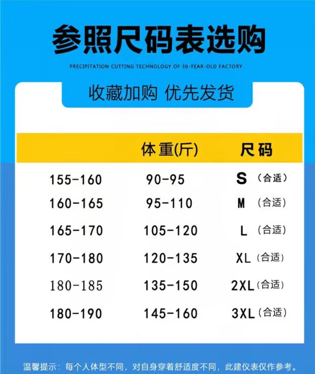 China (cm) 165 / 88-90 170 / 96-98 175 / 108-110 180 / 118-122 185 / 126-130