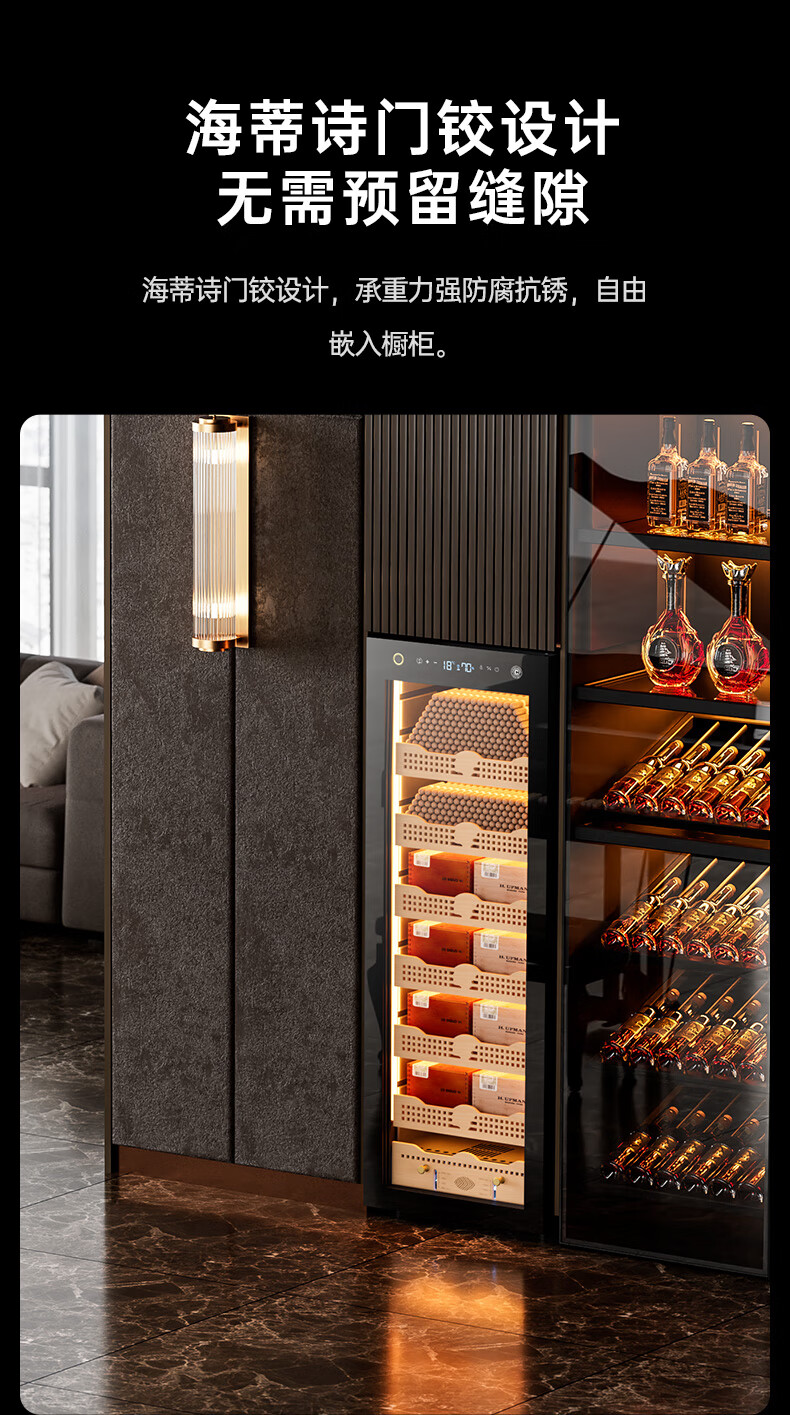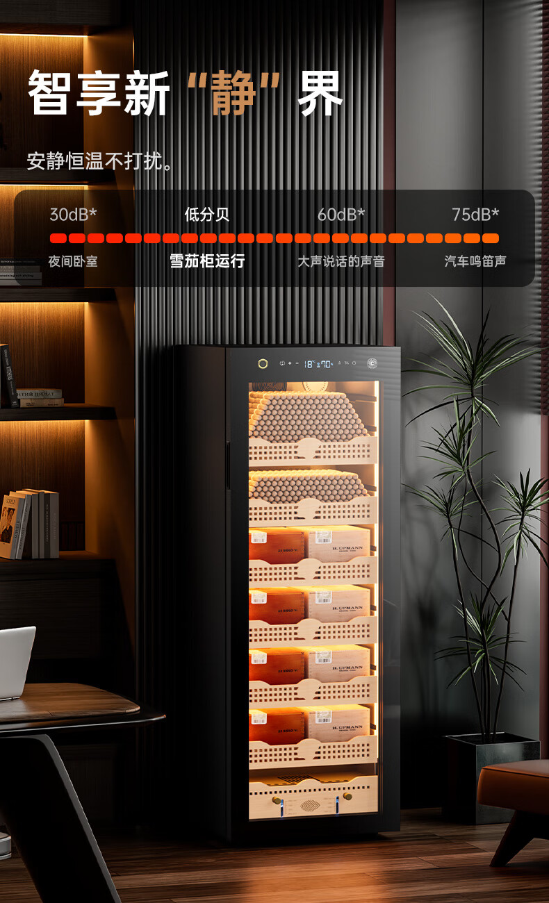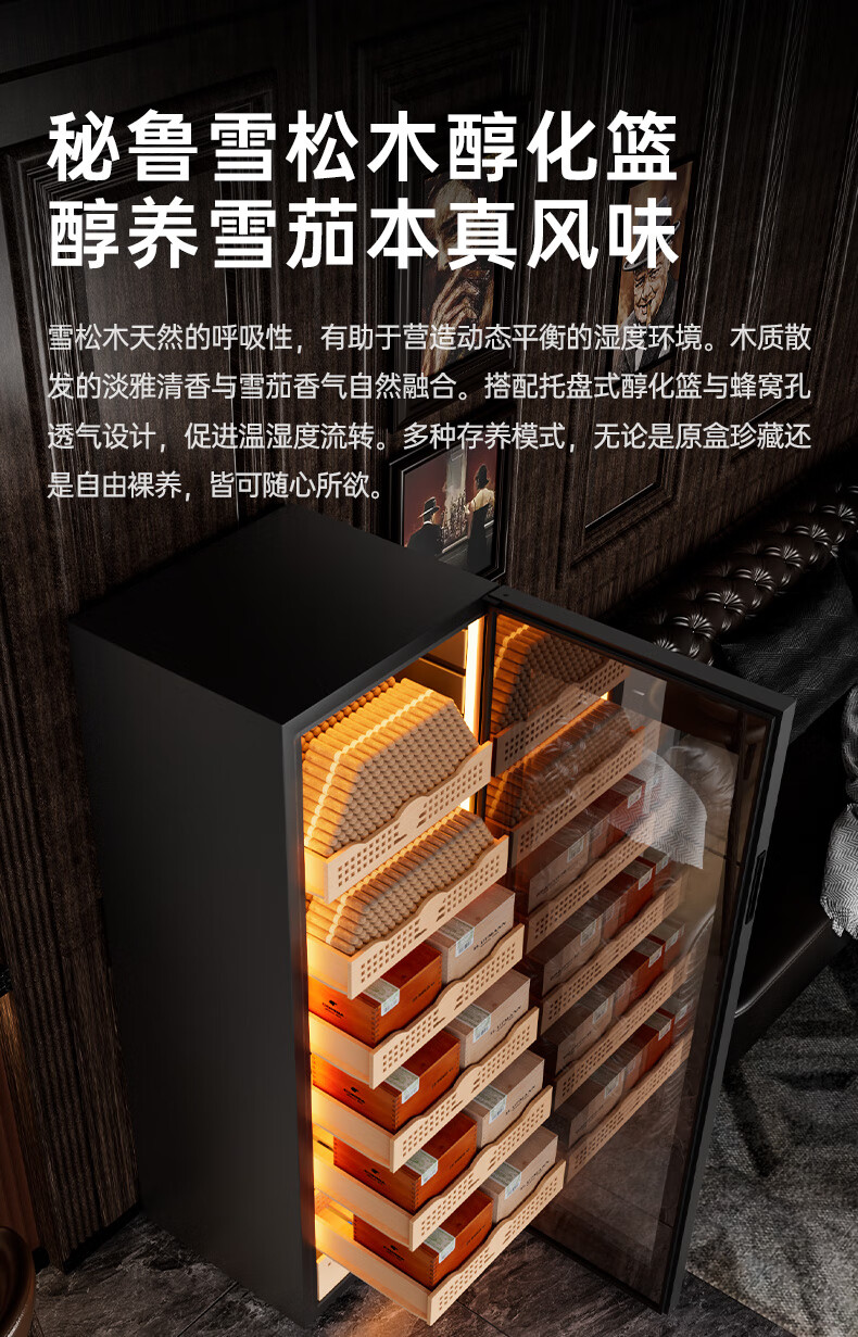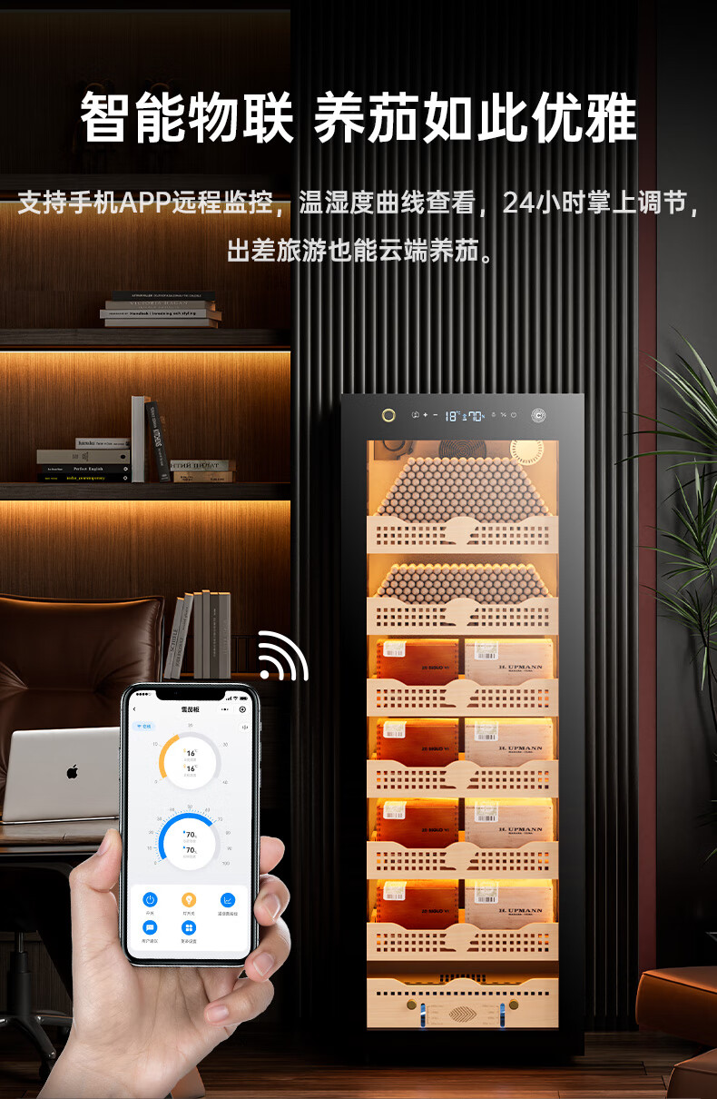 CIGARLOONG 158C cigar cabinet, precise constant temperature and humidity, smart WiFi compressor cabinet with fingerprint lock, cedar wood layer, alcohol nourishing water, ion removal of ammonia, tomato cultivation, cigar moisturizing cabinet, red wine cabinet, cedar wood shelf, Cuban pattern, fingerprint lock + WiFi + ammonia purification system