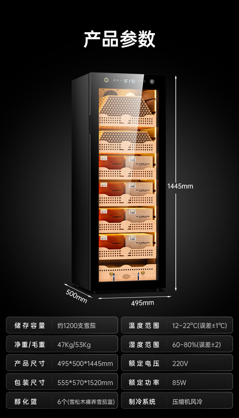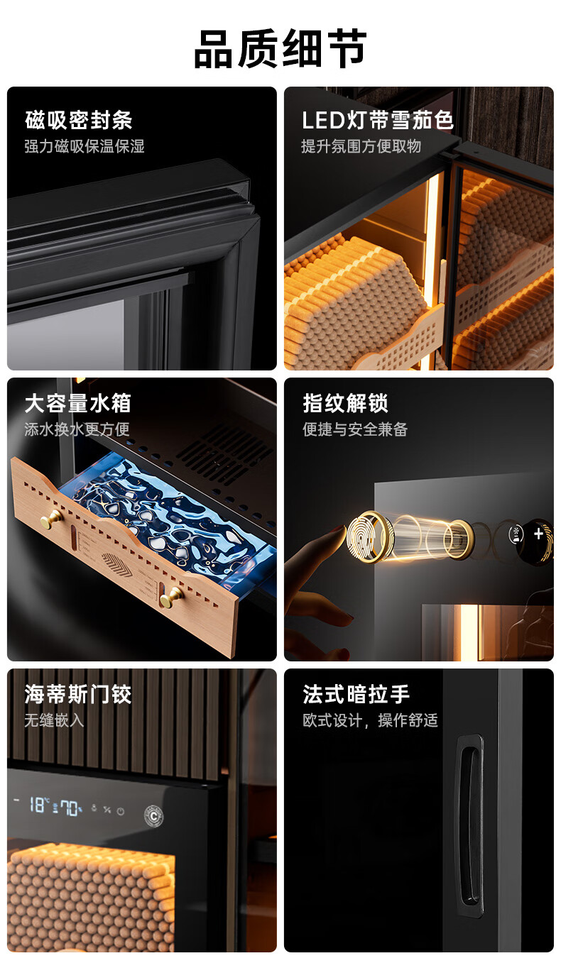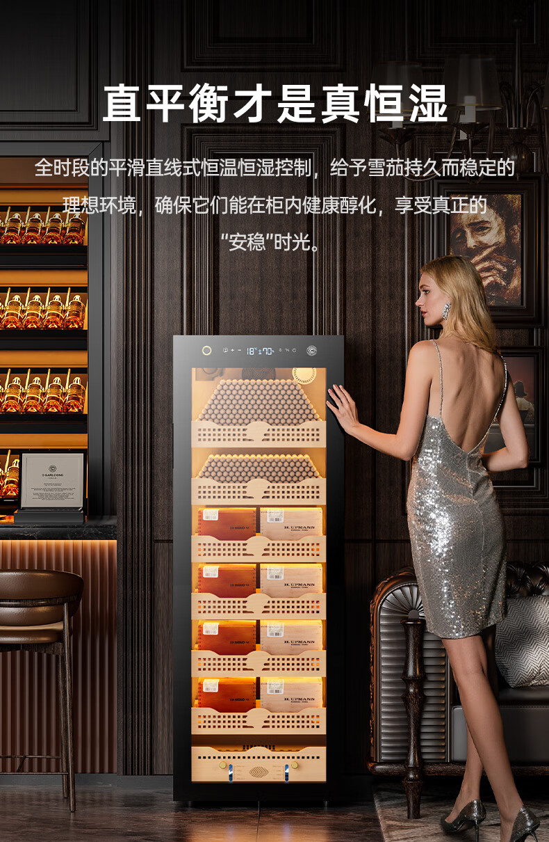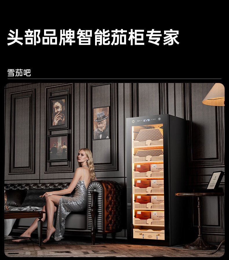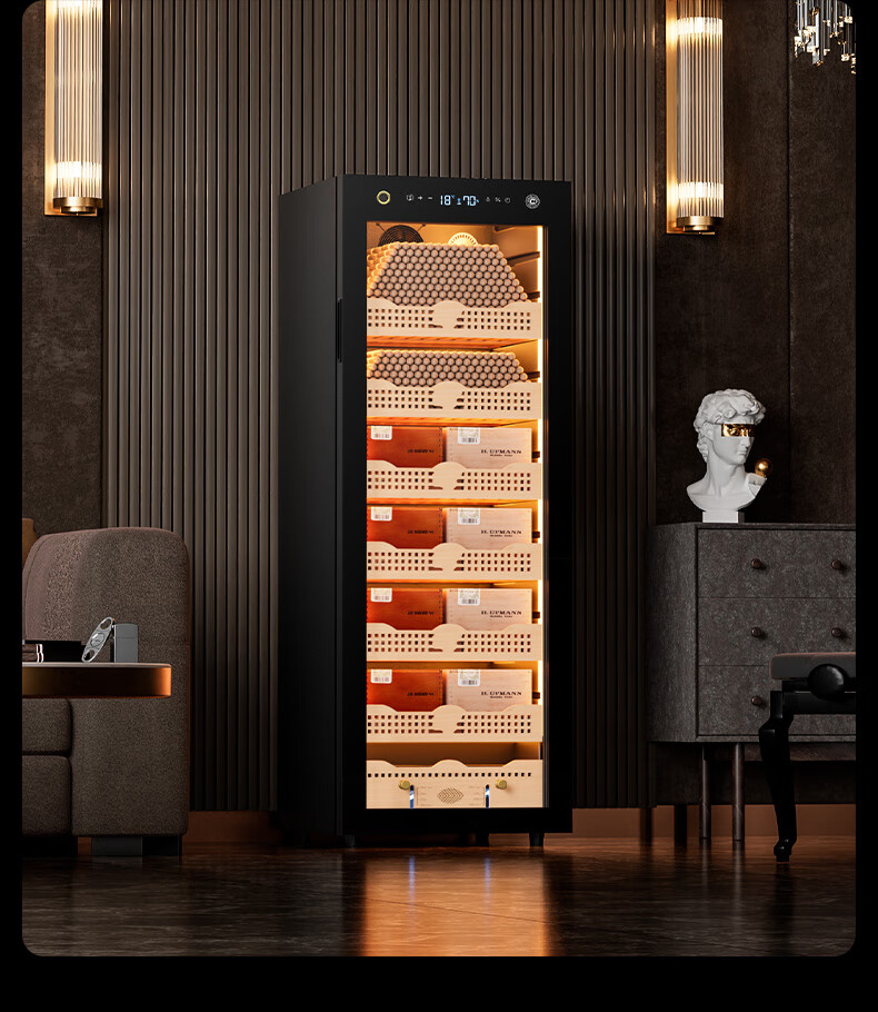 CIGARLOONG 158C cigar cabinet, precise constant temperature and humidity, smart WiFi compressor cabinet with fingerprint lock, cedar wood layer, alcohol nourishing water, ion removal of ammonia, tomato cultivation, cigar moisturizing cabinet, red wine cabinet, cedar wood shelf, Cuban pattern, fingerprint lock + WiFi + ammonia purification system