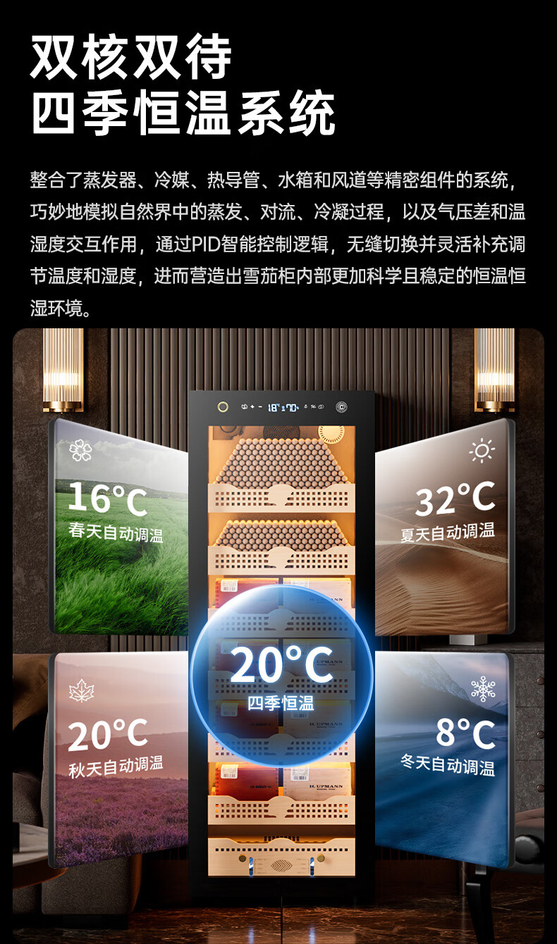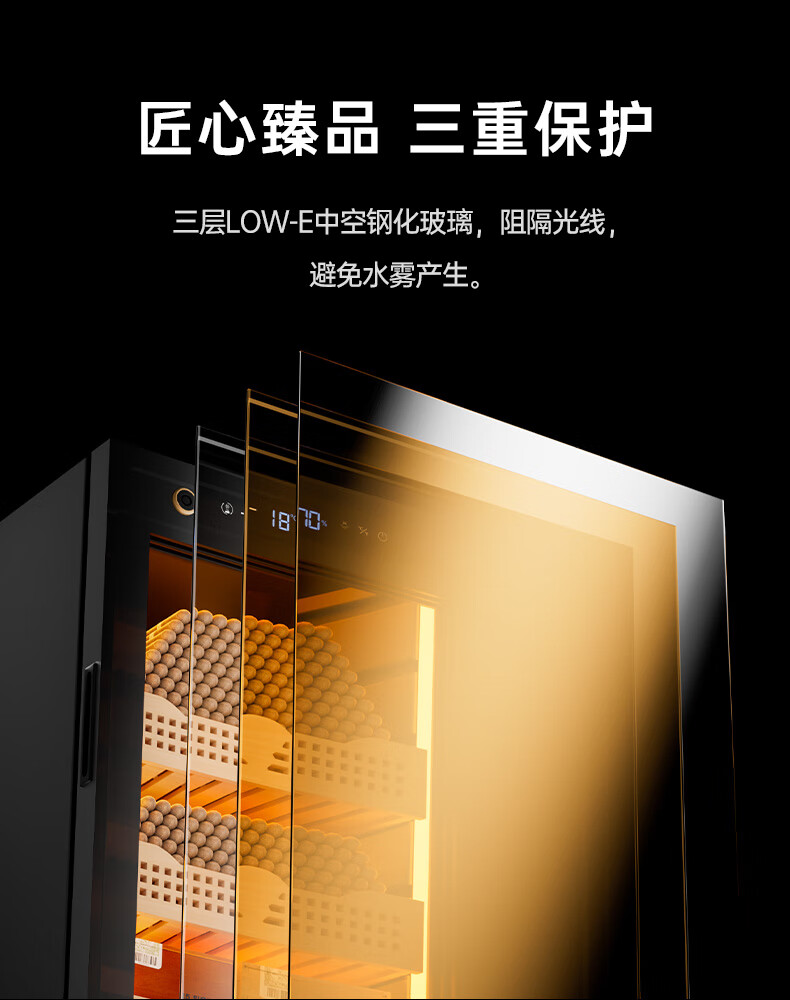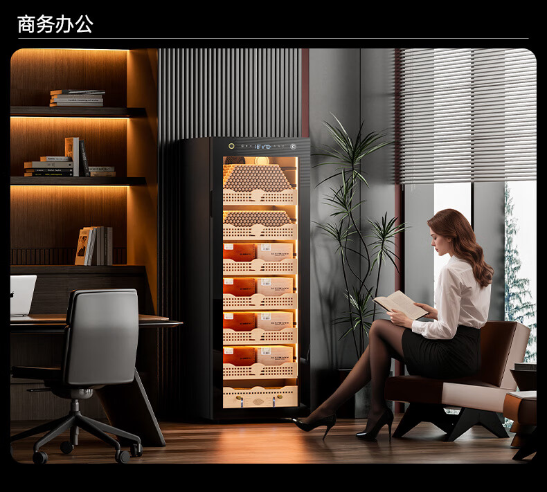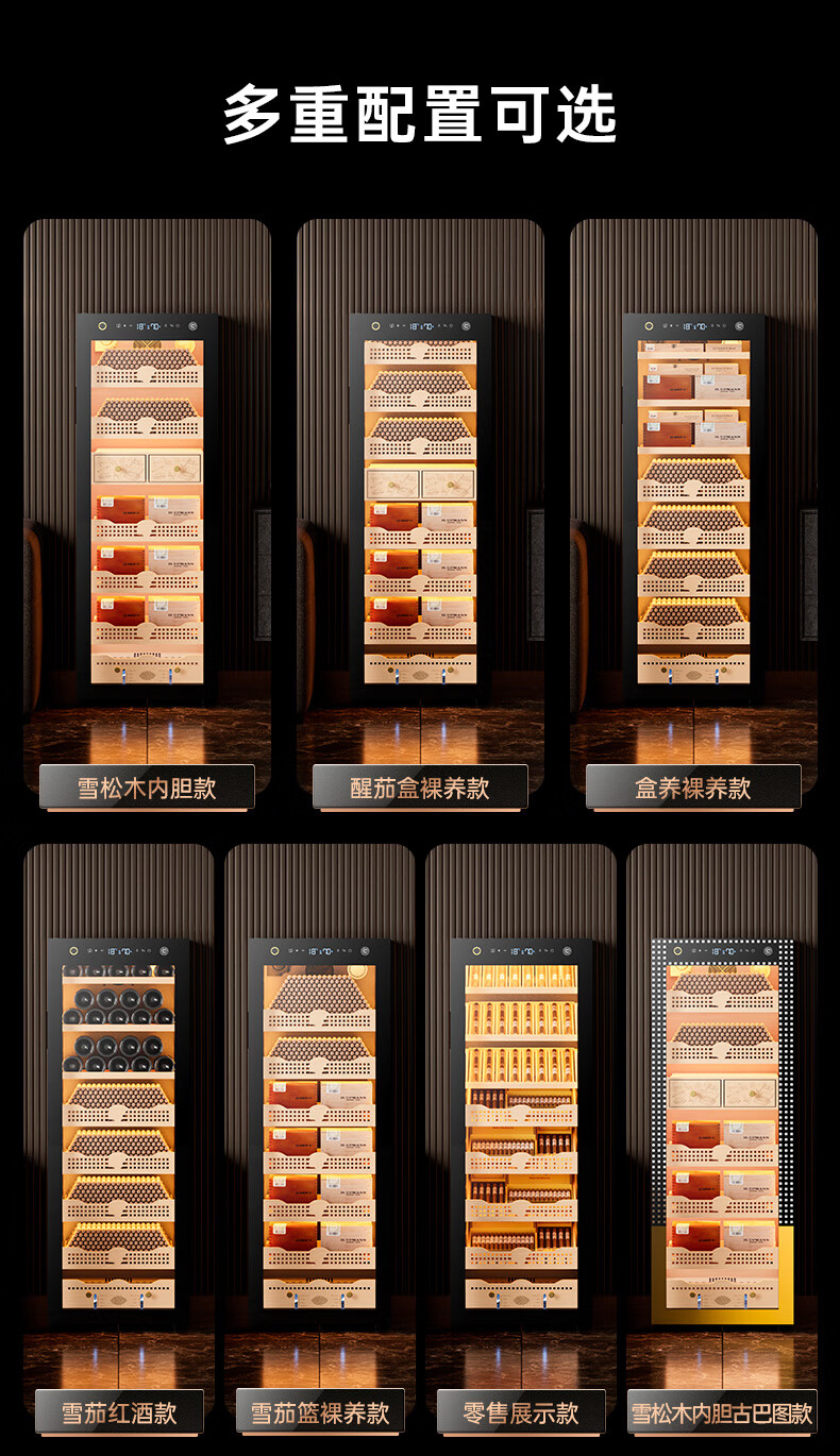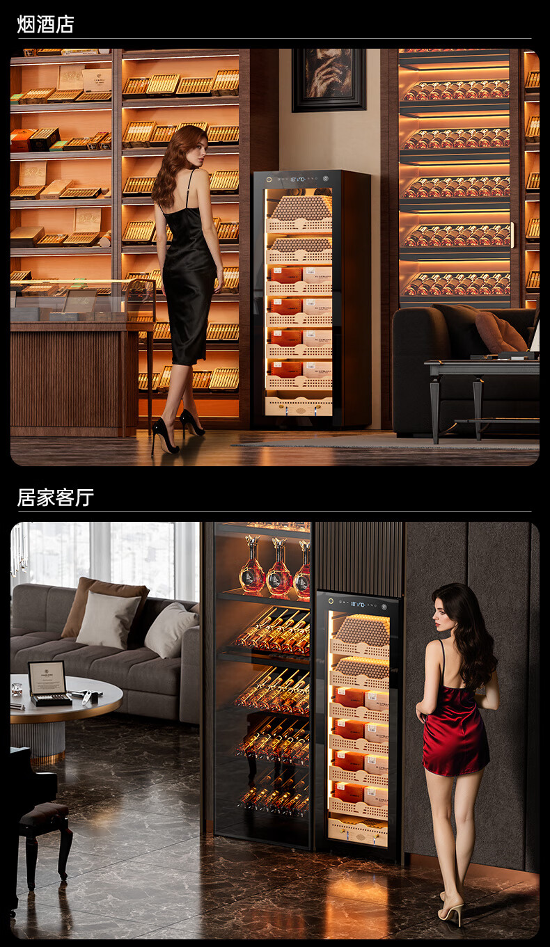 CIGARLOONG 158C cigar cabinet, precise constant temperature and humidity, smart WiFi compressor cabinet with fingerprint lock, cedar wood layer, alcohol nourishing water, ion removal of ammonia, tomato cultivation, cigar moisturizing cabinet, red wine cabinet, cedar wood shelf, Cuban pattern, fingerprint lock + WiFi + ammonia purification system