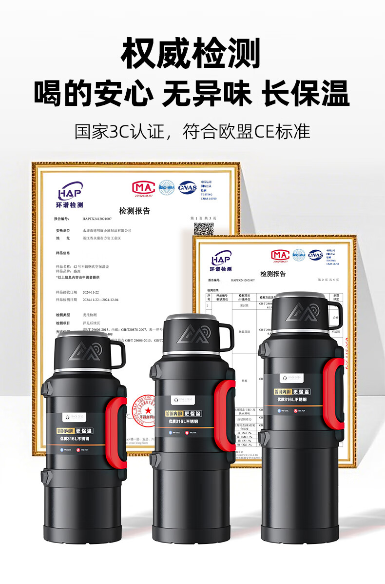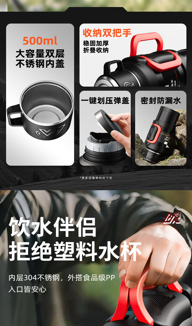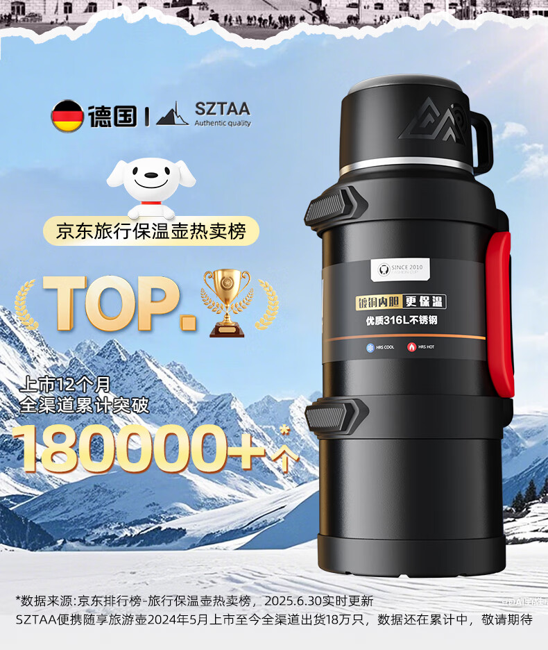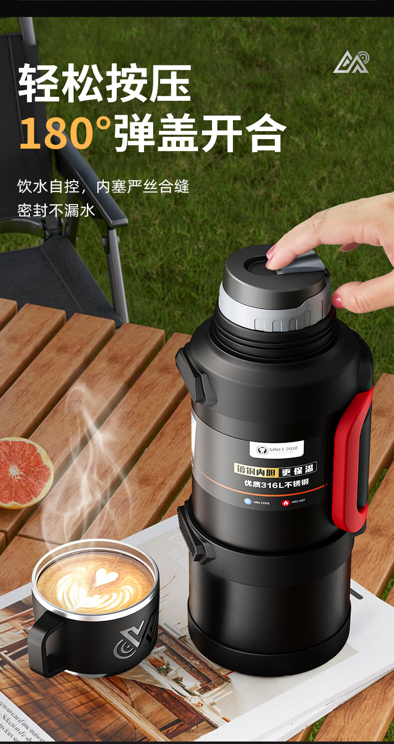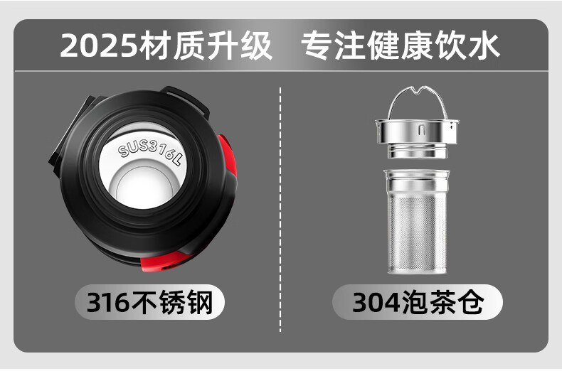 SZTAA Insulated Kettle Cup Large Capacity 316L Stainless Steel Outdoor Travel Kettle Warm Kettle Portable Car Travel Insulated Kettle Black 2000ML (Strap + Long Tea Divider + Handle) Upgraded Antibacterial 316L Liner丨Cup Lid Can Drink Water
