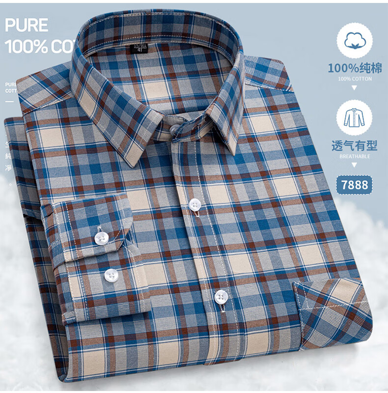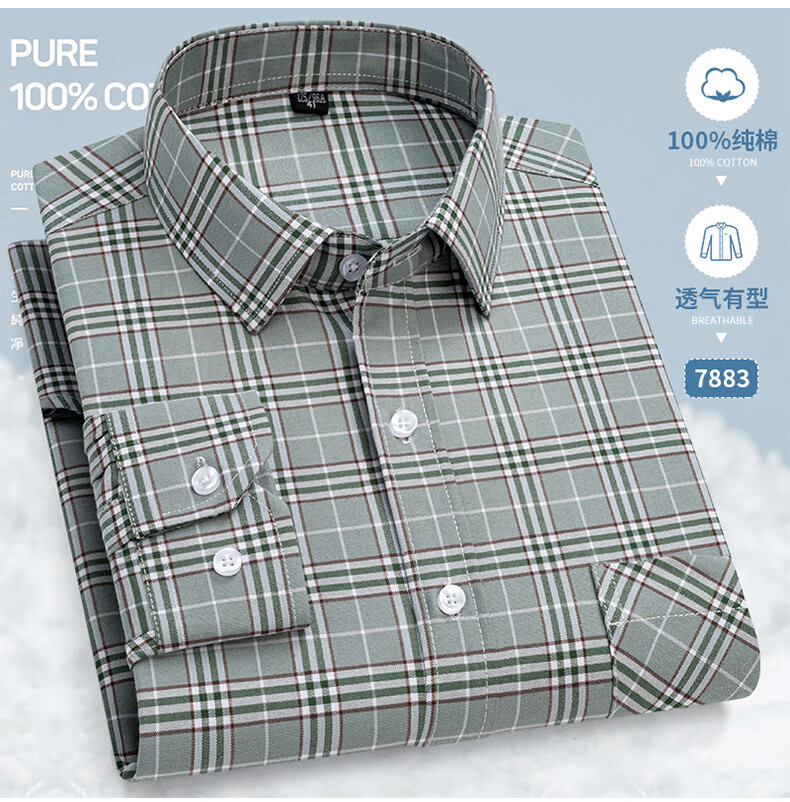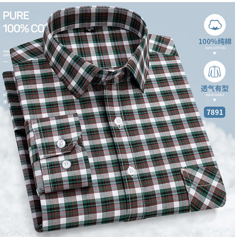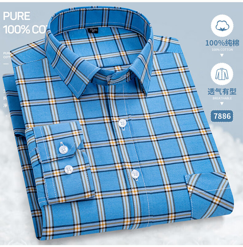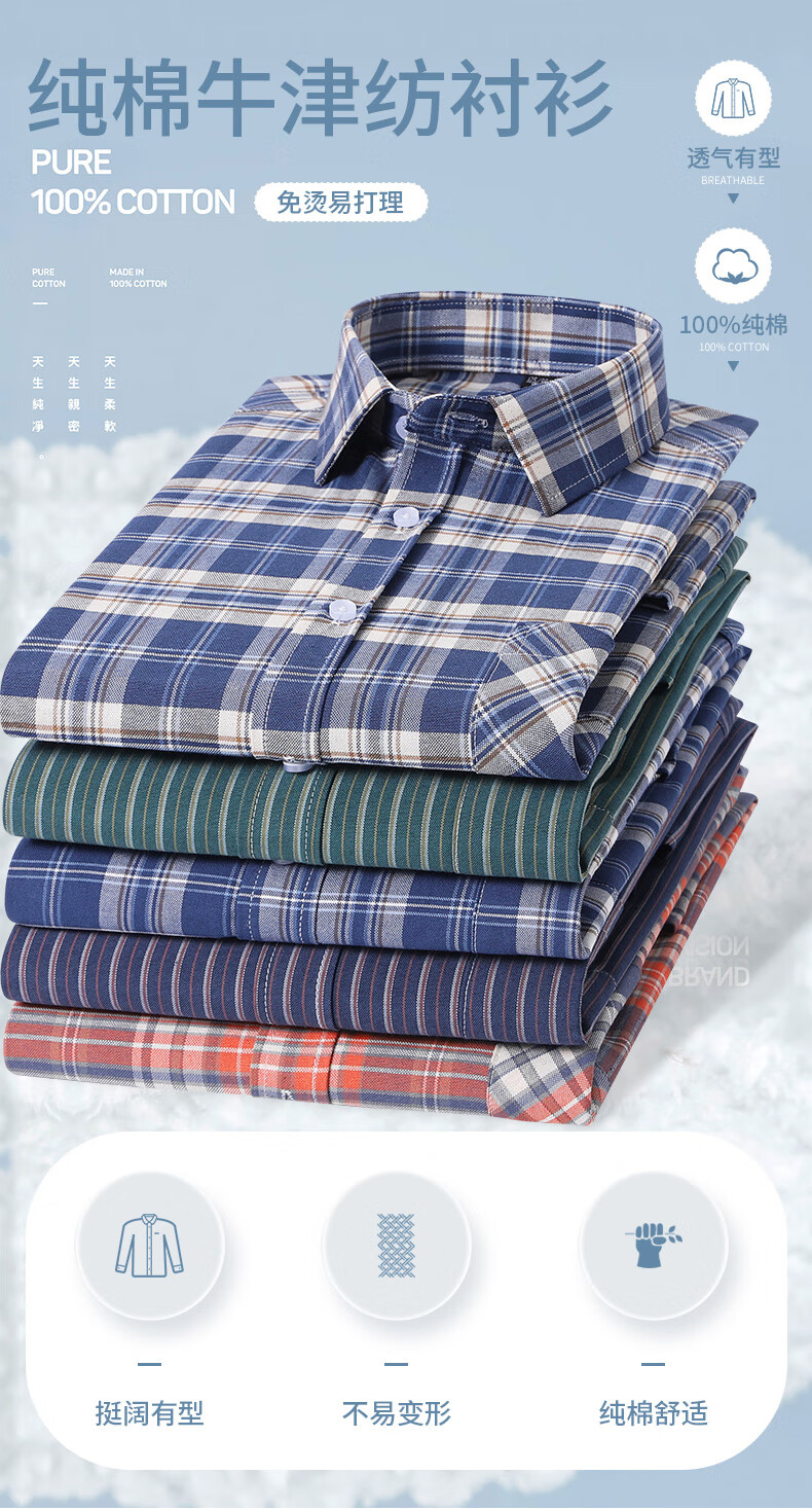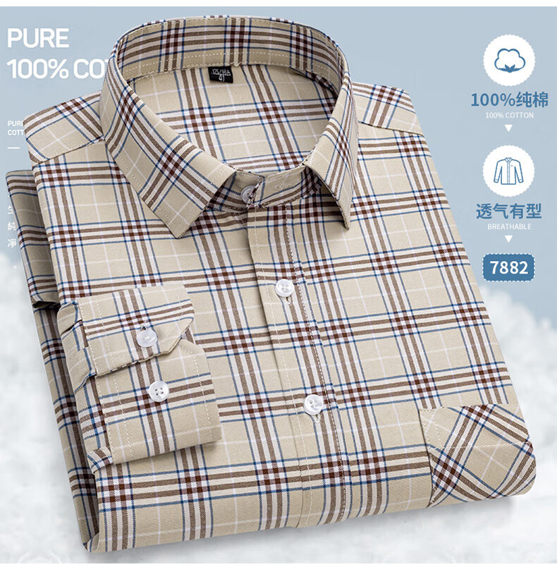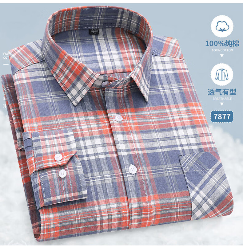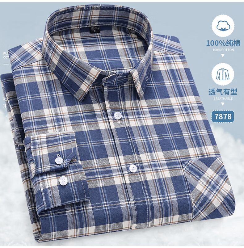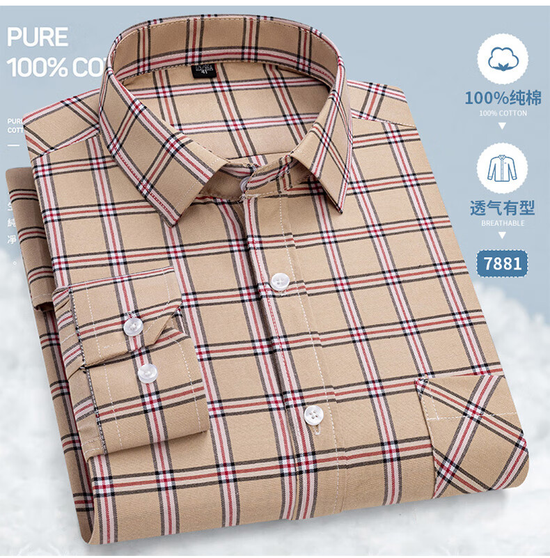 Spring and Autumn Pure Cotton Plaid Long Sleeve Shirt Men's 100% Cotton Oxford Casual Shirt Large Size Top Men's 7878 41 Recommended 135-150Jin Jin equals 0.5 kg