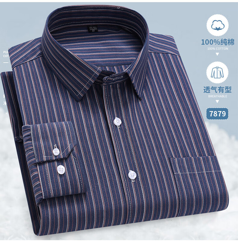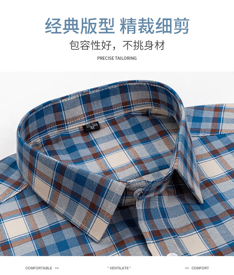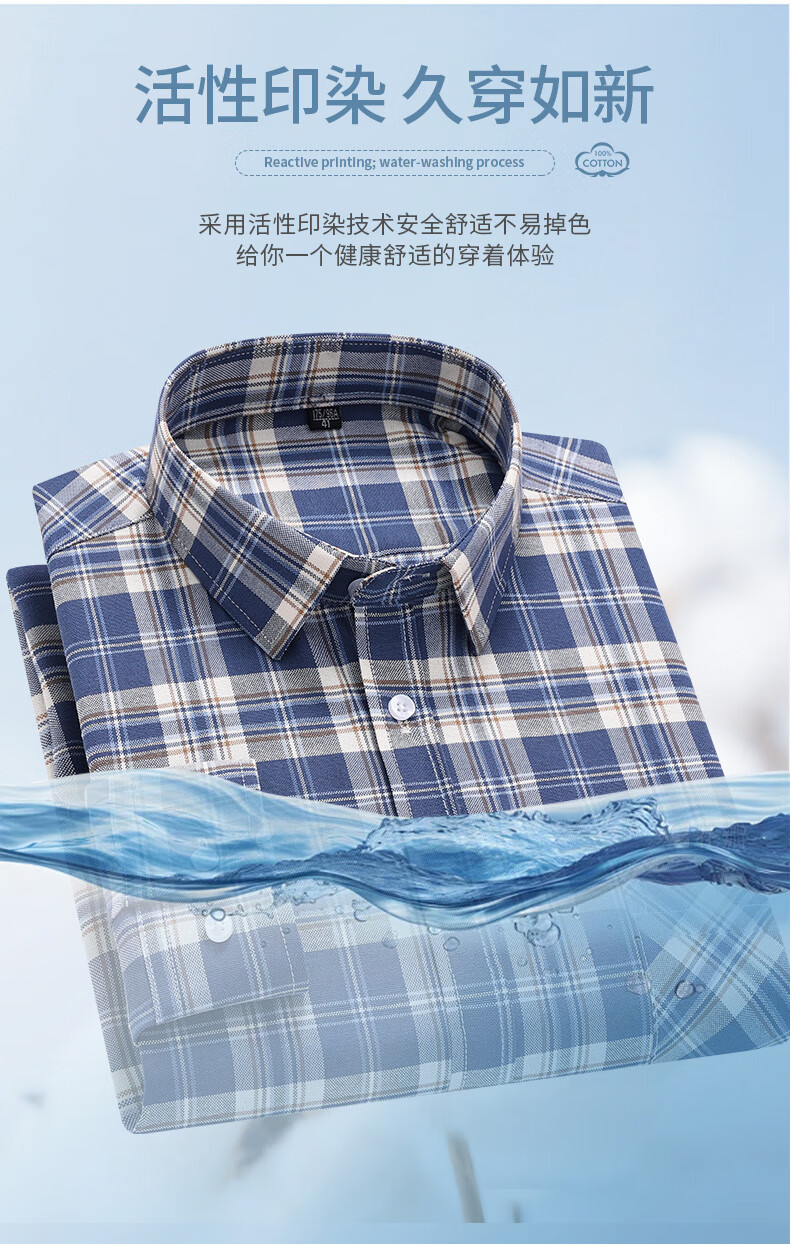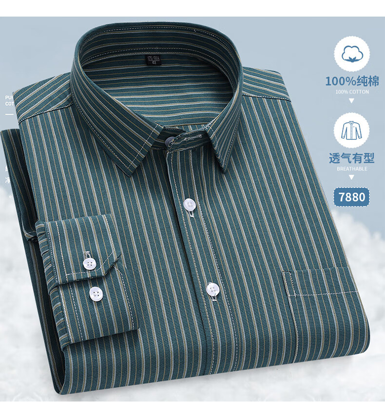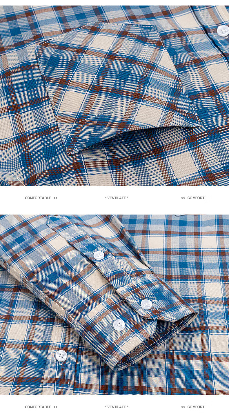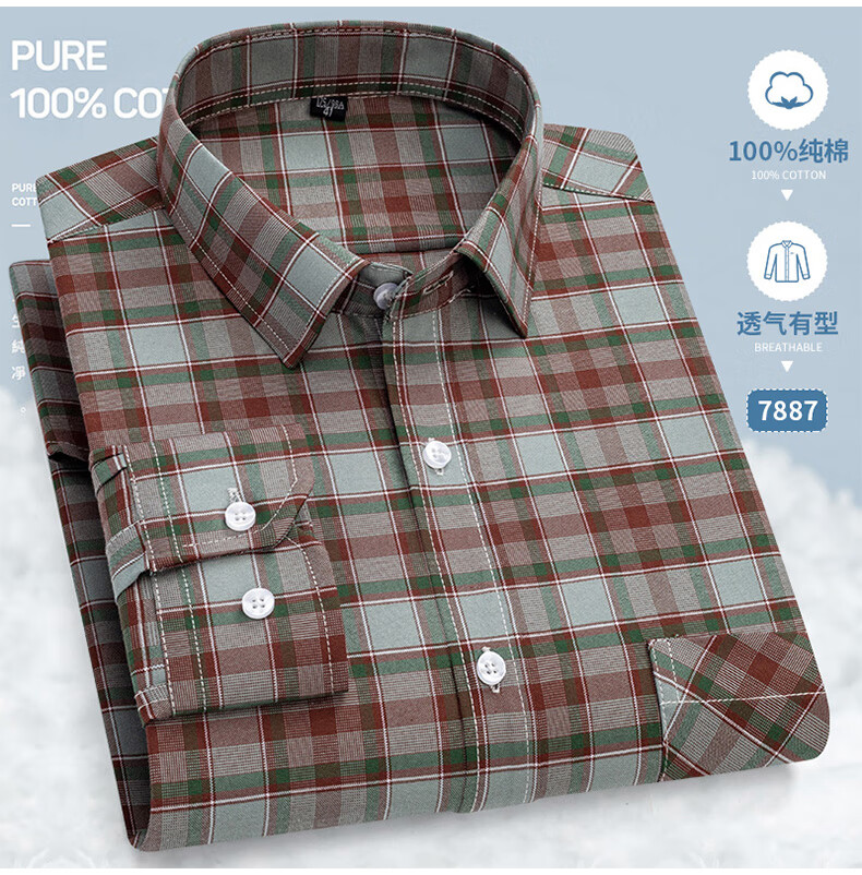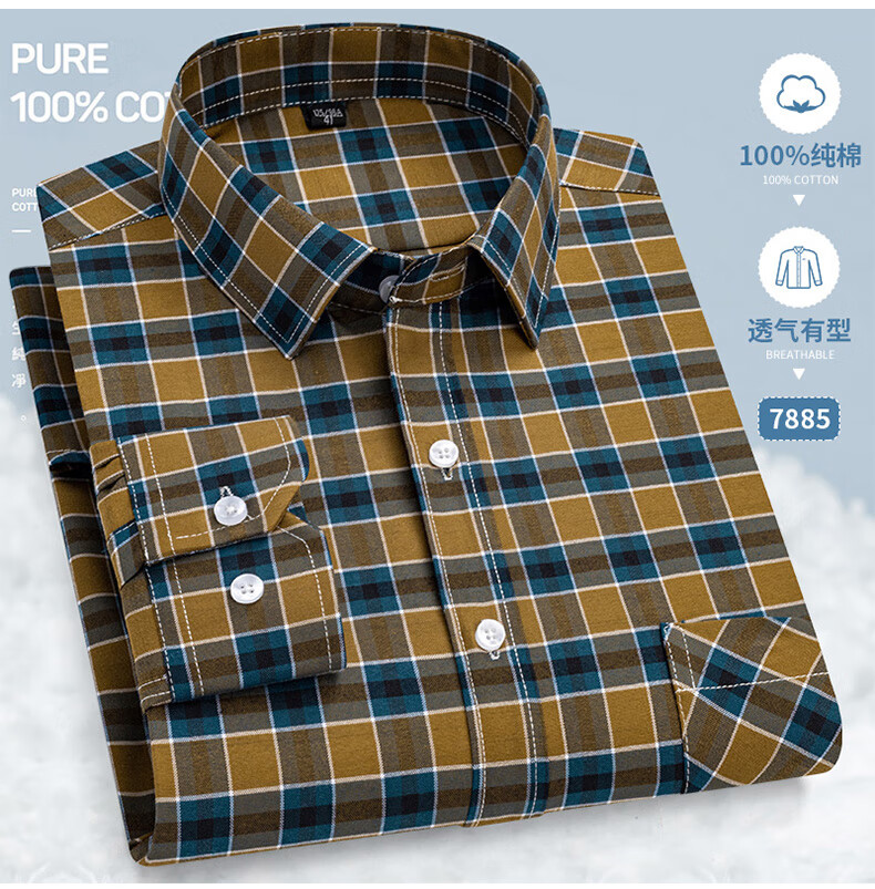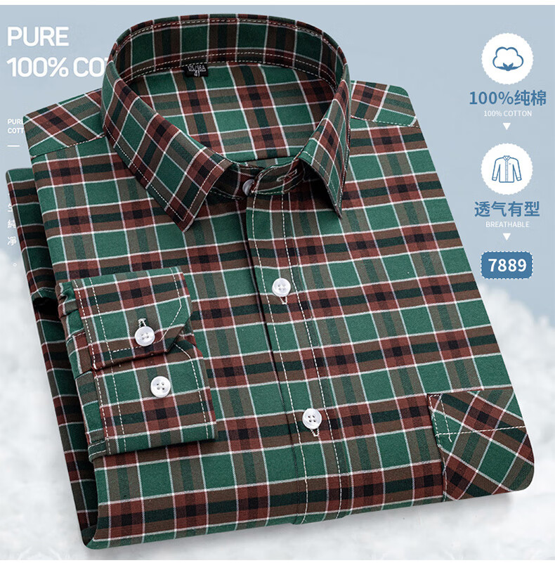 Spring and Autumn Pure Cotton Plaid Long Sleeve Shirt Men's 100% Cotton Oxford Casual Shirt Large Size Top Men's 7878 41 Recommended 135-150Jin Jin equals 0.5 kg