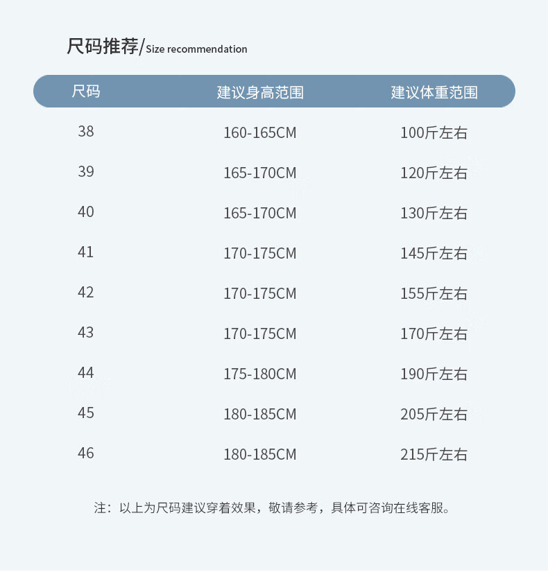 China (cm) 165 / 88-90 170 / 96-98 175 / 108-110 180 / 118-122 185 / 126-130