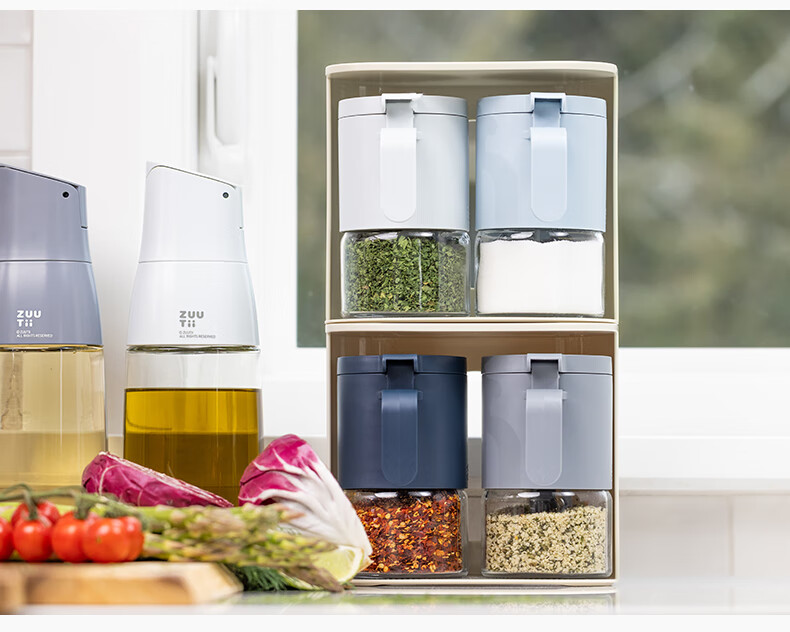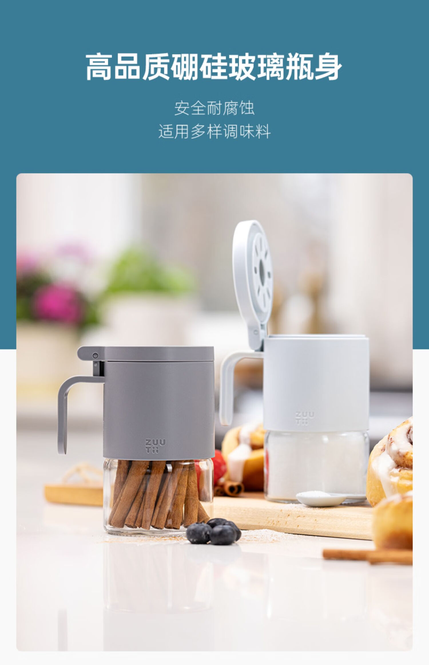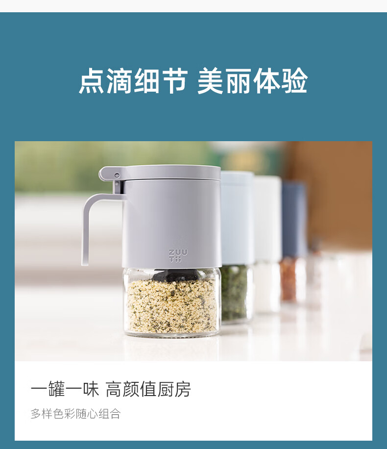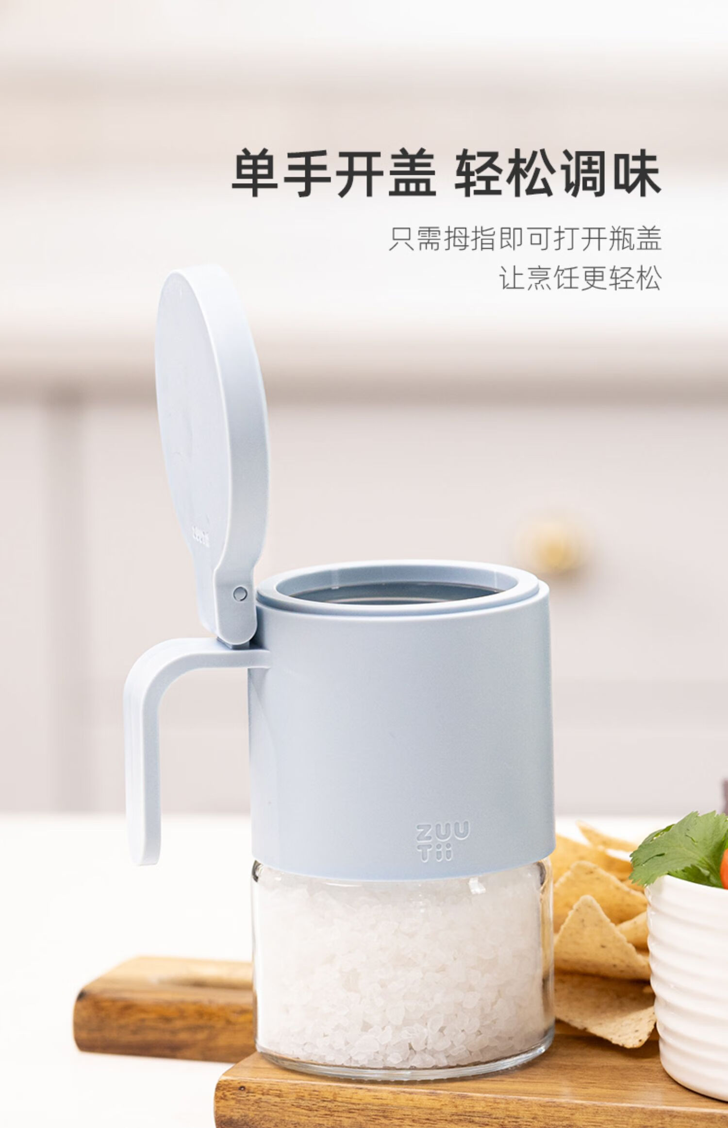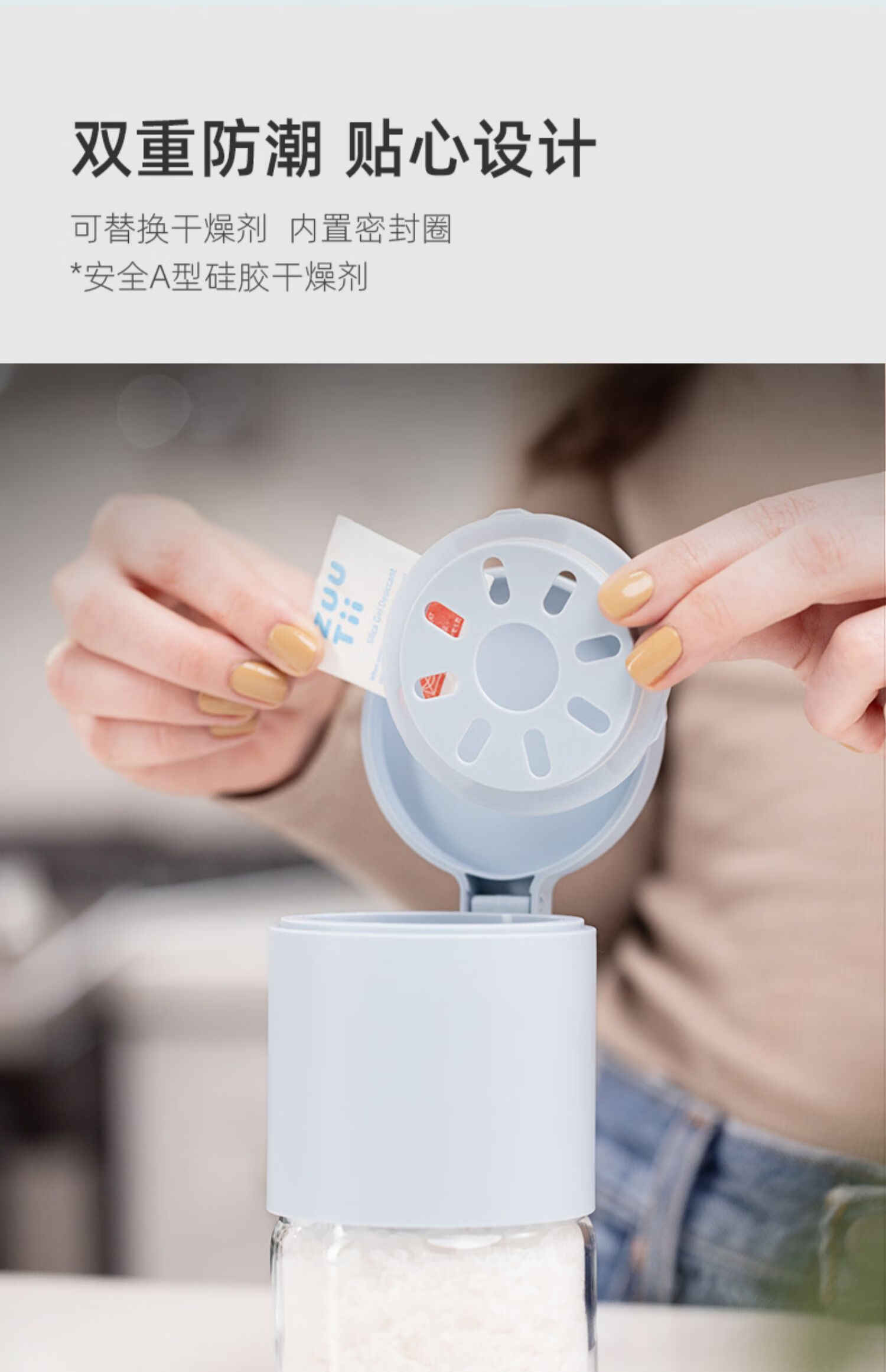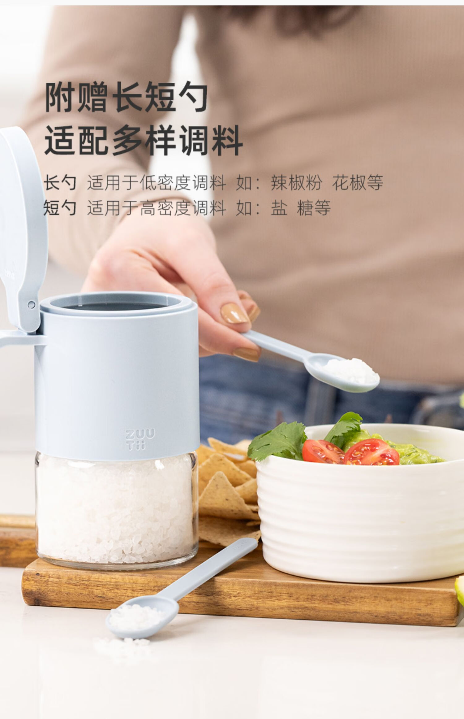 Zuutii seasoning jar kitchen household seasoning box salt shaker sealed moisture-proof seasoning jar glass storage seasoning bottle with long and short spoon seasoning jar (Songyue White + Glacier Blue)