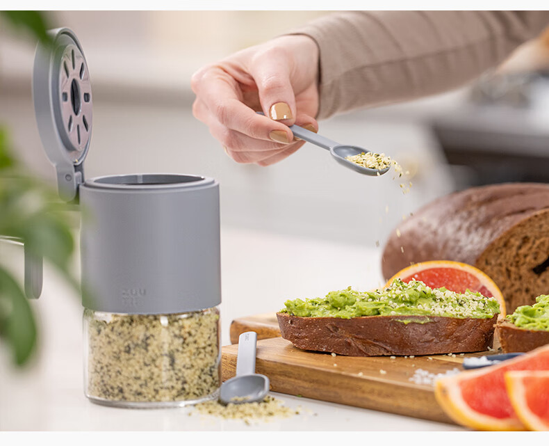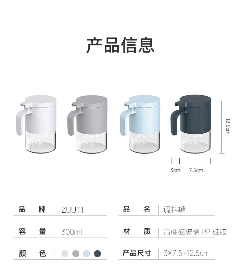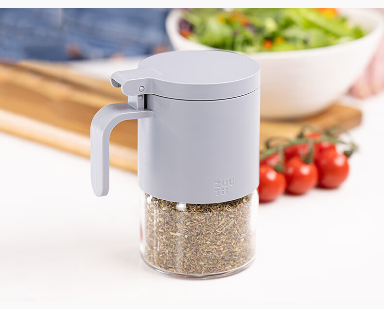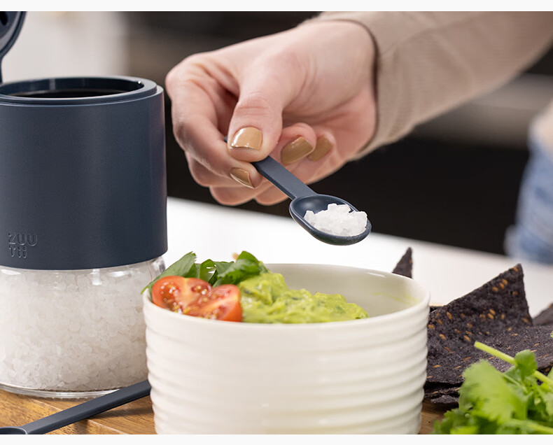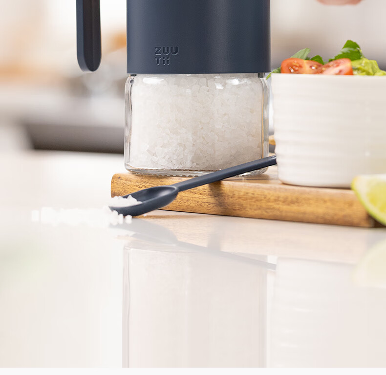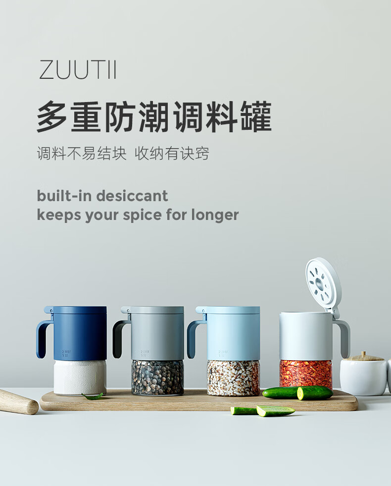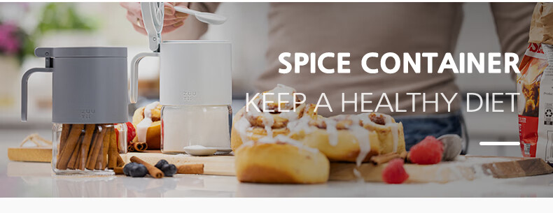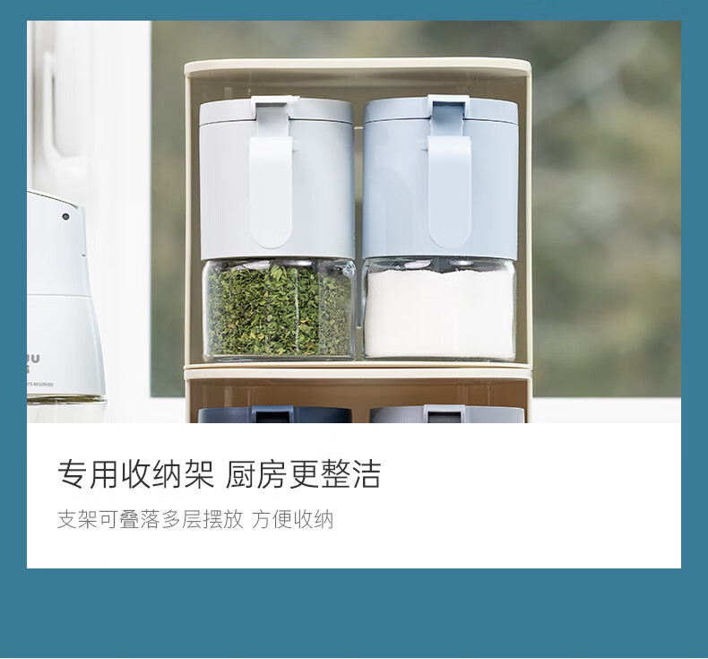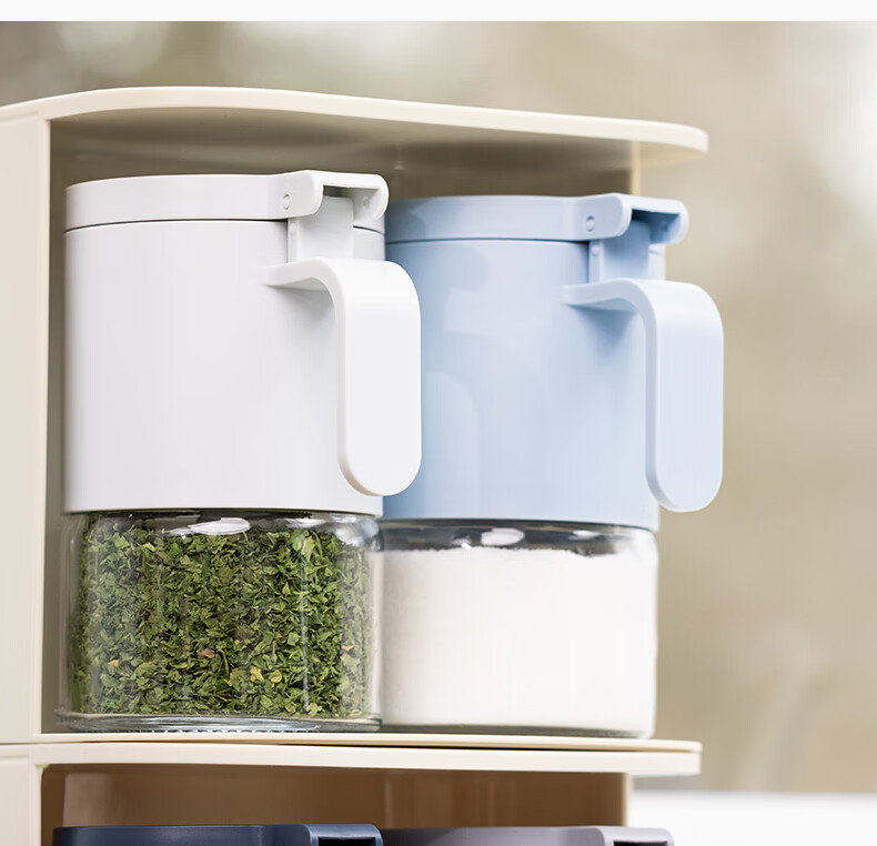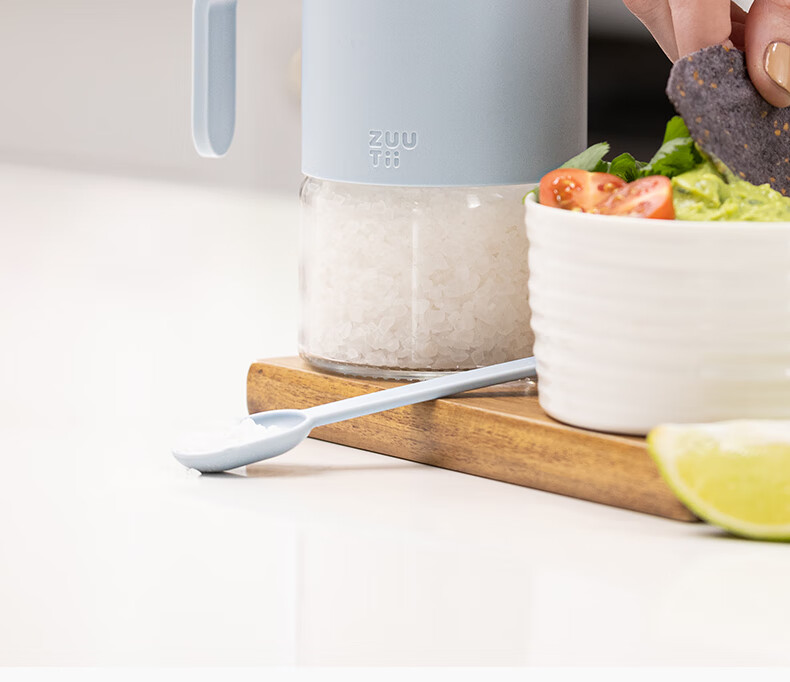 Zuutii seasoning jar kitchen household seasoning box salt shaker sealed moisture-proof seasoning jar glass storage seasoning bottle with long and short spoon seasoning jar (Songyue White + Glacier Blue)