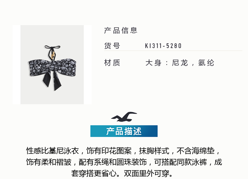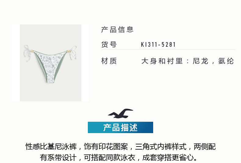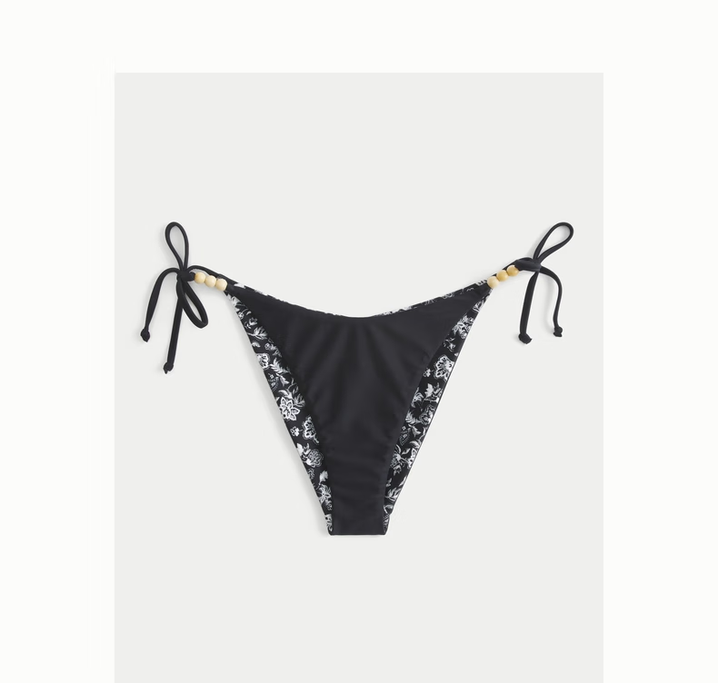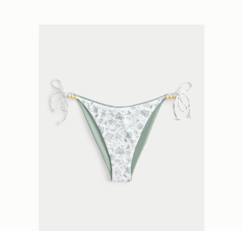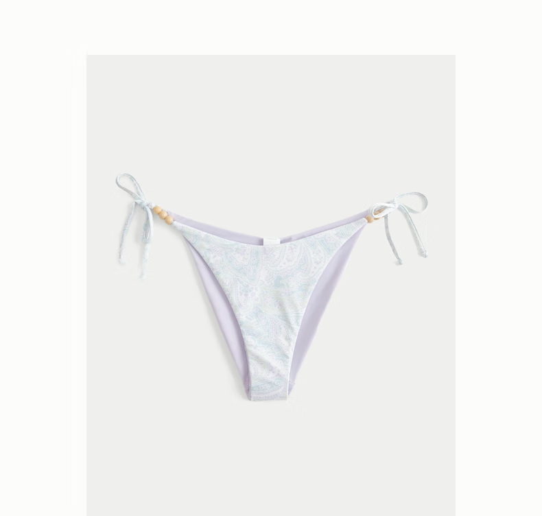 HOLLISTER25 Summer Y2K Sexy Resort Style Beach Bikini Women's 311-5280 White Print (Bottoms) XXS