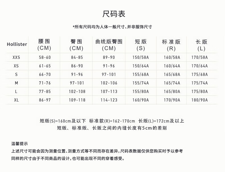 China (cm) 160-165/84-86 165-170 / 88-90 167-172 / 92-96 168-173 / 98-102 170-176 / 106-110