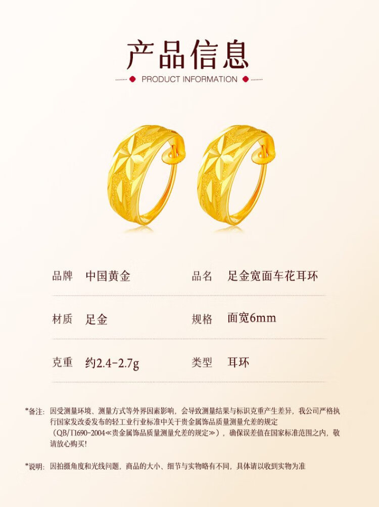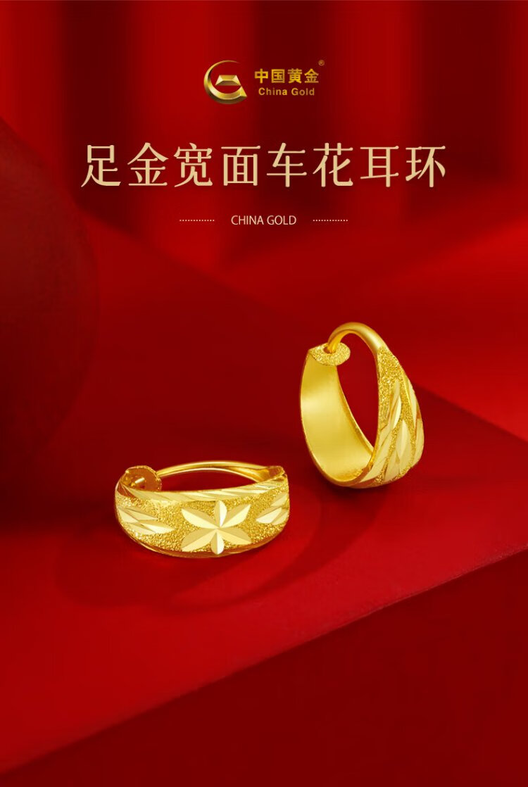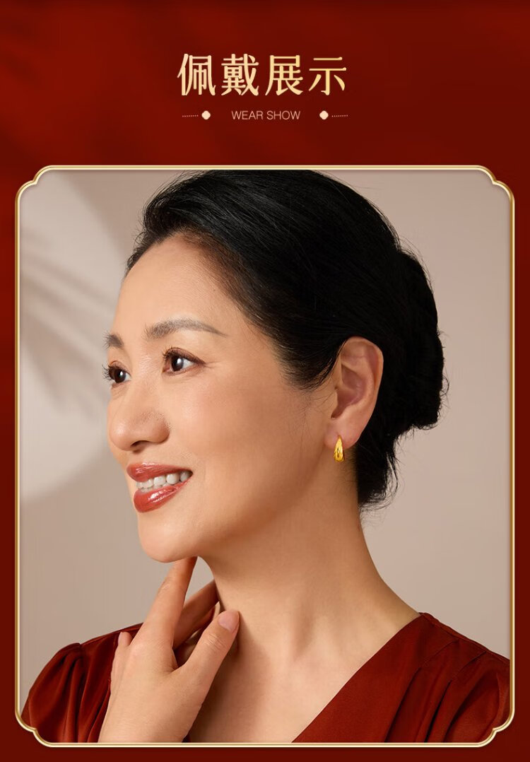 CHINA GOLD Gold Earrings Women's Pure Gold Earrings Earrings Mom's Mother's Day Gift for Mom Earrings Approximately 2.7g + Free Brand Gift Box