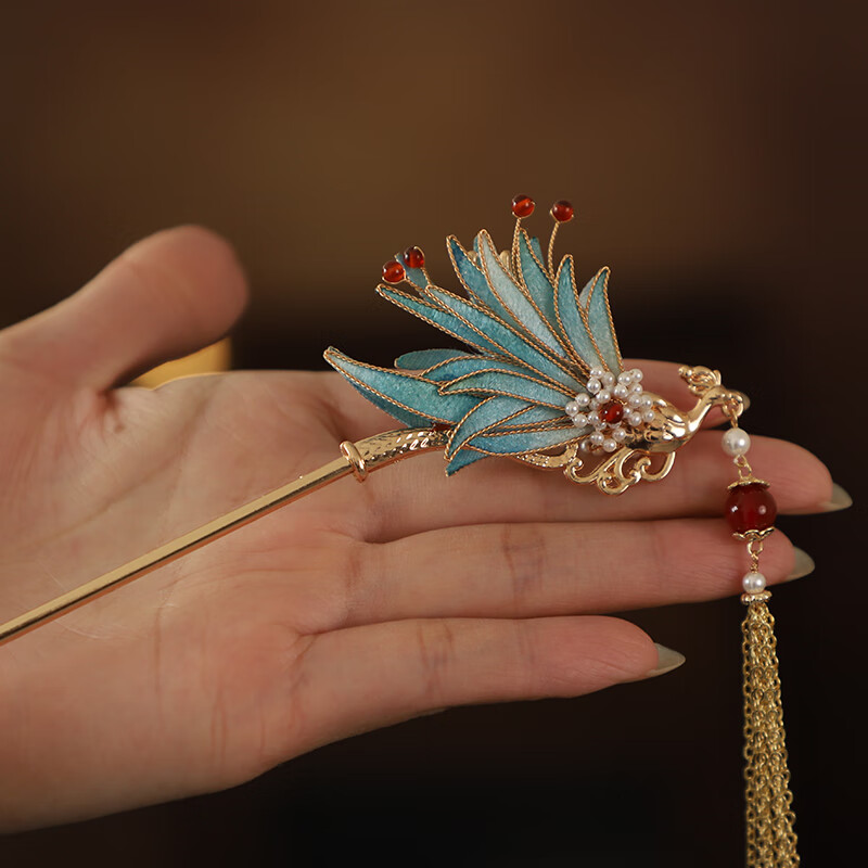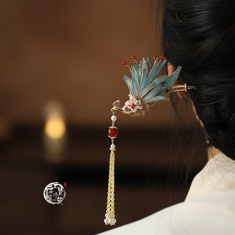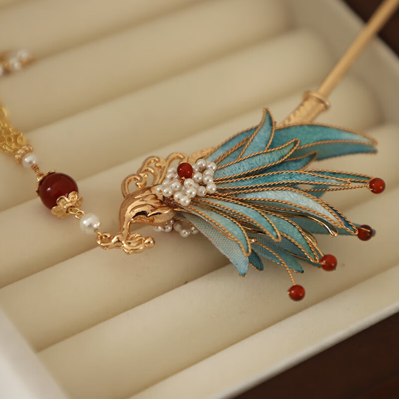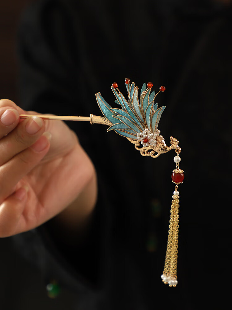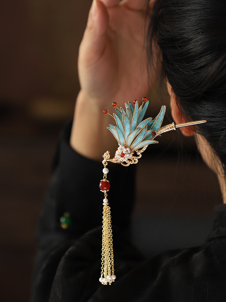 Shijun (SHIJUN) wedding golden phoenix hairpin, imitation velvet flower, ancient style filigree hairpin, new Chinese style cool Song Guanfeng hairpin dress cheongsam, the same reverse side can be used on the left and right