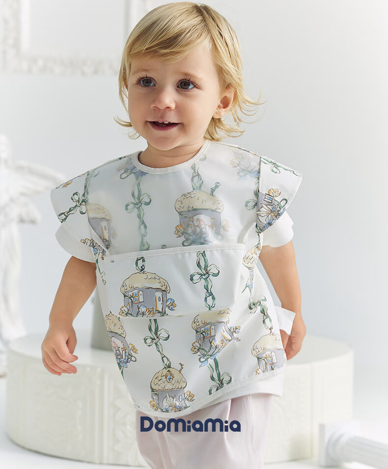 DOMIAMIA baby bibs, baby eating smocks, children's four-season waterproof rice pockets, oil-proof bibs, reverse dressing, Oshua Harbor 90
