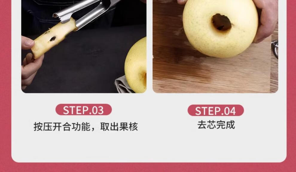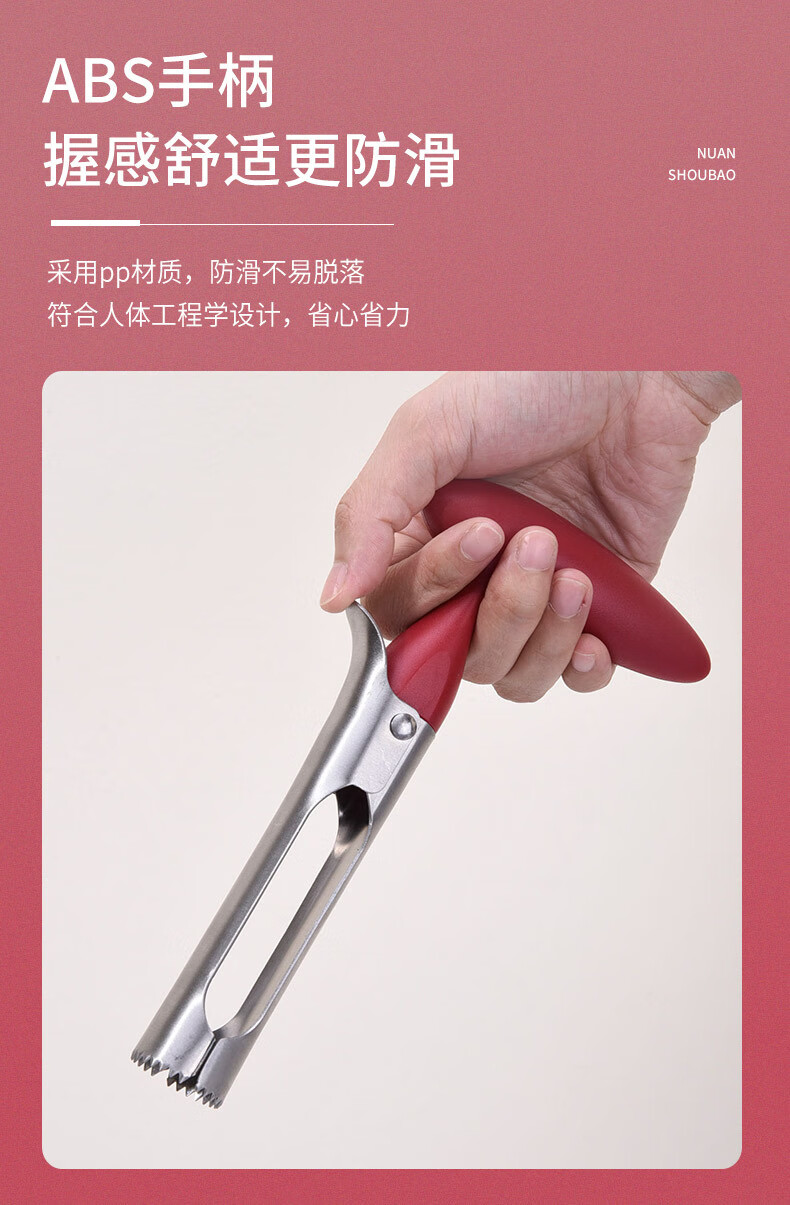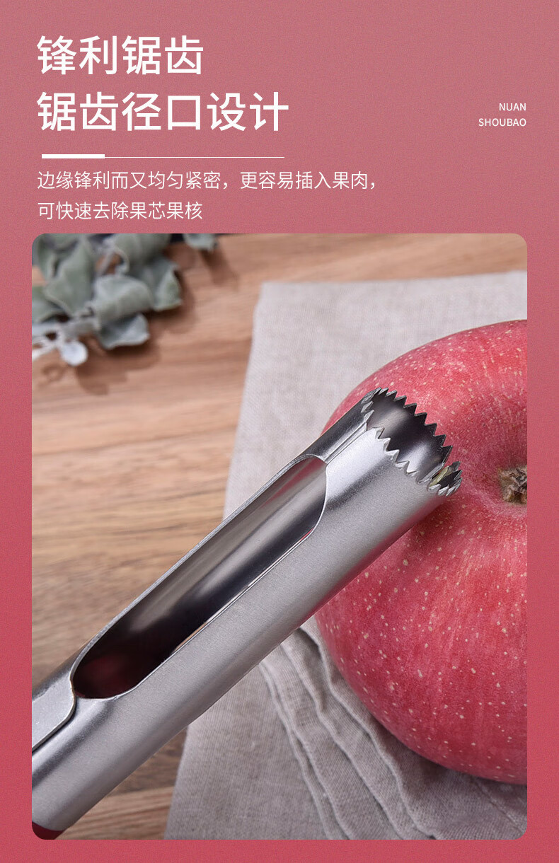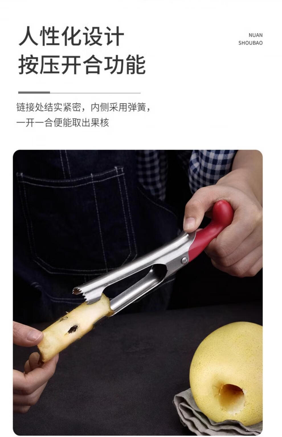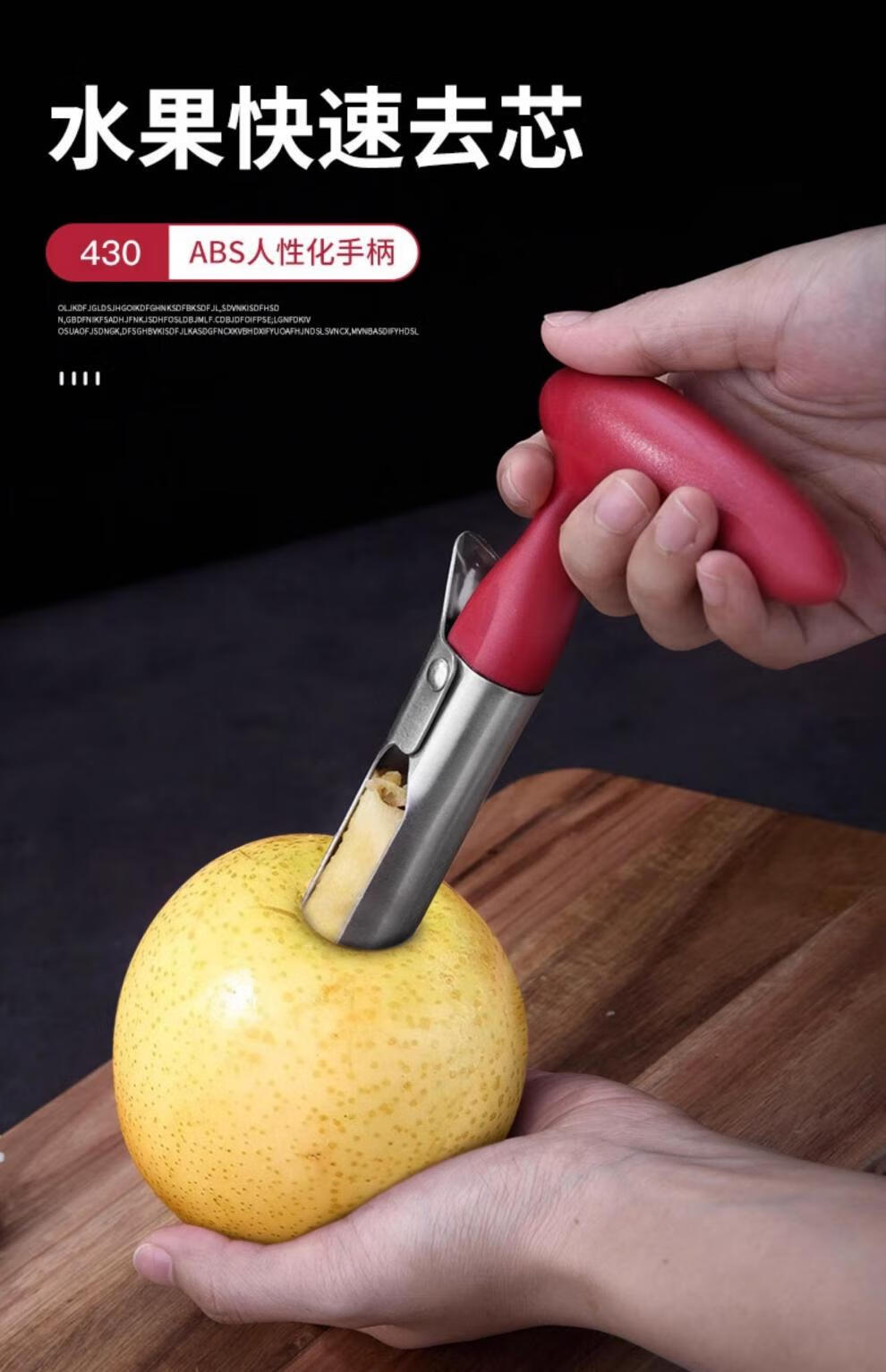Magic Bean Shenghuo Stainless Steel Apple Cutting Artifact Household Roasted Pear Digging Pear Core Fruit Pear Snow Pear Core Remover Stainless Steel Apple Core Remover Red