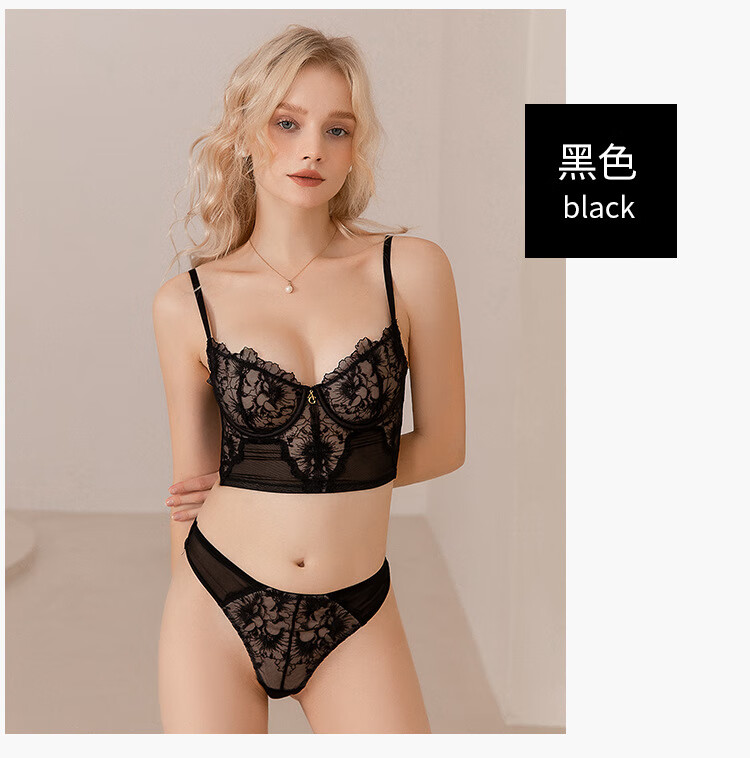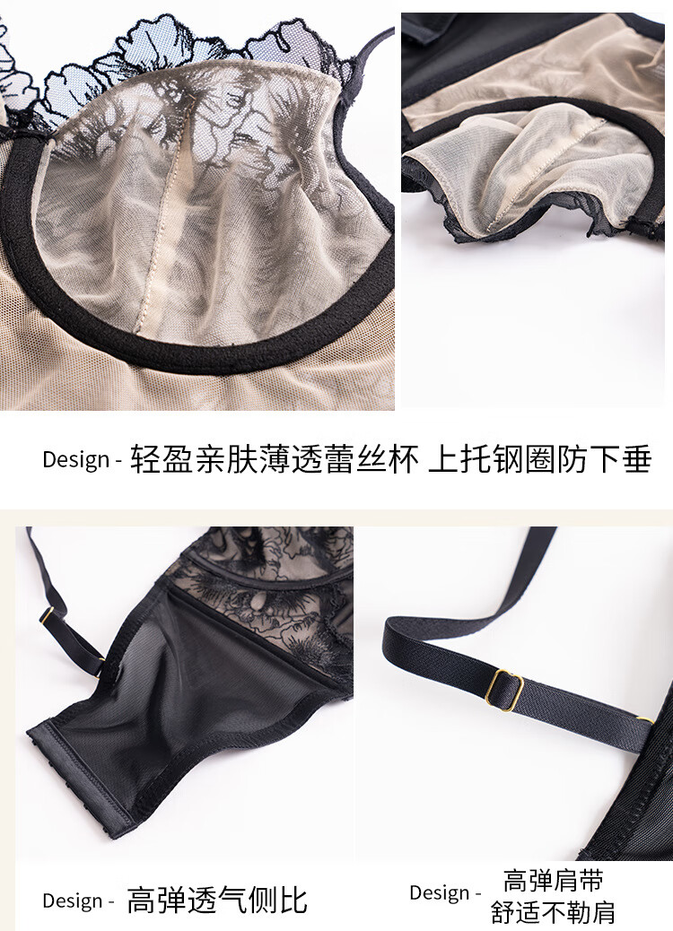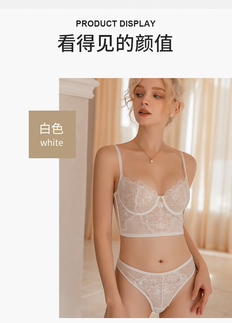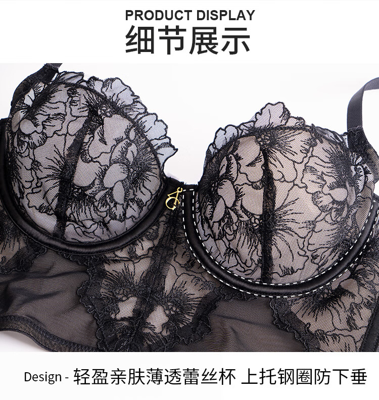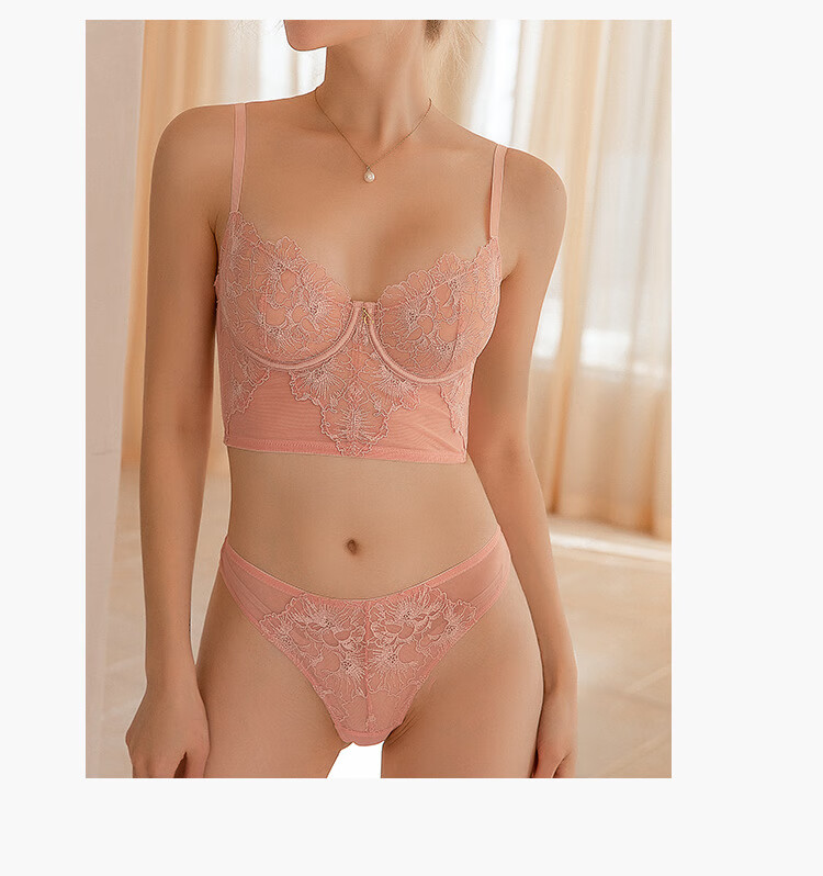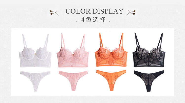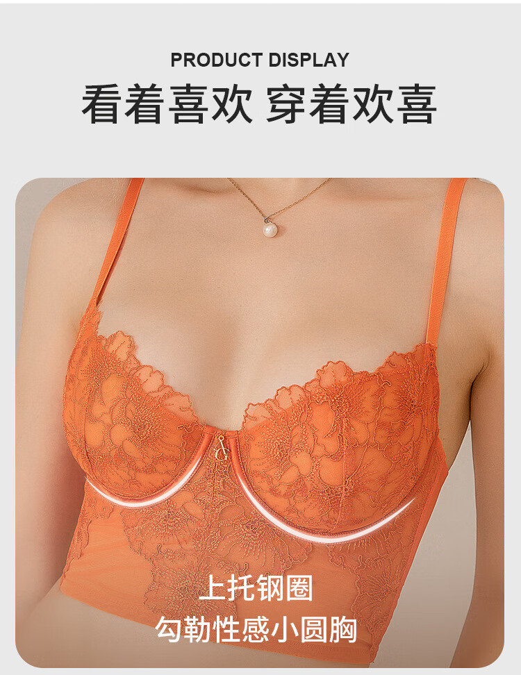 Victoria French sexy bra, lace ultra-thin bra set, anti-sagging, sponge-free bra, large breasts showing small underwear set, orange 70C/32