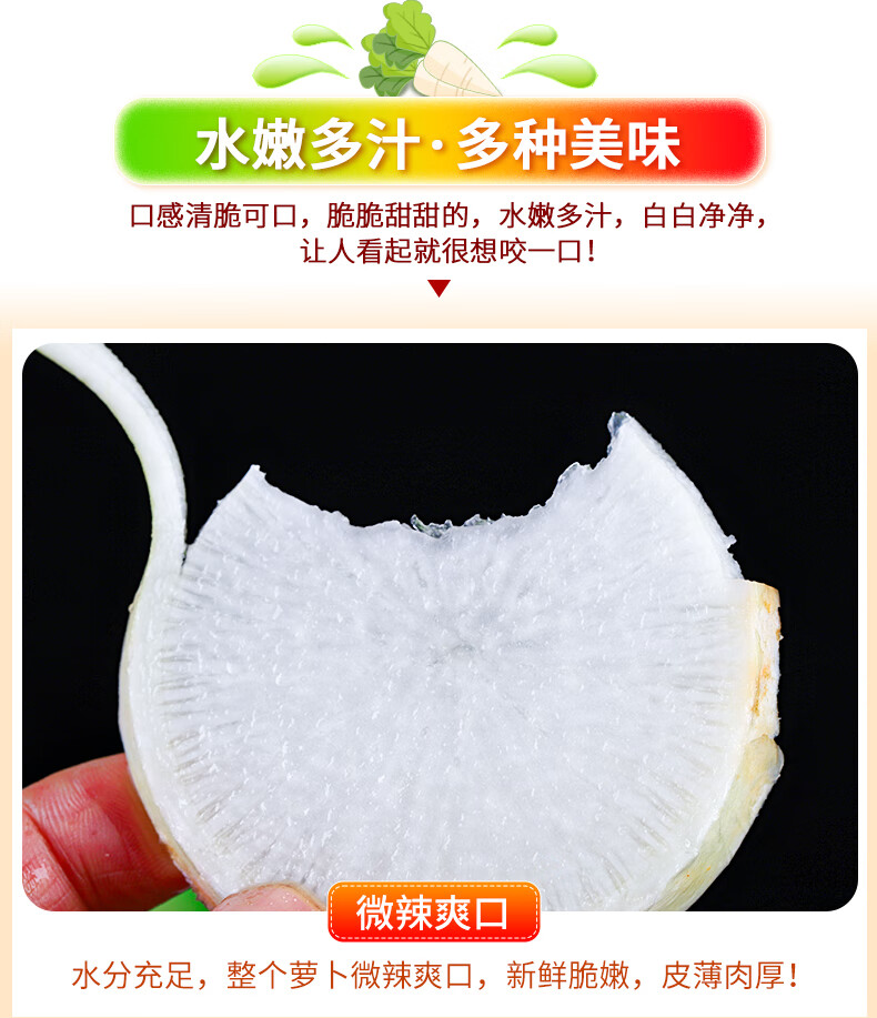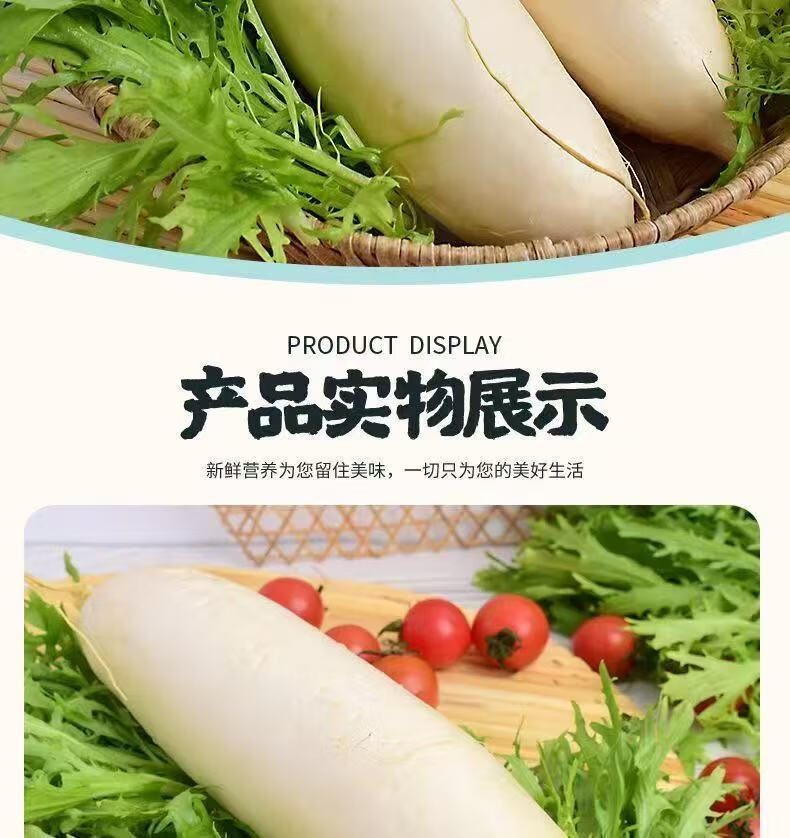 Crisp, sweet and refreshing fresh white radish, fruity radish, must-have pickled pickled vegetables for breakfast cold stir-fried hot pot. Fresh white radish 6Jin Jin equals 0.5kg. Selected boxes included.