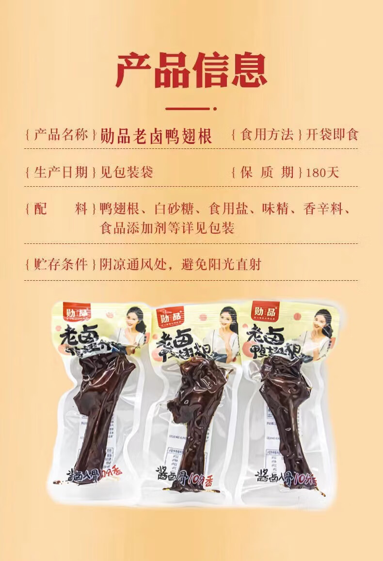 Xunpin Ya Braised Duck Wing Root 34g/pack, ready-to-eat duck products, supermarket snacks, must-have for TV dramas, 5 packs