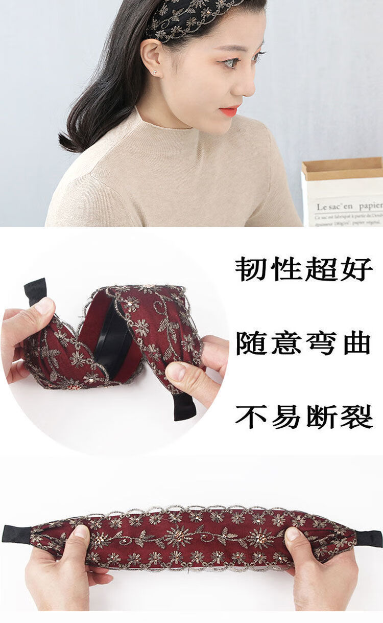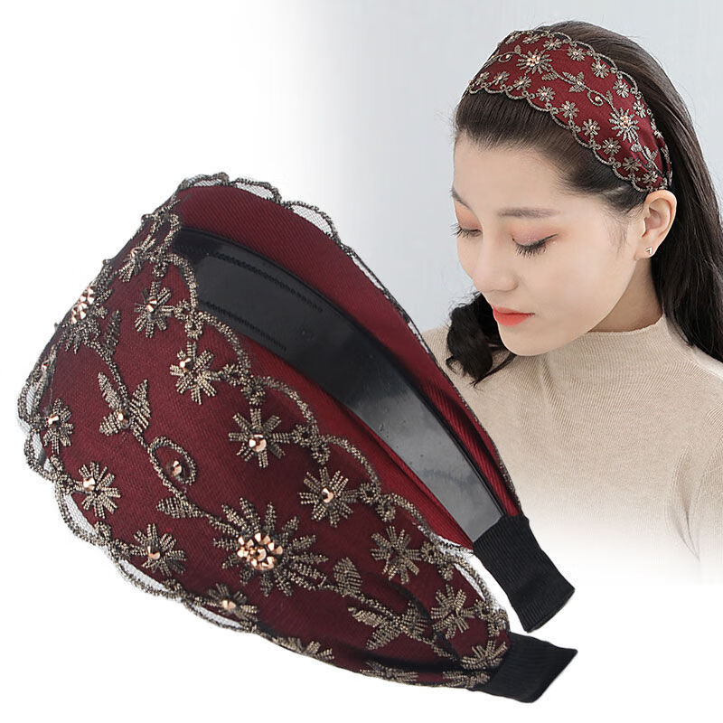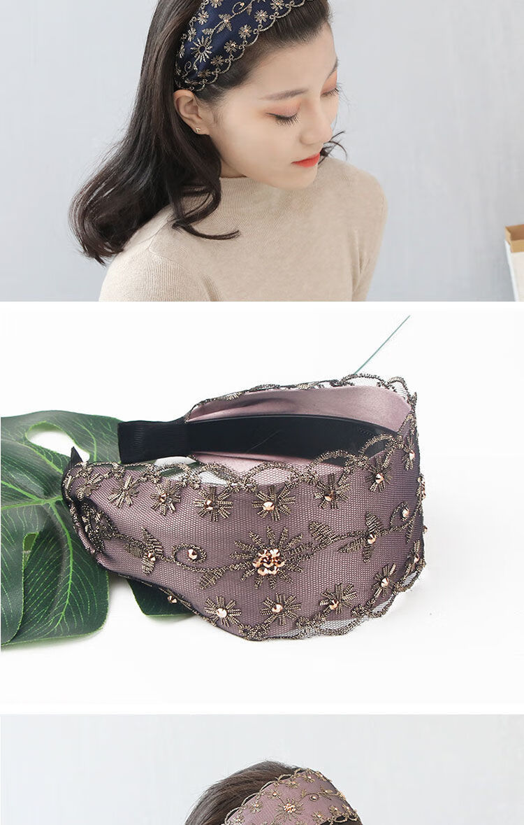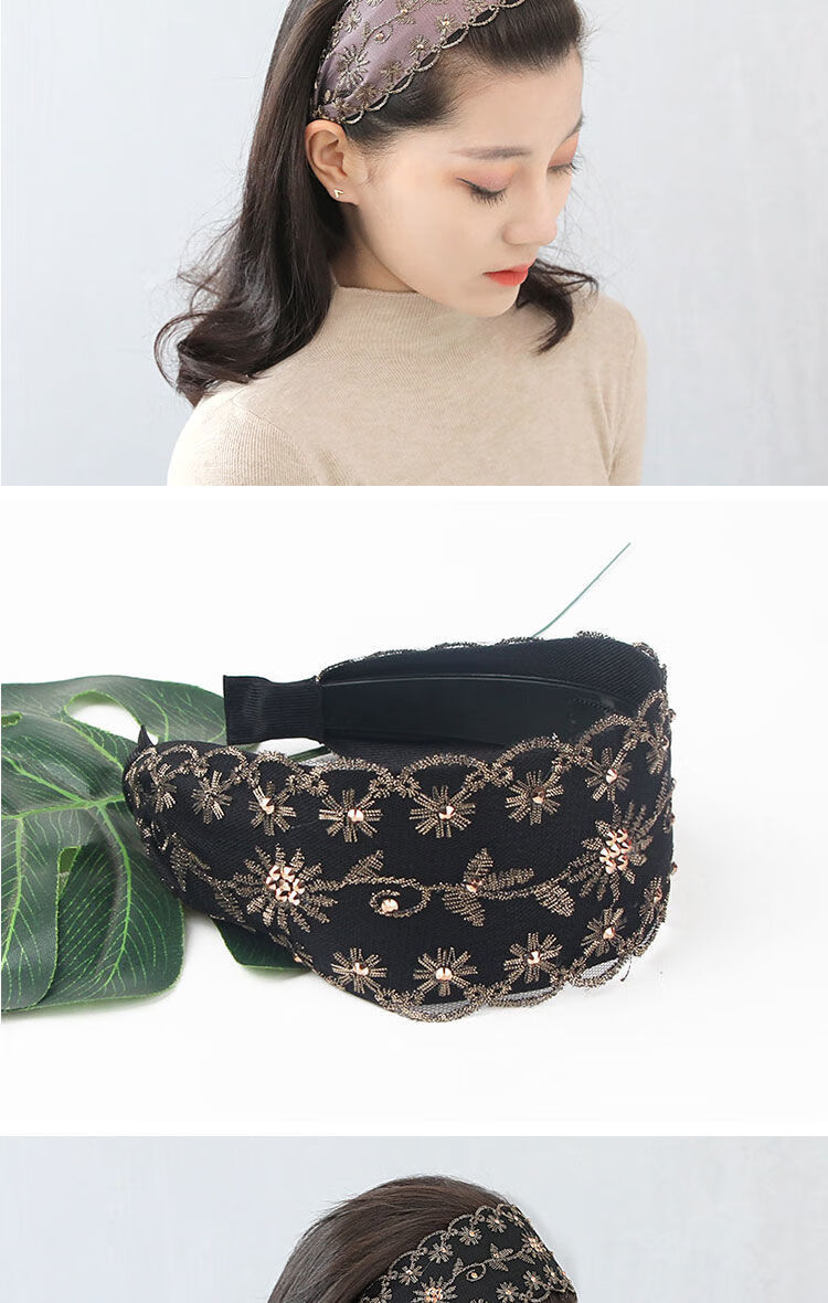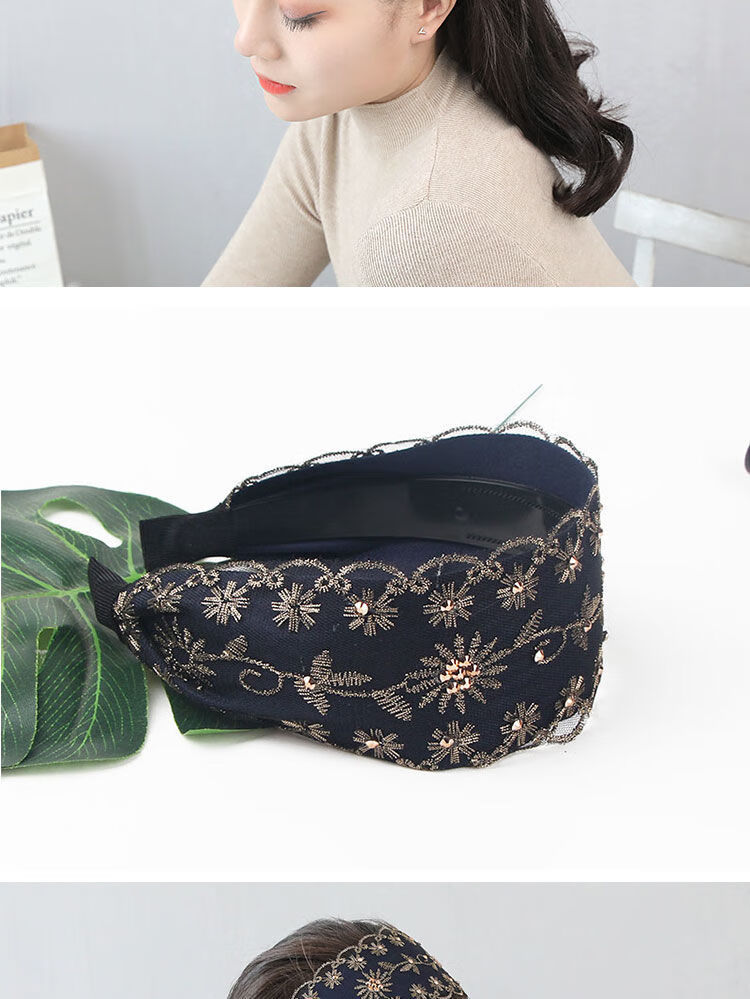 Containing spring flowers, wide edge to cover white hair headband, Western style embroidered rhinestone headband, Korean pressed hair band, feminine fashionable hairband, hairpin headgear, black