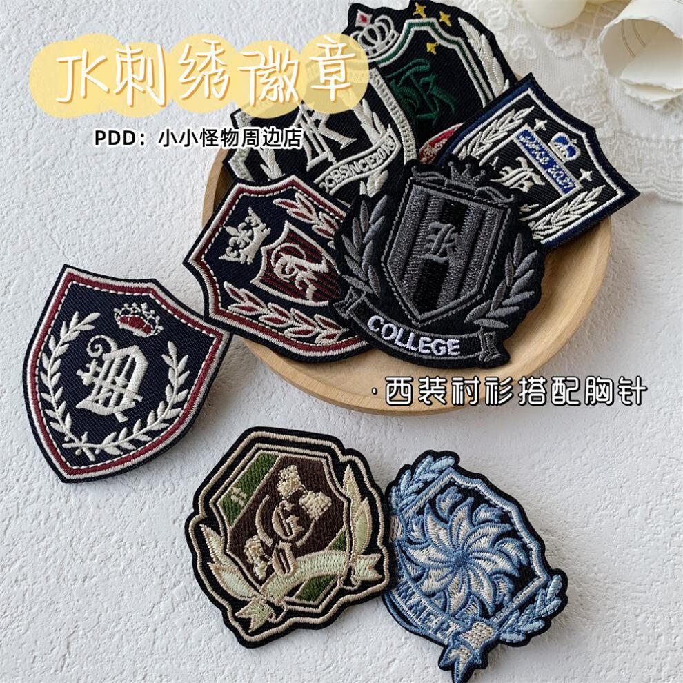 Contains spring flower embroidery badge, British style college brooch, Japanese and Korean JK uniform accessories badge, DK clothing coat hanging pin, 1 spare button JK embroidery