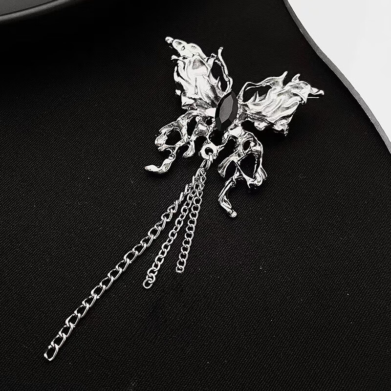 Containing spring flowers, cool and gothic style, vintage tassel liquid butterfly brooch in suit corsage pin accessories, long tassel liquid butterfly brooch
