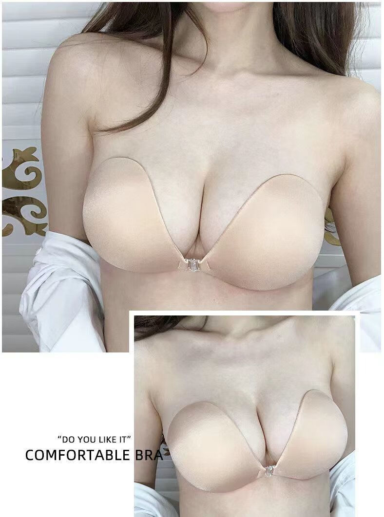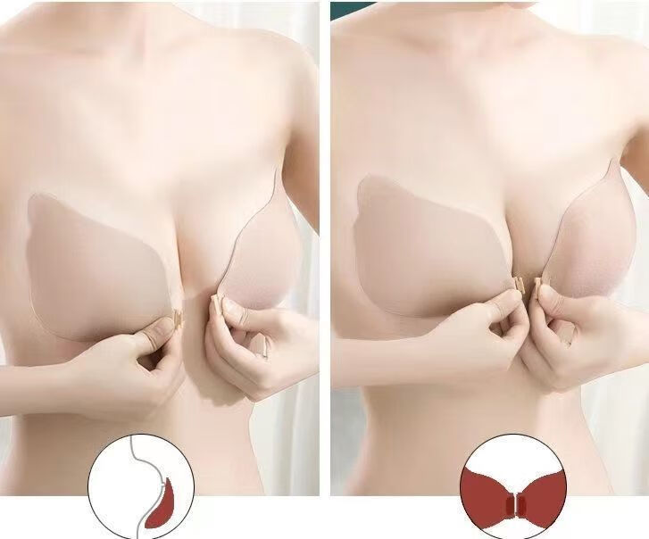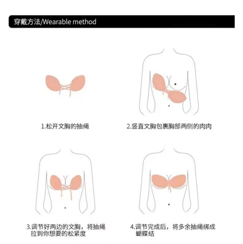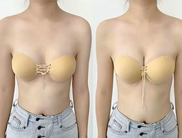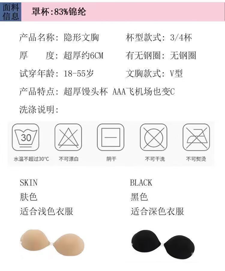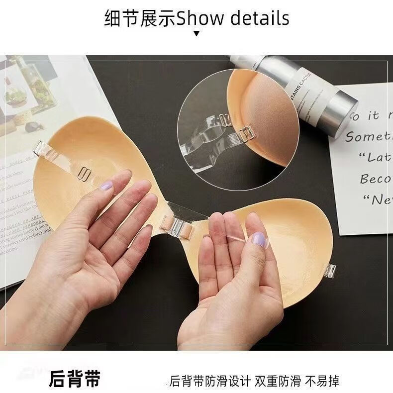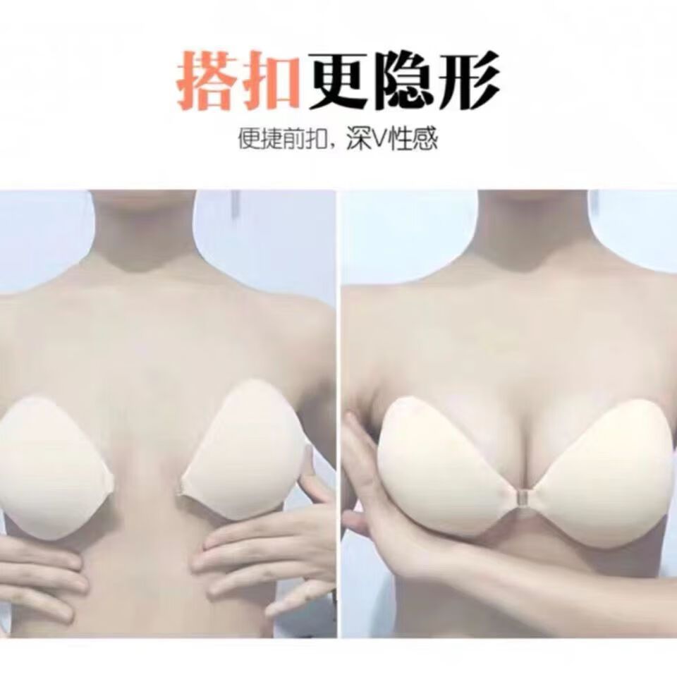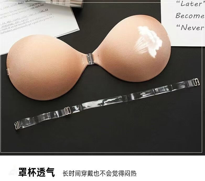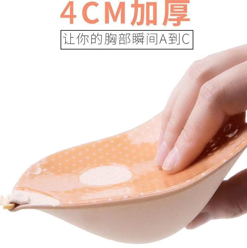 Mu Fengqing breast patch invisible underwear women's wedding dress washable silicone bra thickened small chest flat chest backless breast patch push up 6 cm special - thick - drawstring - skin color A