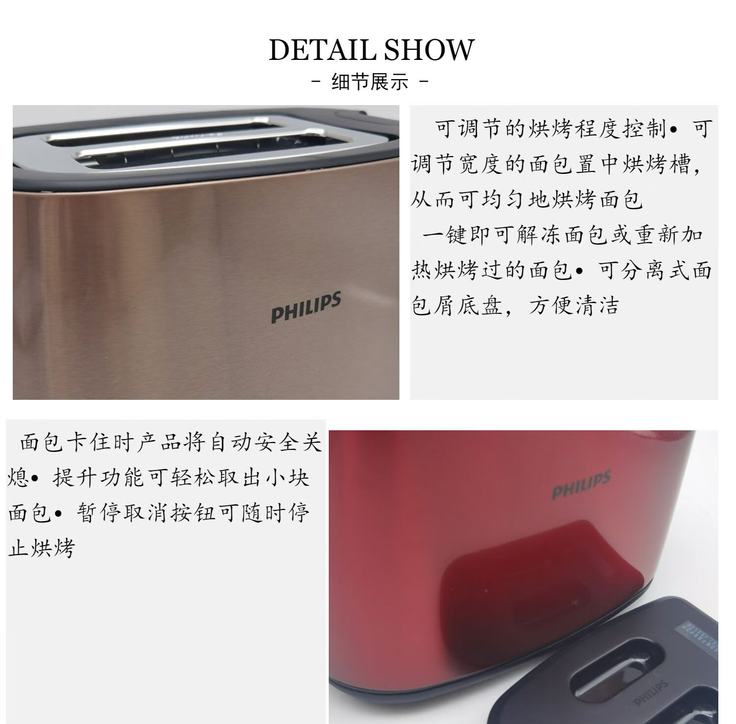 Philips (PHILIPS) bread machine HD2658 HD2628 home automatic toaster widened center baking slot HD2658-champagne color