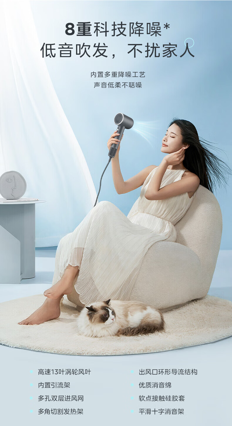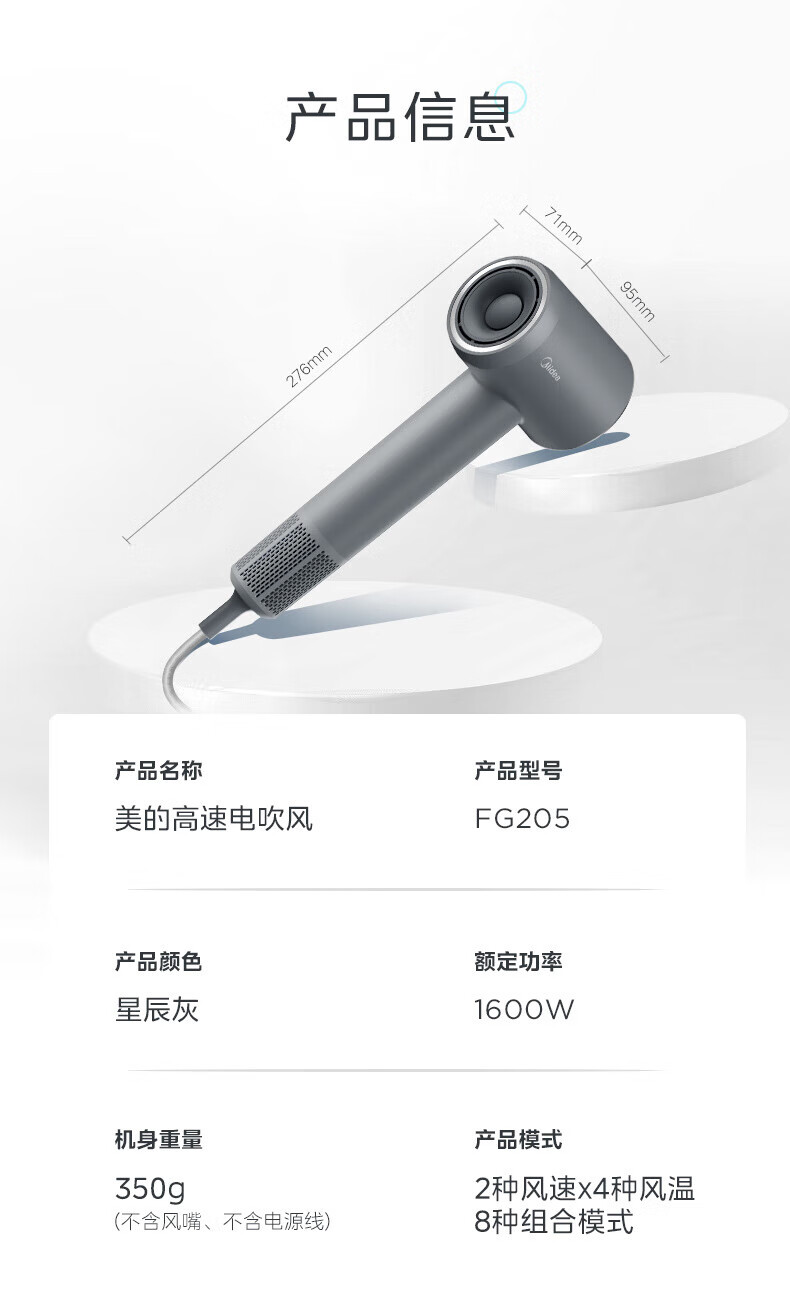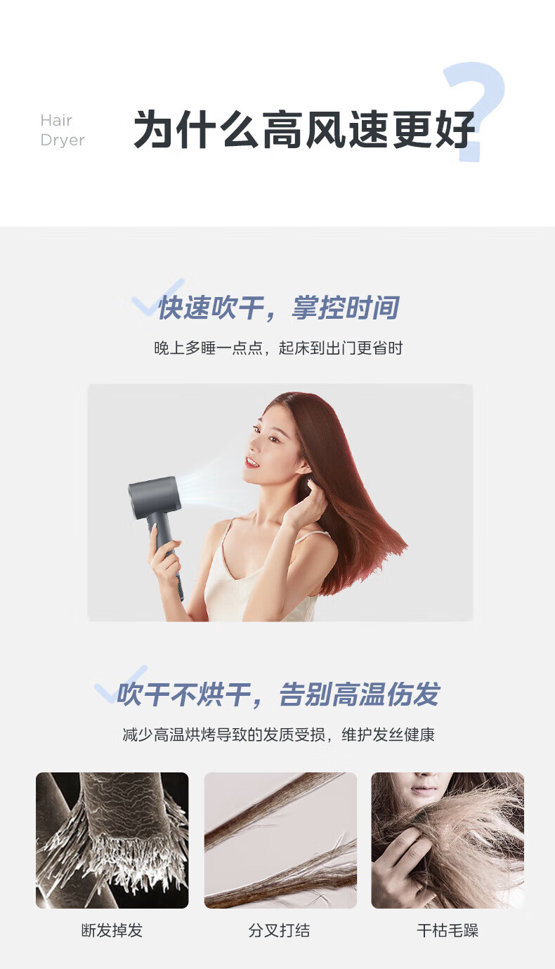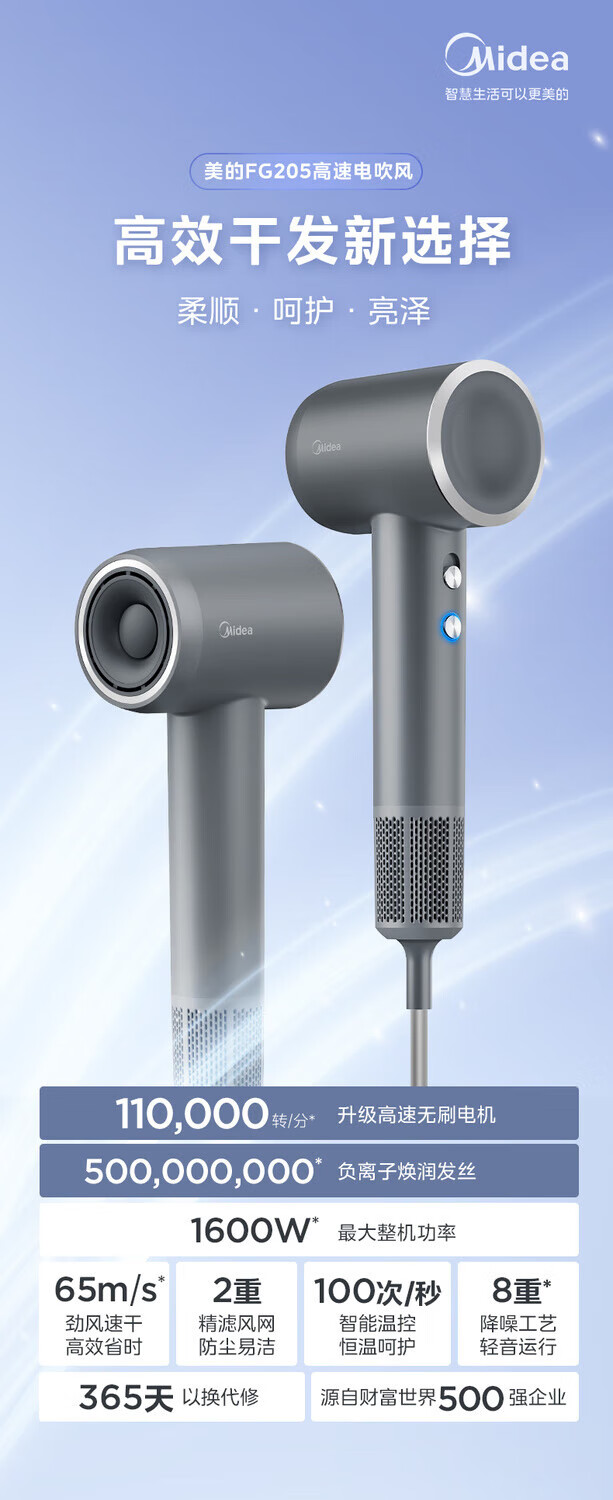 Midea hair dryer negative ion high-speed high-power hair dryer home quick-drying high wind constant temperature hair care blowing hair does not hurt the hair barber shop hair salon special hair dryer