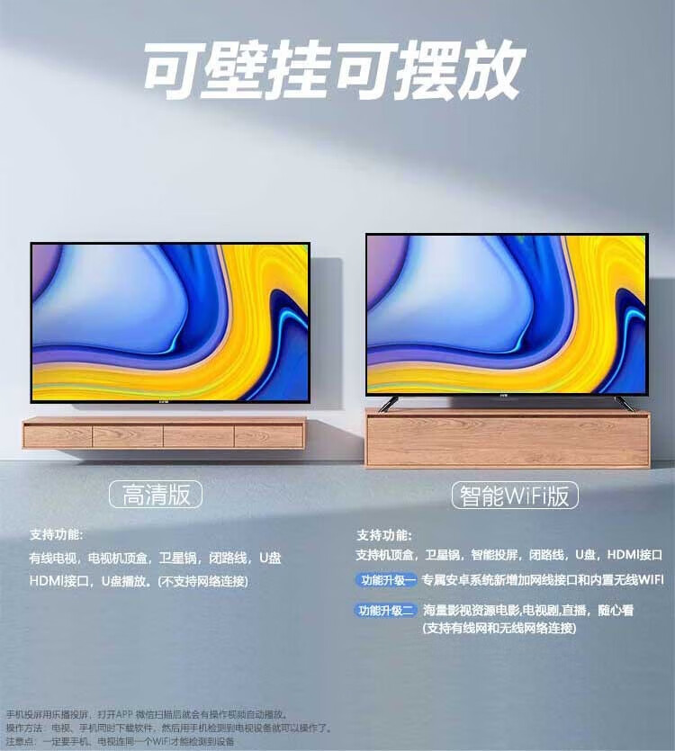 SHNIRP【补贴20%】全新款电视机4K超高清液晶可壁挂彩电智能语音护眼网络客厅出租房wifi投屏平板电视 LED55【平板电视版】宽98高58