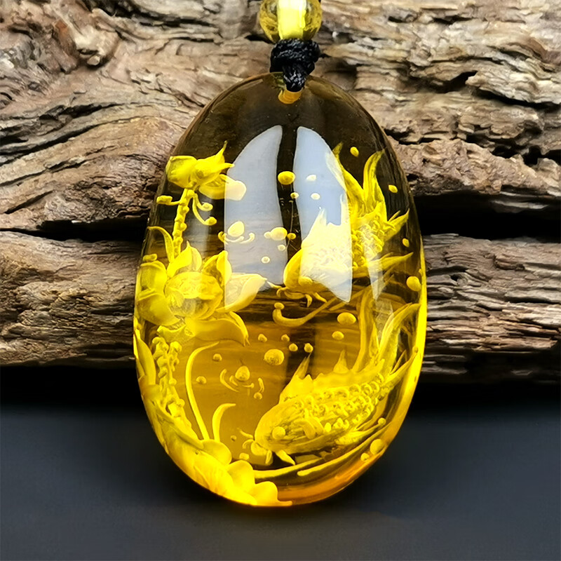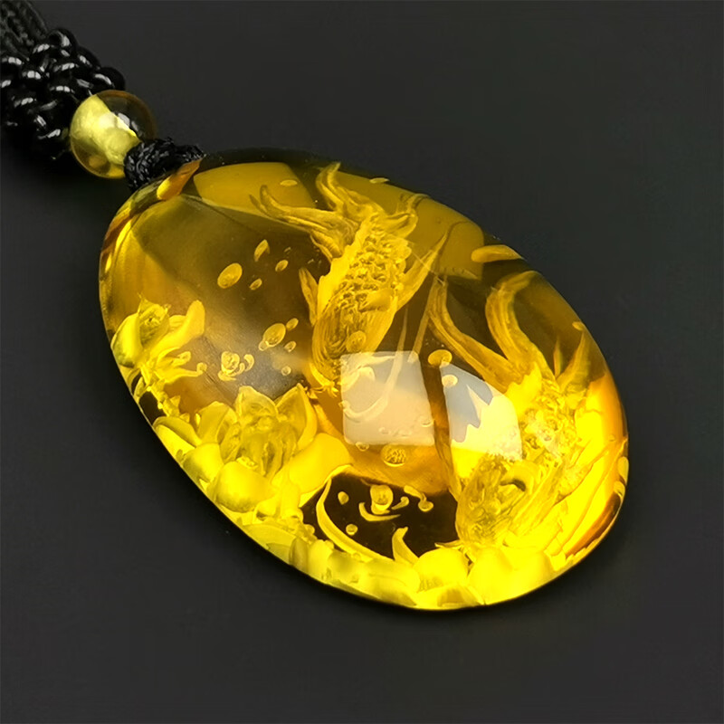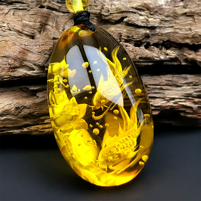 Amber School, one thing, one picture, one certificate, gold amber pendant, fish carving, natural amber necklace, water purification grade, more than enough every year, pendant, 5.9 grams, 35*23*12 mm