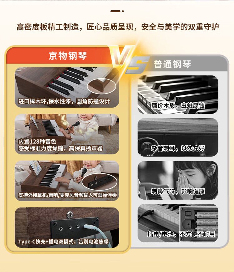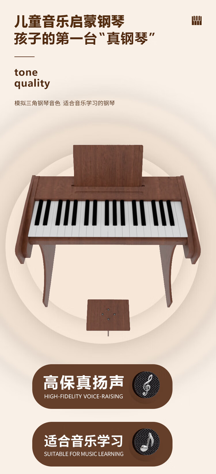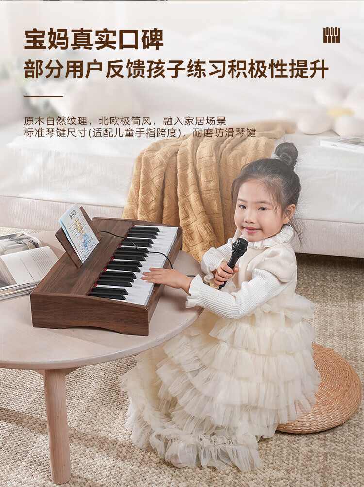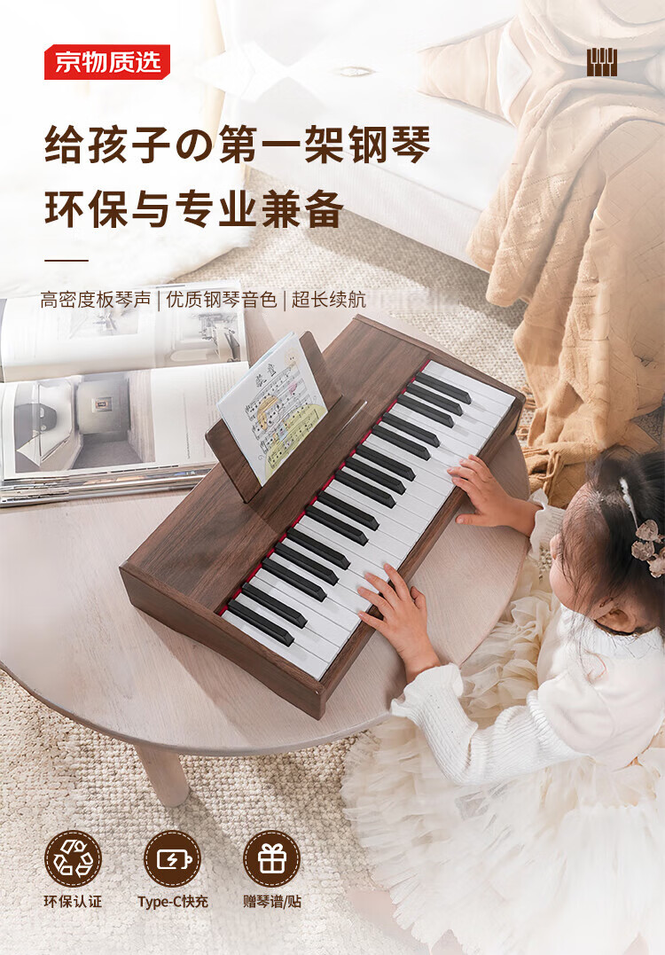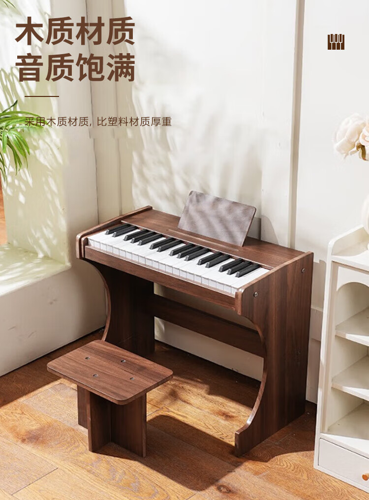 Kyomon Children's Piano Toys Wooden Electronics 1-3-6-10 Years Old Boys and Girls 4 Babies Infants Children Birthday Gifts 2 Top Matching 37 Keys + Stool + Microphone + Lepu + Piano Stickers Both roll quality and sound quality