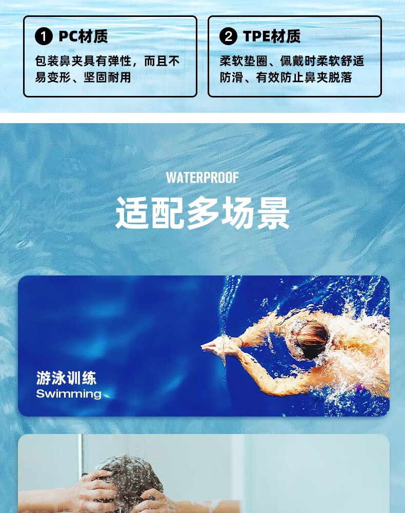 Silicone waterproof swimming earplugs for bathing, anti-choking, professional children's ears, nose clip set, nose clip earplugs (bag)