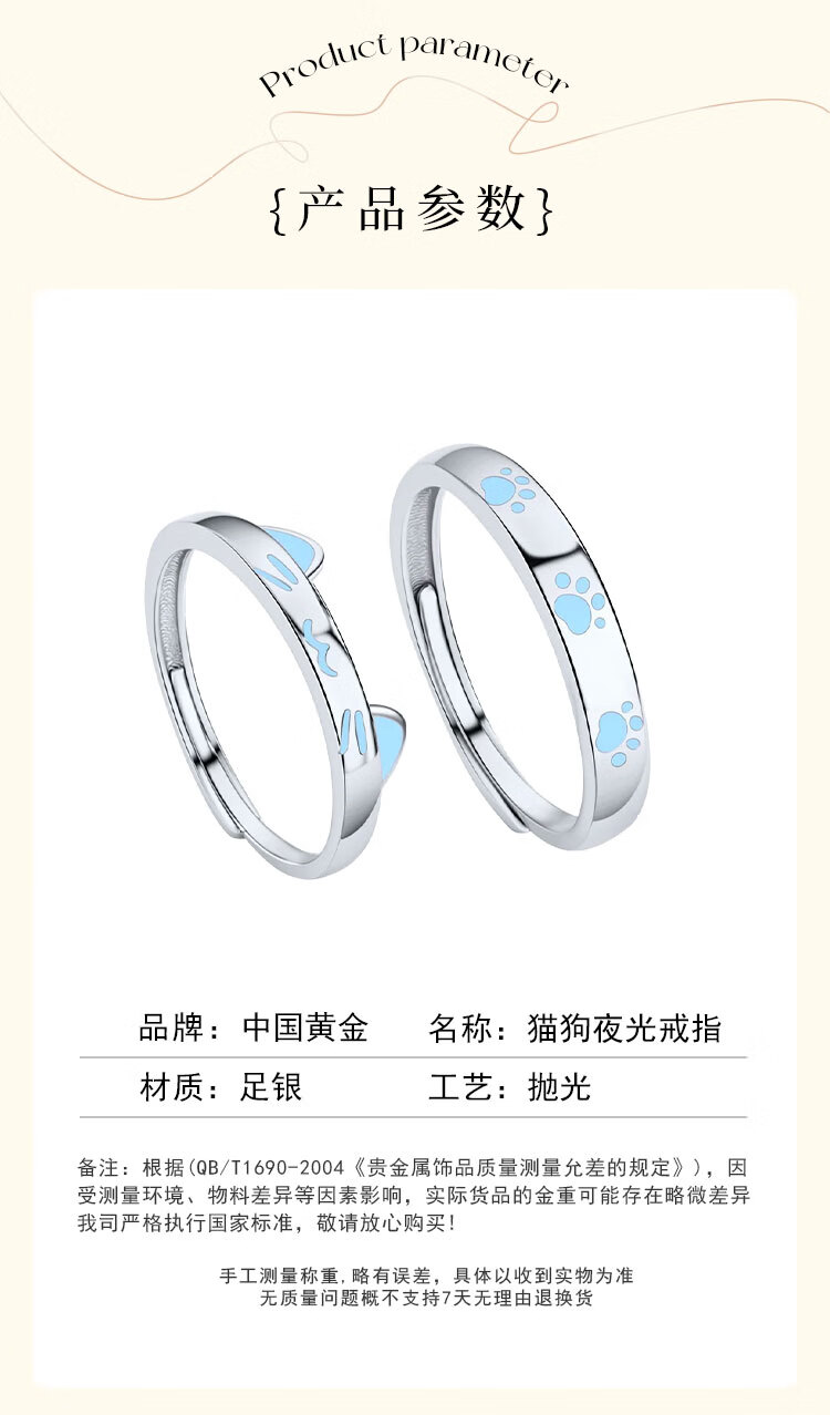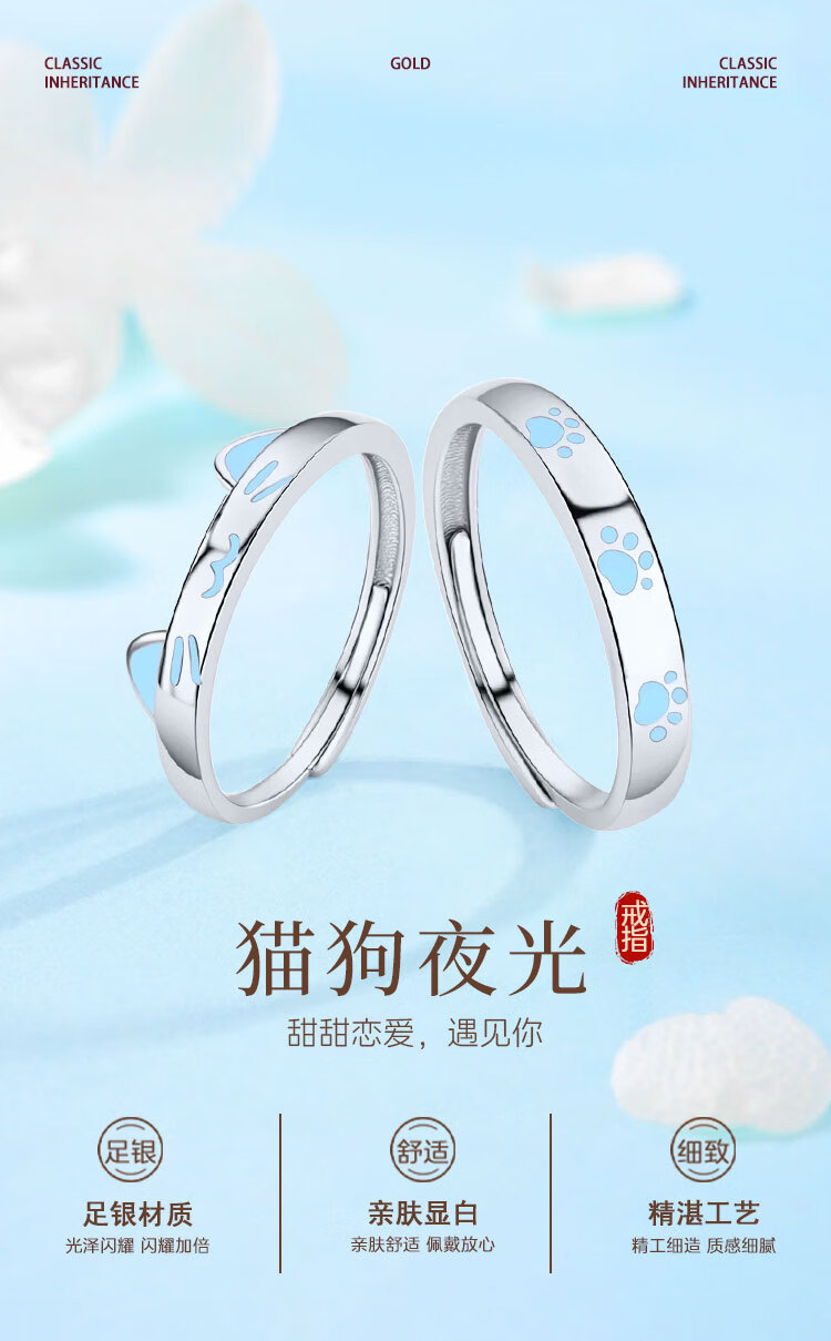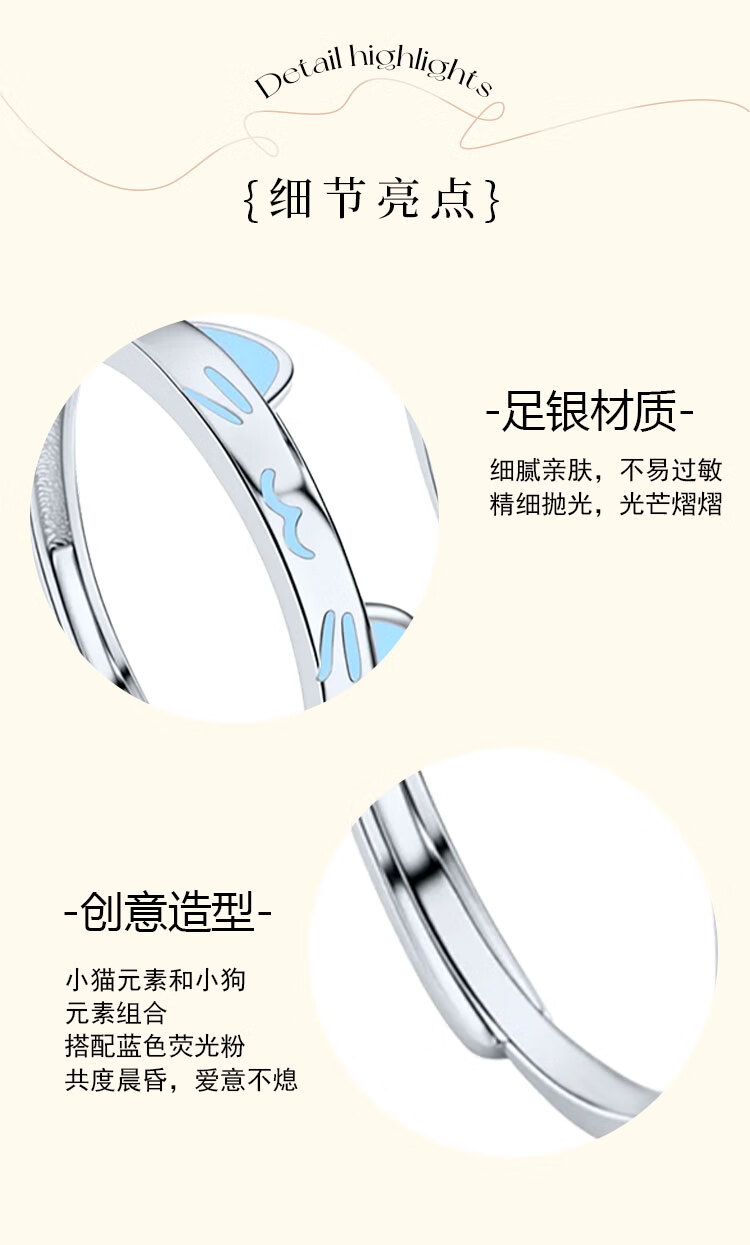 Chinese gold solid silver rings for men and women, cute luminous cat and dog couple rings, Valentine's Day birthday gifts for boyfriends and lovers, today/next day delivery, luminous cat and dog couple rings