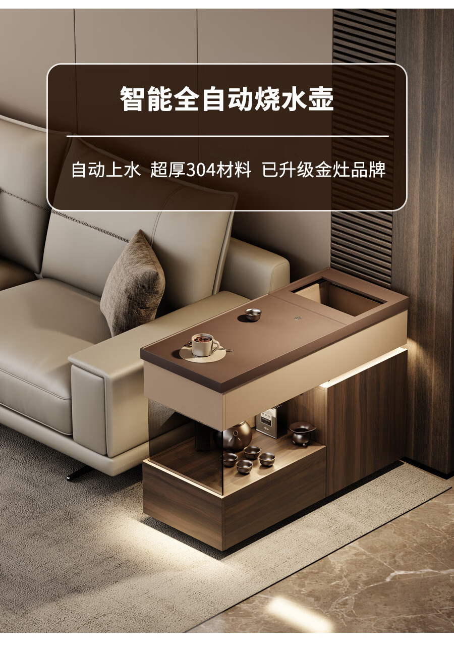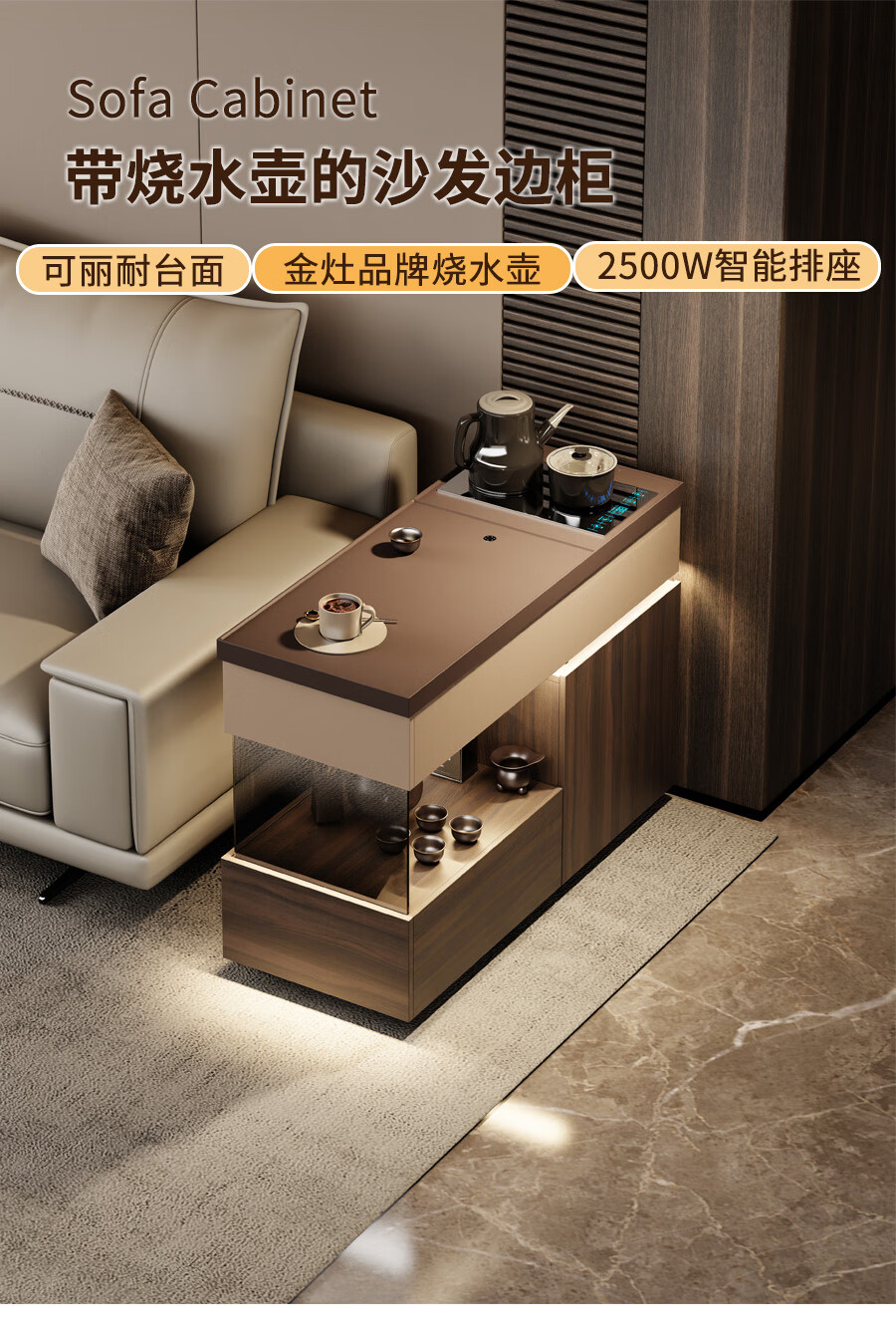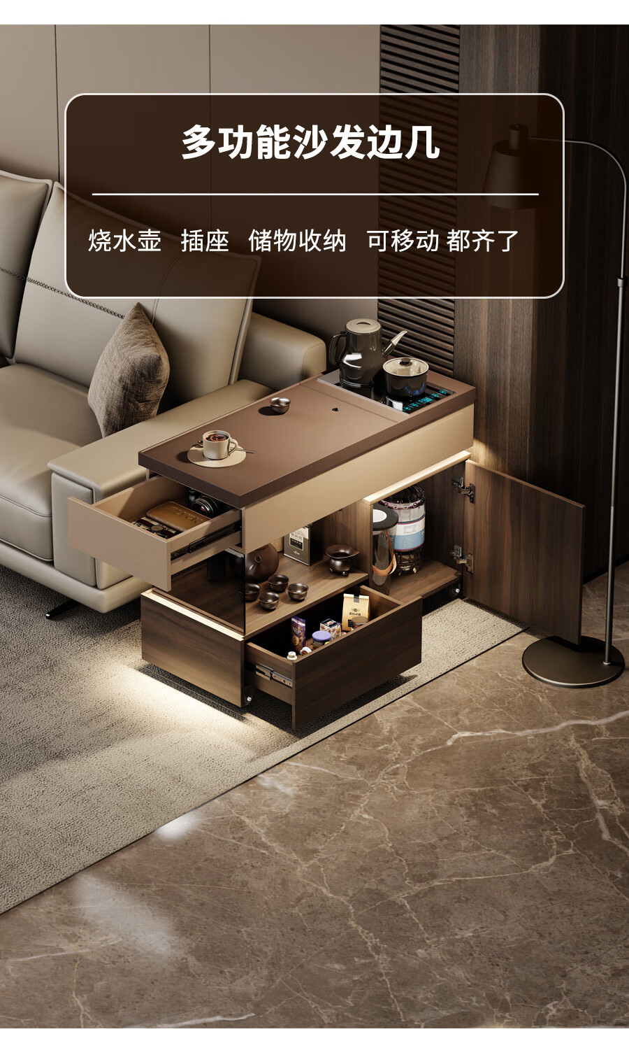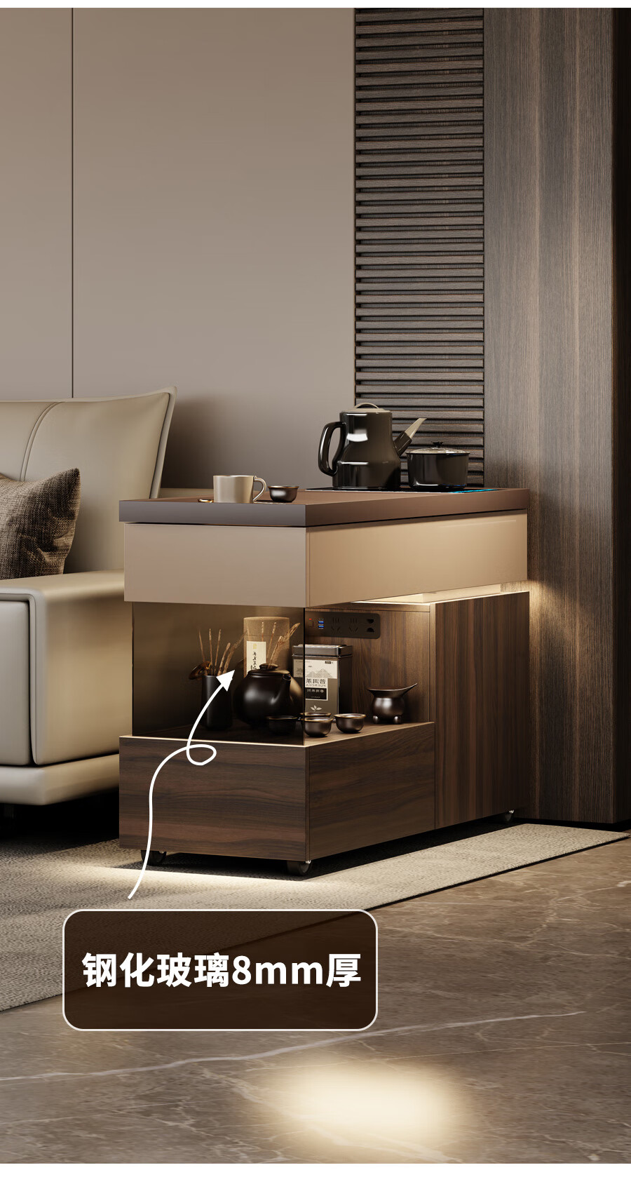 Huanzemao Sofa Side Cabinet Tea Bar Machine Boiler Integrated Italian Style Mobile Coffee Table Cabinet With Kettle Integrated Side Table Small Tea Table Mobile Side Table + Socket + Drain Bucket With Light Strip