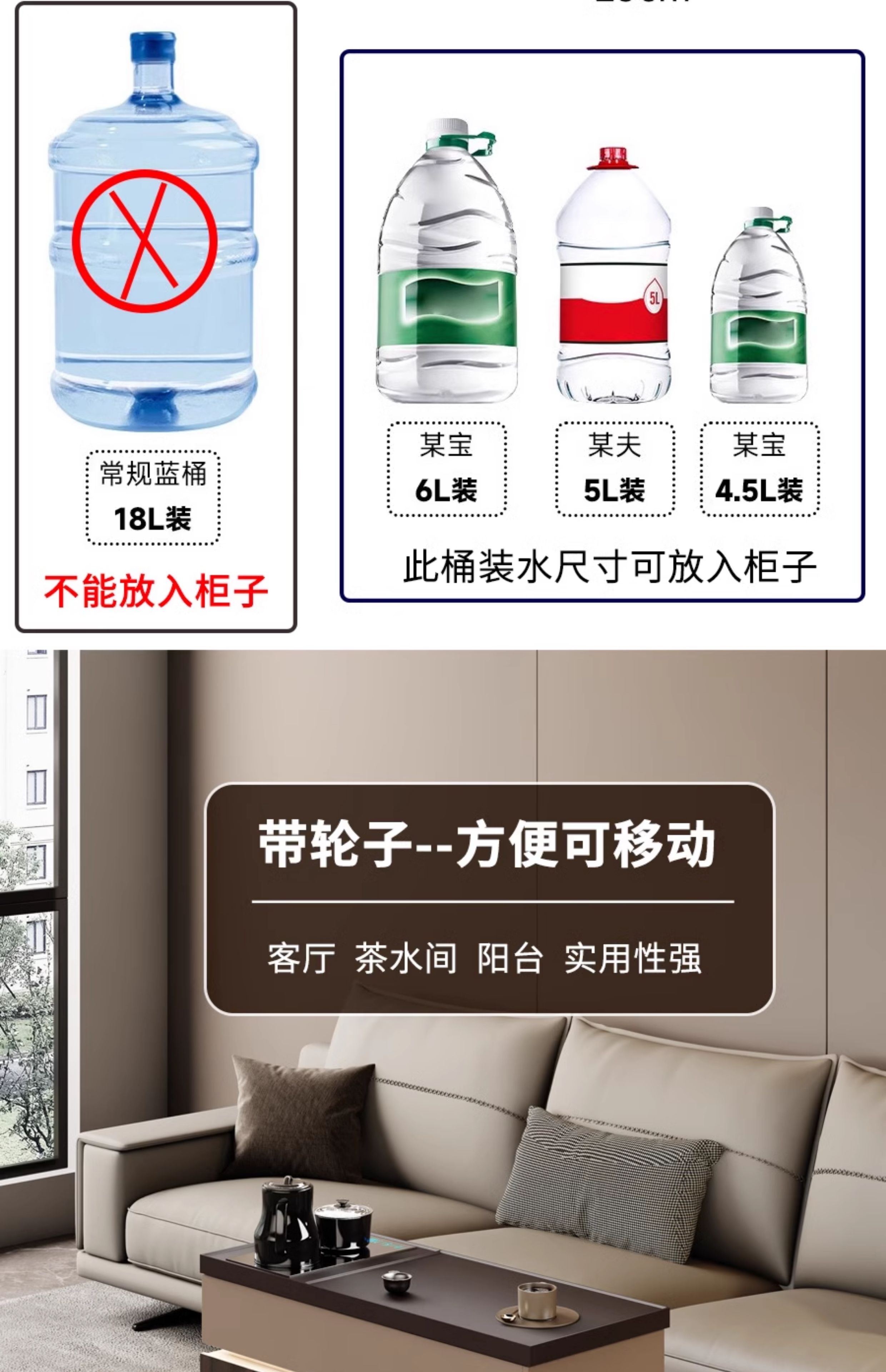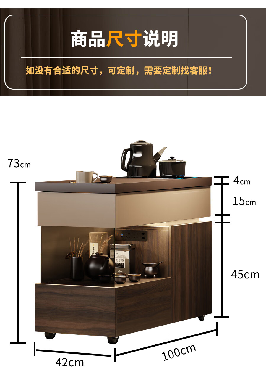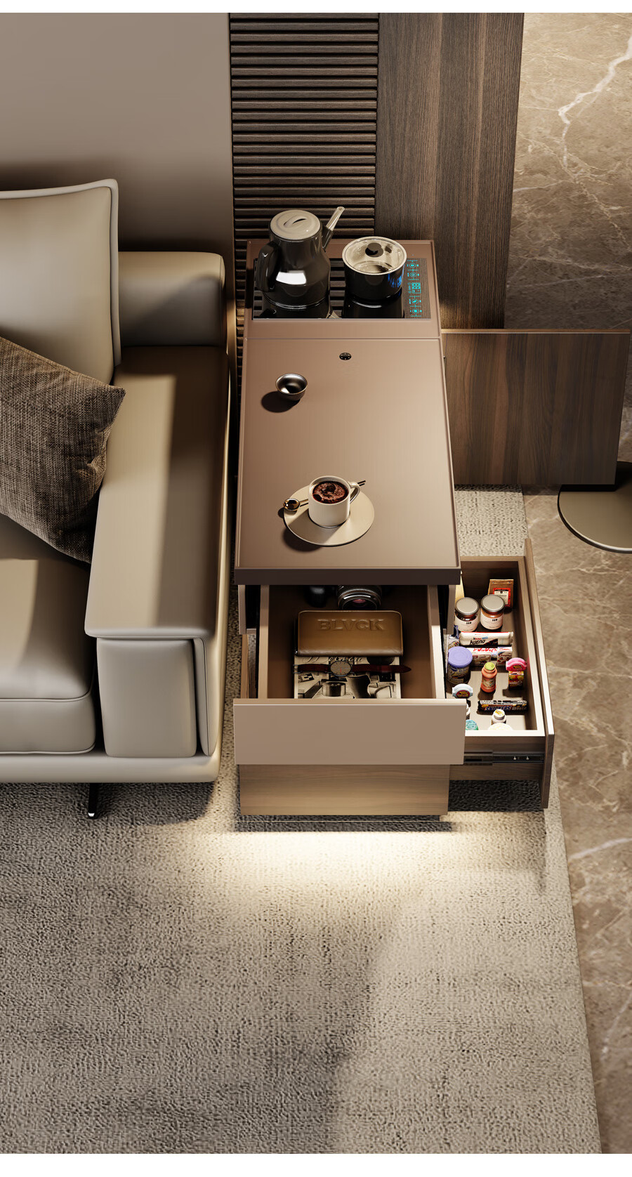 Huanzemao Sofa Side Cabinet Tea Bar Machine Boiler Integrated Italian Style Mobile Coffee Table Cabinet With Kettle Integrated Side Table Small Tea Table Mobile Side Table + Socket + Drain Bucket With Light Strip
