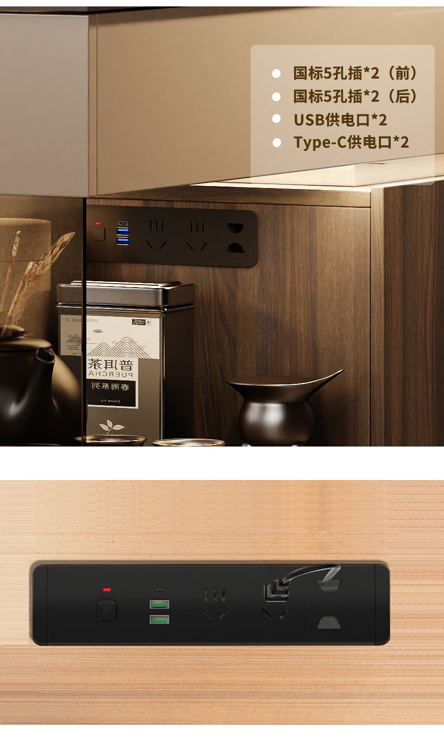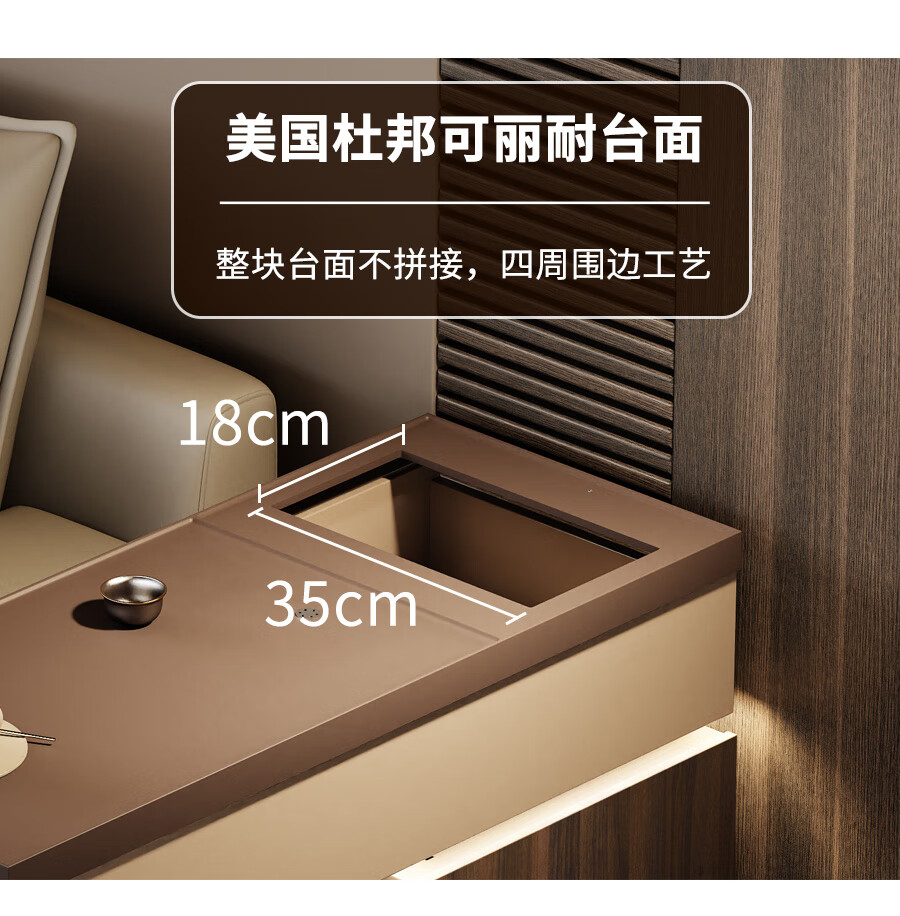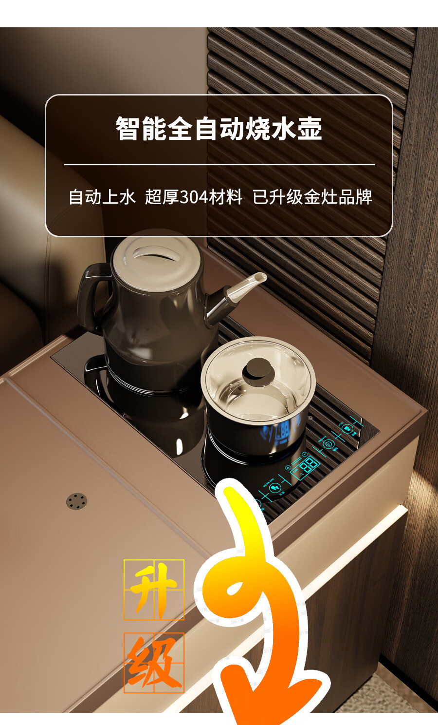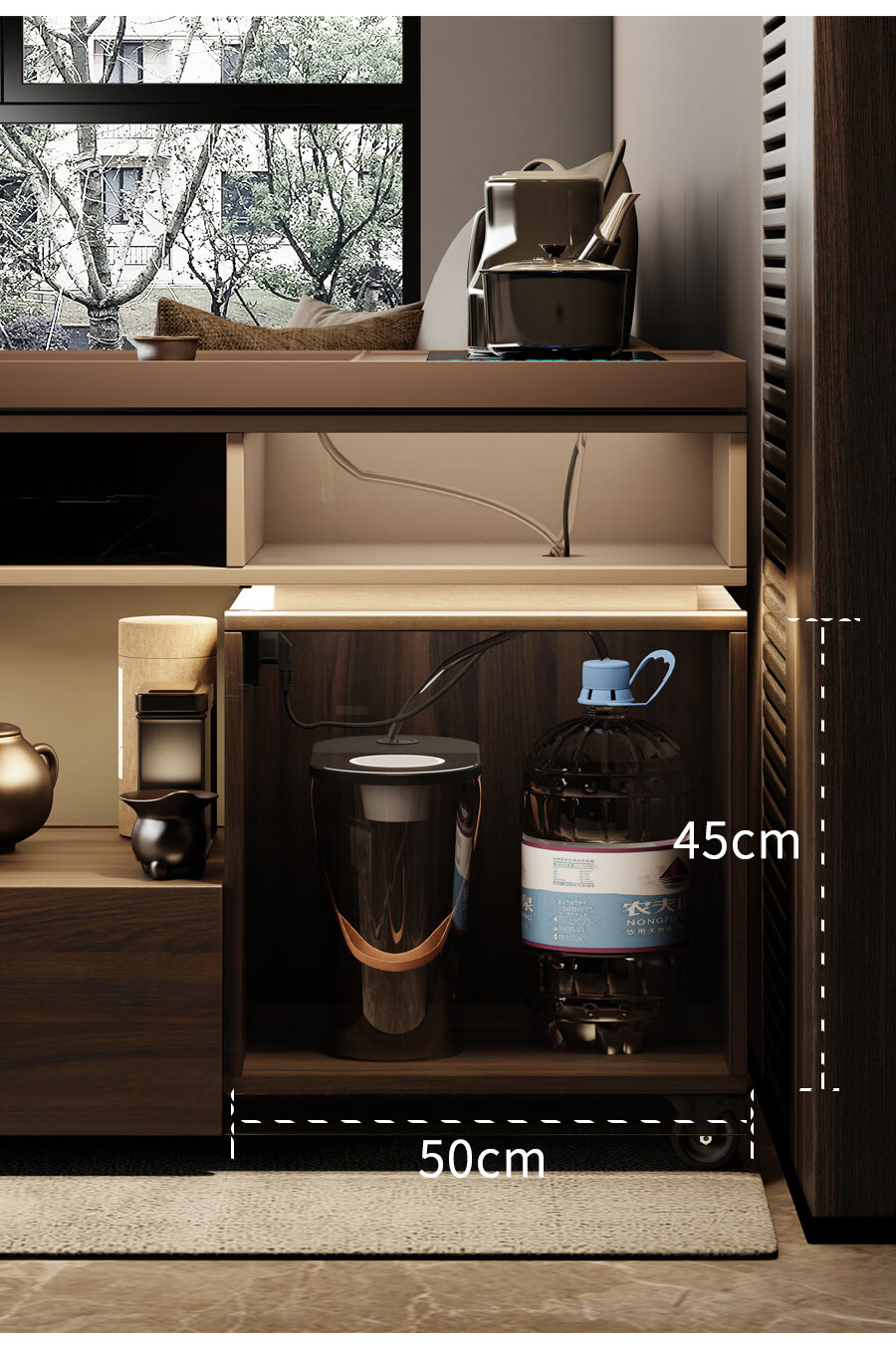 Huanzemao Sofa Side Cabinet Tea Bar Machine Boiler Integrated Italian Style Mobile Coffee Table Cabinet With Kettle Integrated Side Table Small Tea Table Mobile Side Table + Socket + Drain Bucket With Light Strip