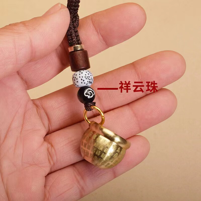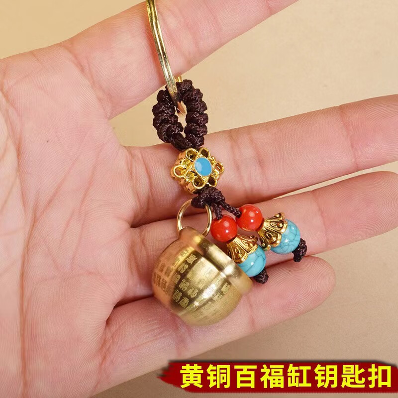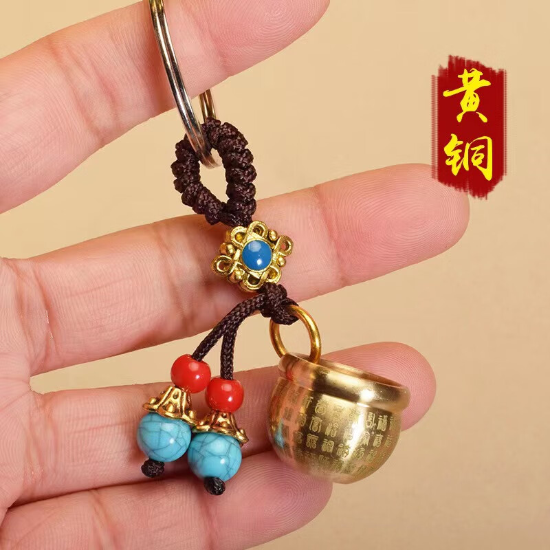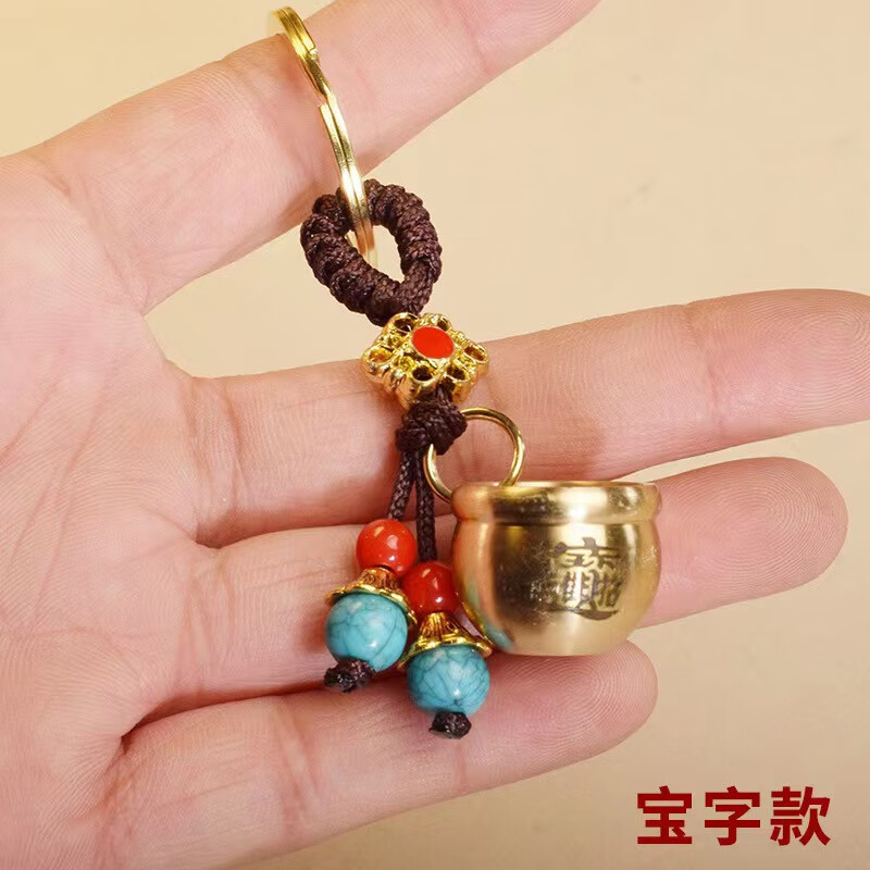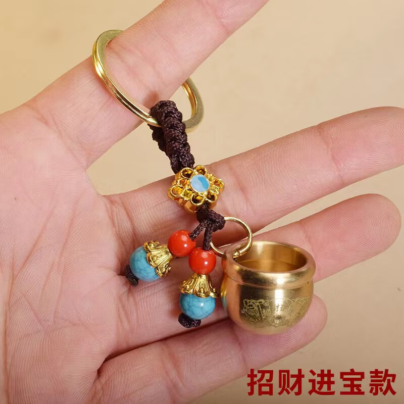 Baifu Jucai pure brass rice vat, copper vat, cornucopia keychain to attract wealth, pendant ornaments, gourd, brass Five Emperors Money + brass mini Baifu cylinder + brass upper opening gourd