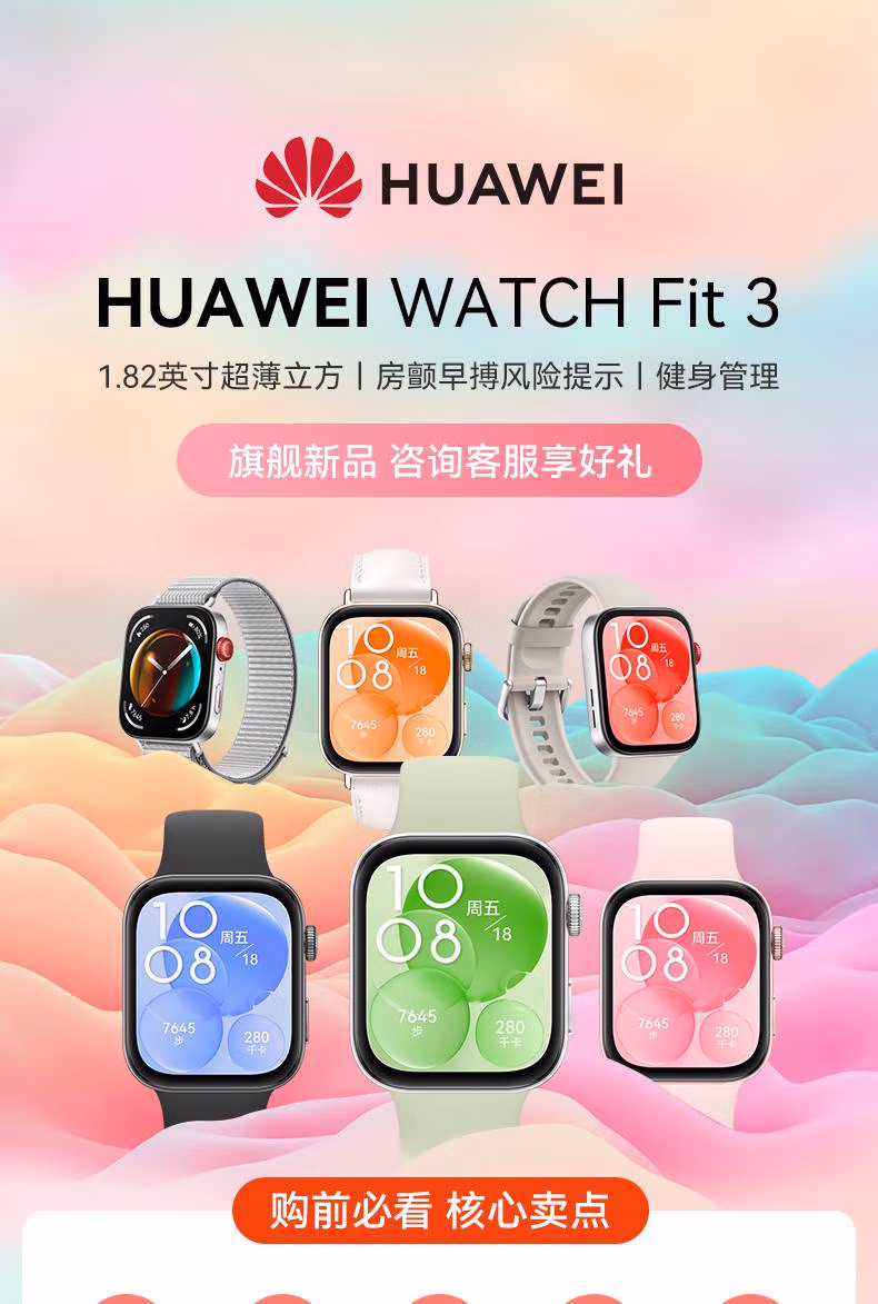 Huawei Valentine's Day Gift Huawei Watch WATCH FIT3 Smart Sports Bluetooth Call Long Battery Life Watch Monitoring Heart Rate NFC Bracelet Couple High-end Birthday Gift Goddess Customized FIT3 Purple and White Litchi Pattern H Buckle