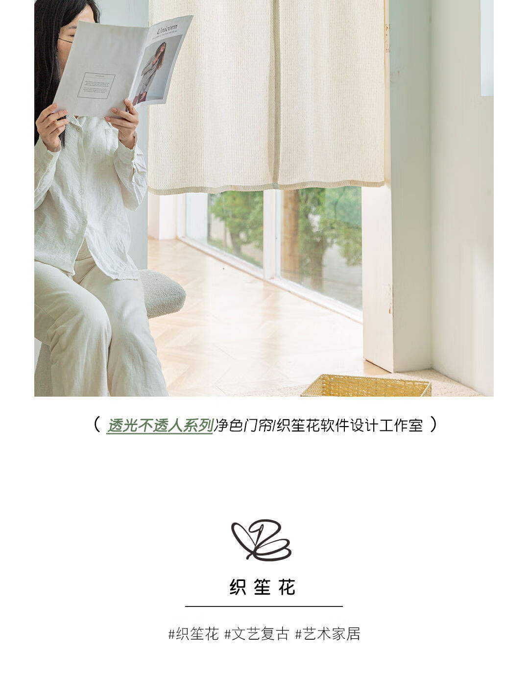 Oluoxun custom-made ZSH high-looking door curtain cotton and linen punch-free partition curtain kitchen half curtain curtain fabric Japanese door curtain sling processing-bifold type anti-lock without rod, width 85*height 120cm (suitable for door width 65-80)
