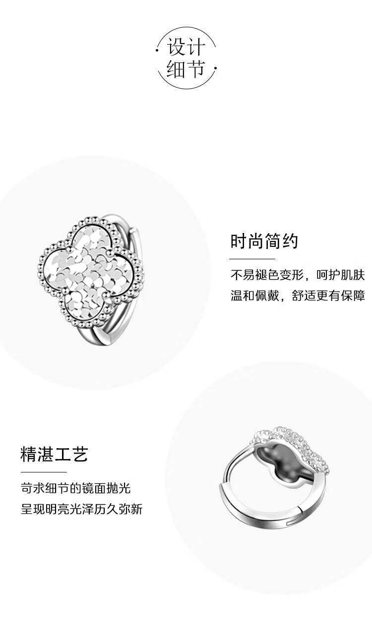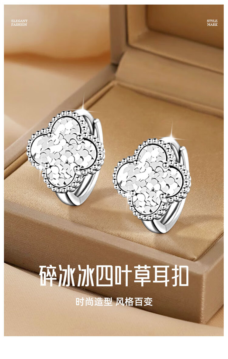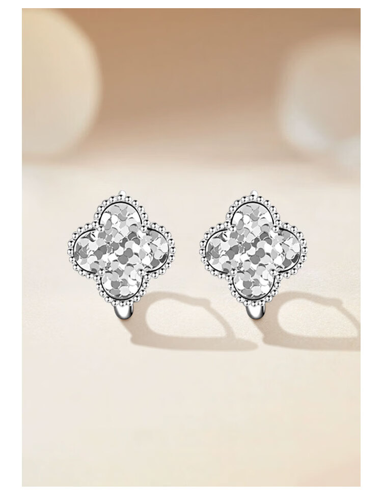 CHINA GOLD S925 Silver Earrings Women's Crushed Ice Four-leaf Clover Earrings Versatile Earrings Valentine's Day Birthday Gifts for Lovers Crushed Ice Four-leaf Clover Earrings