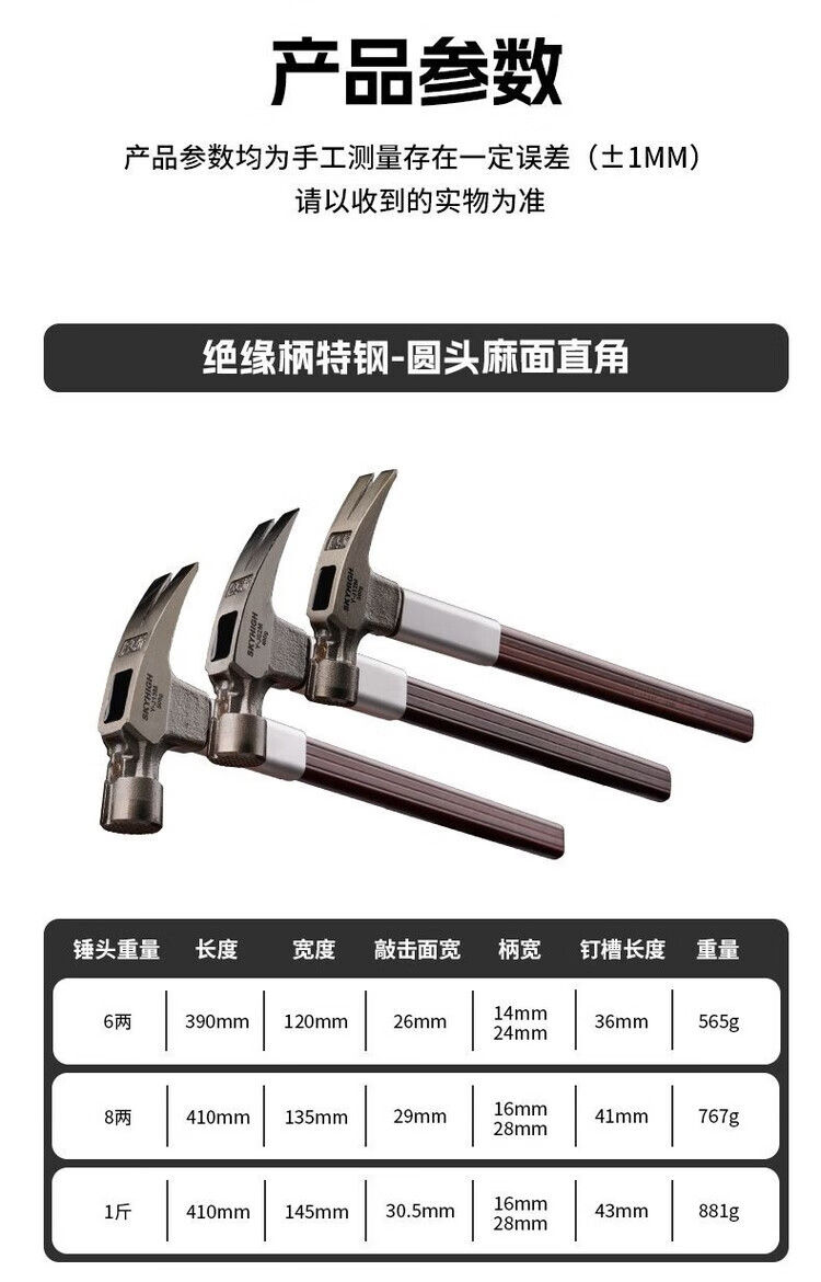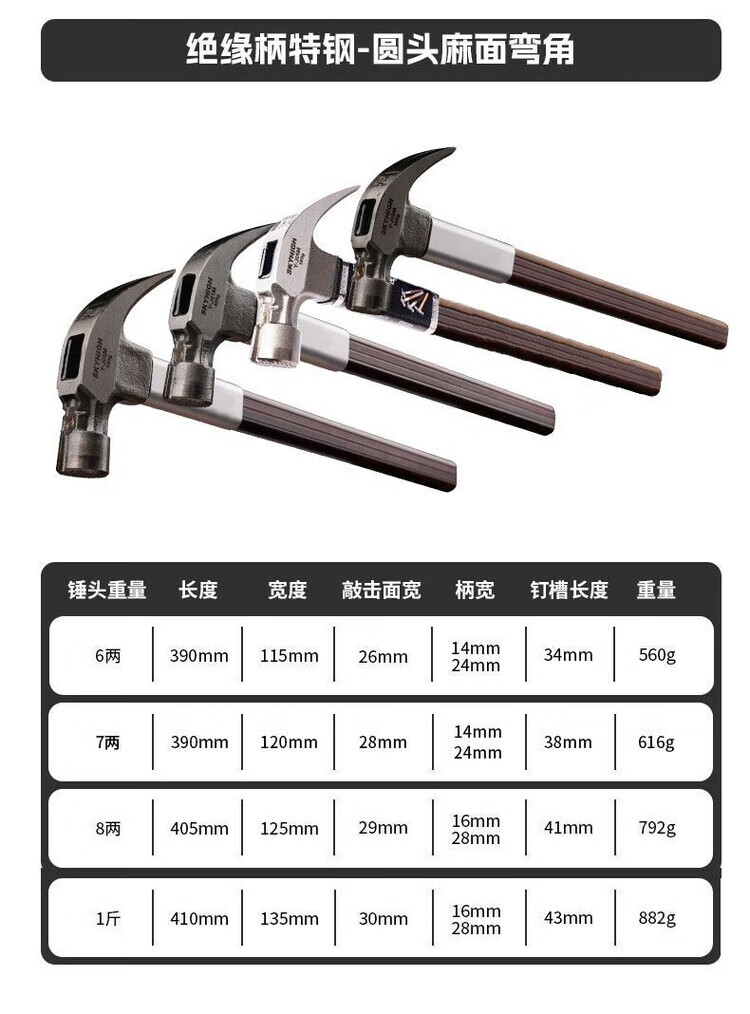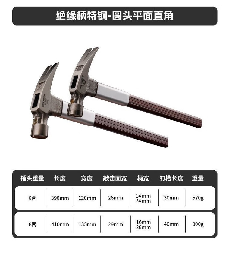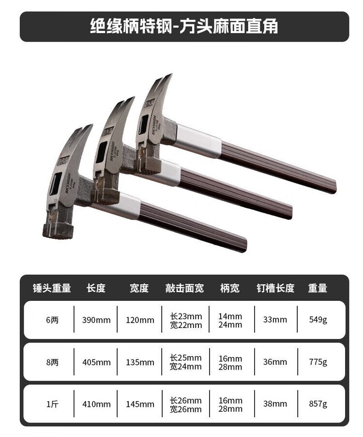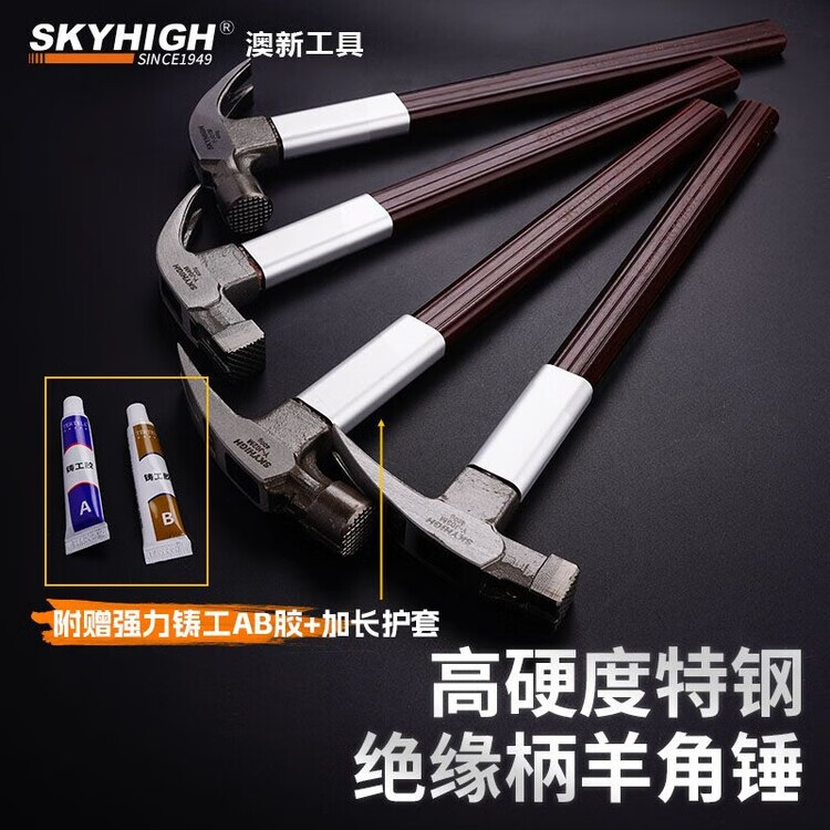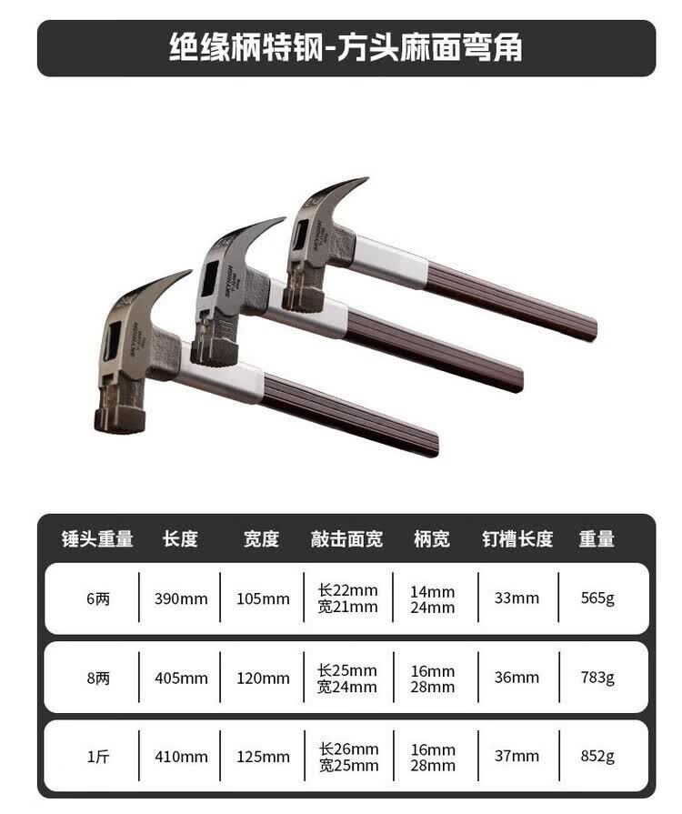Australian and New Zealand claw hammer, insulated handle claw hammer, high carbon steel nail pulling hammer, construction site hammer, woodworking hammer, strong magnetic nail suction, square head tooth surface, 8 taels, magnetic corner J04M, sheath + strong AB glue