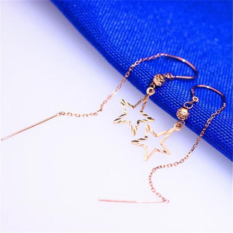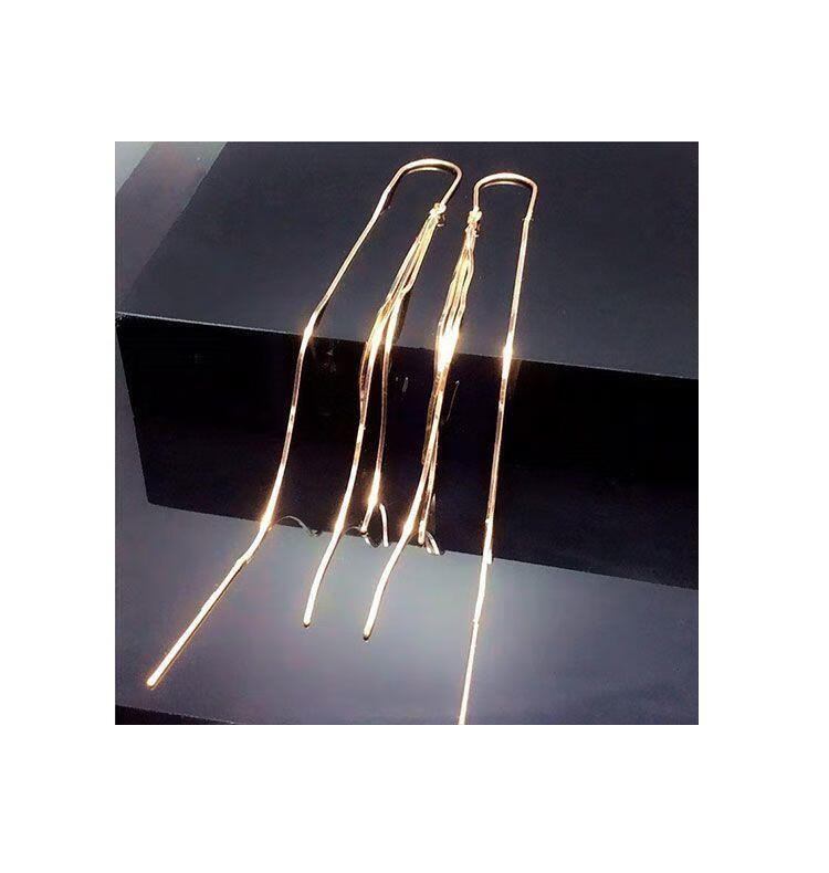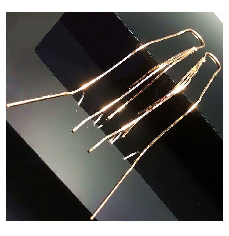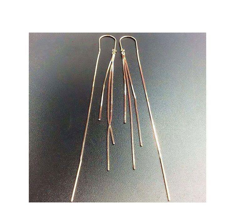 DL 1998 Fat Donglai same style colorful gold ear wire gold-covered silver simple long tassel ear wire female Korean internet celebrity temperament earrings rich rich gold wire allergy return guarantee