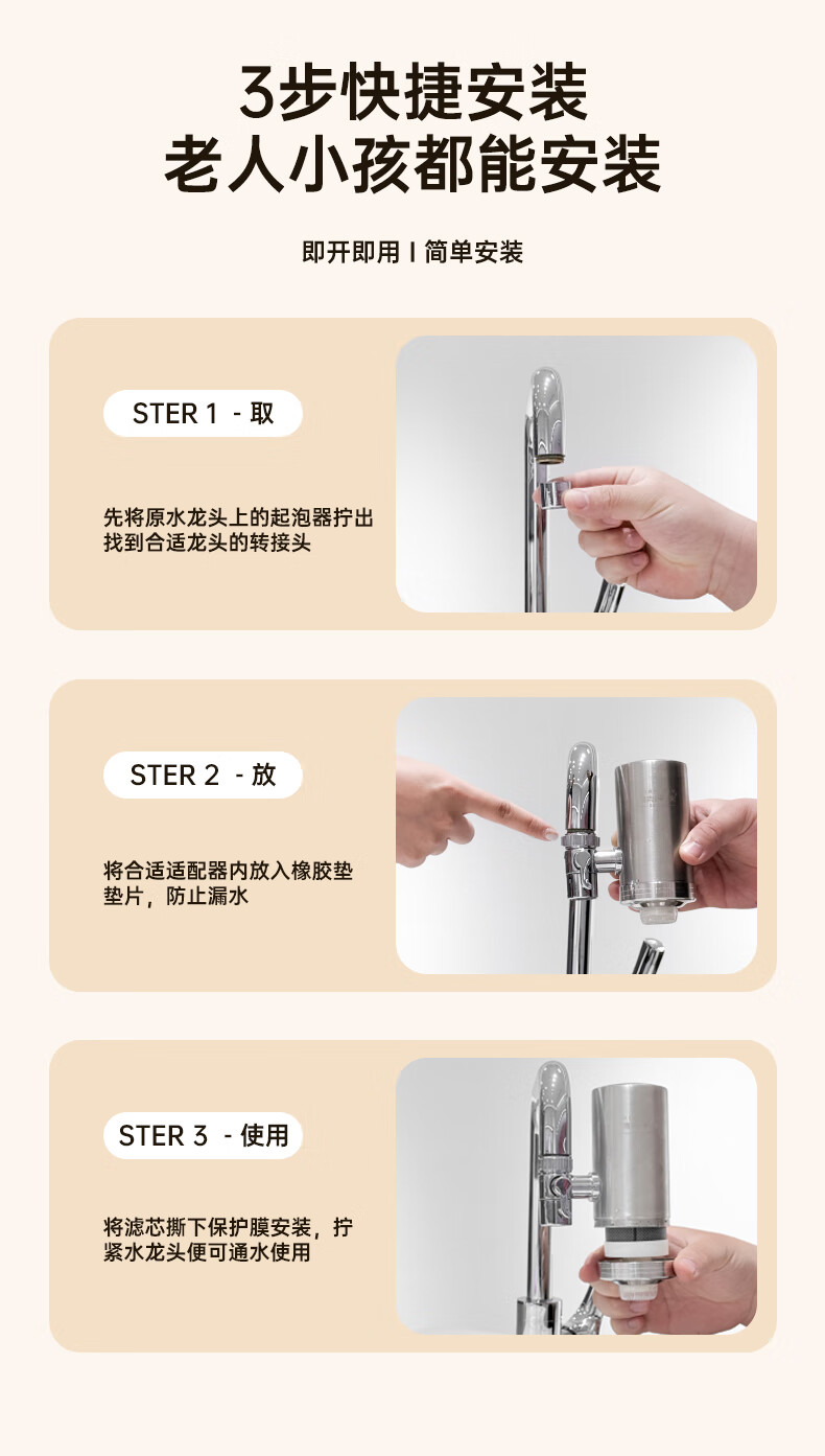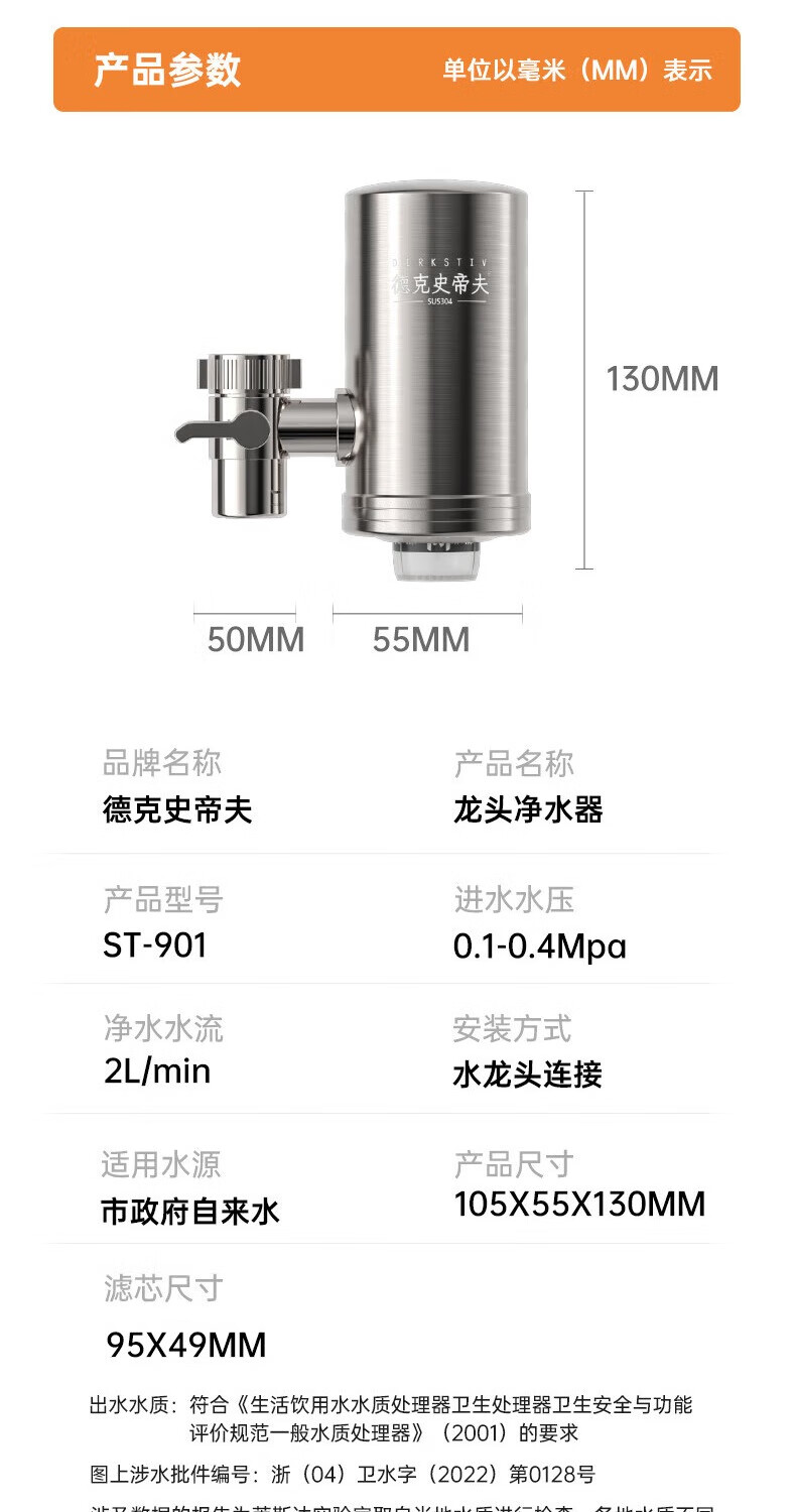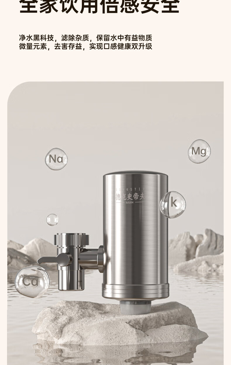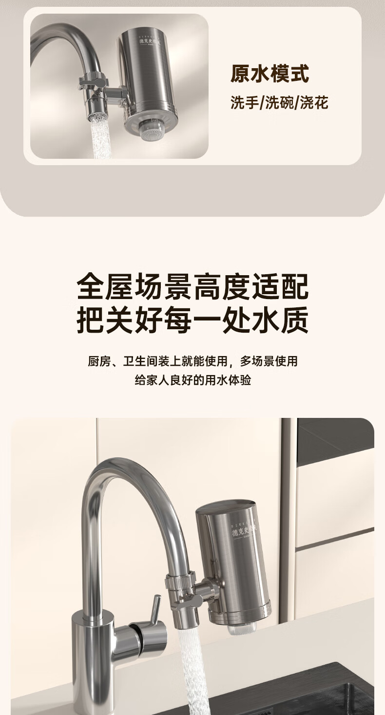 Dirk Steve faucet water purifier filter element household kitchen tap water filter element stainless steel Dirk Steve purifier faucet three cores in one machine activated carbon ultrafiltration element direct style