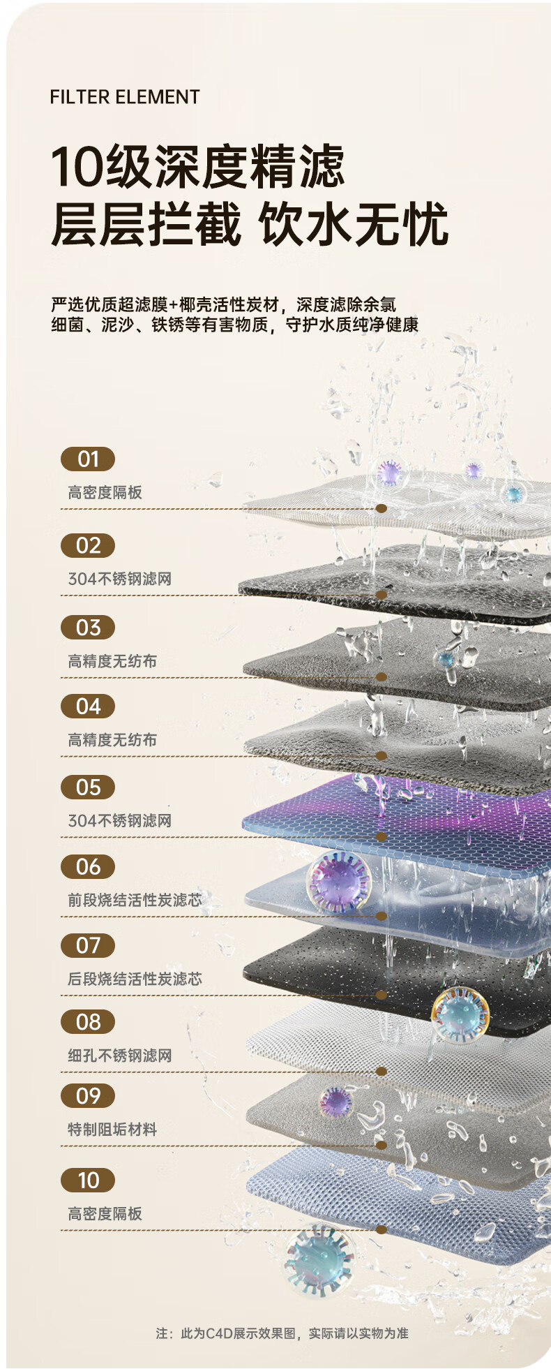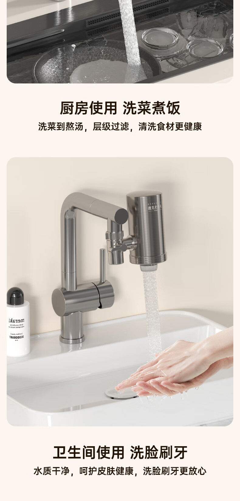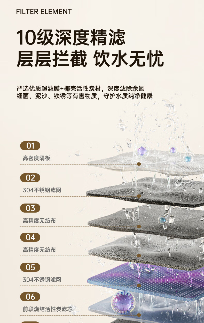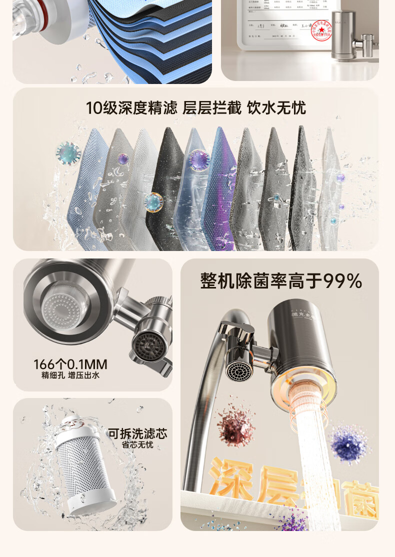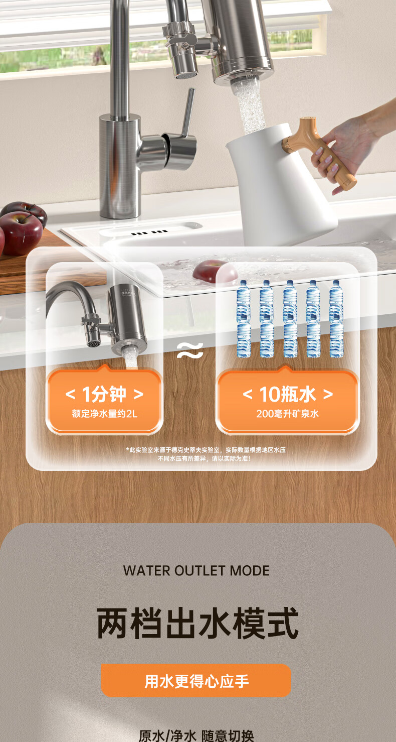 Dirk Steve faucet water purifier filter element household kitchen tap water filter element stainless steel Dirk Steve purifier faucet three cores in one machine activated carbon ultrafiltration element direct style